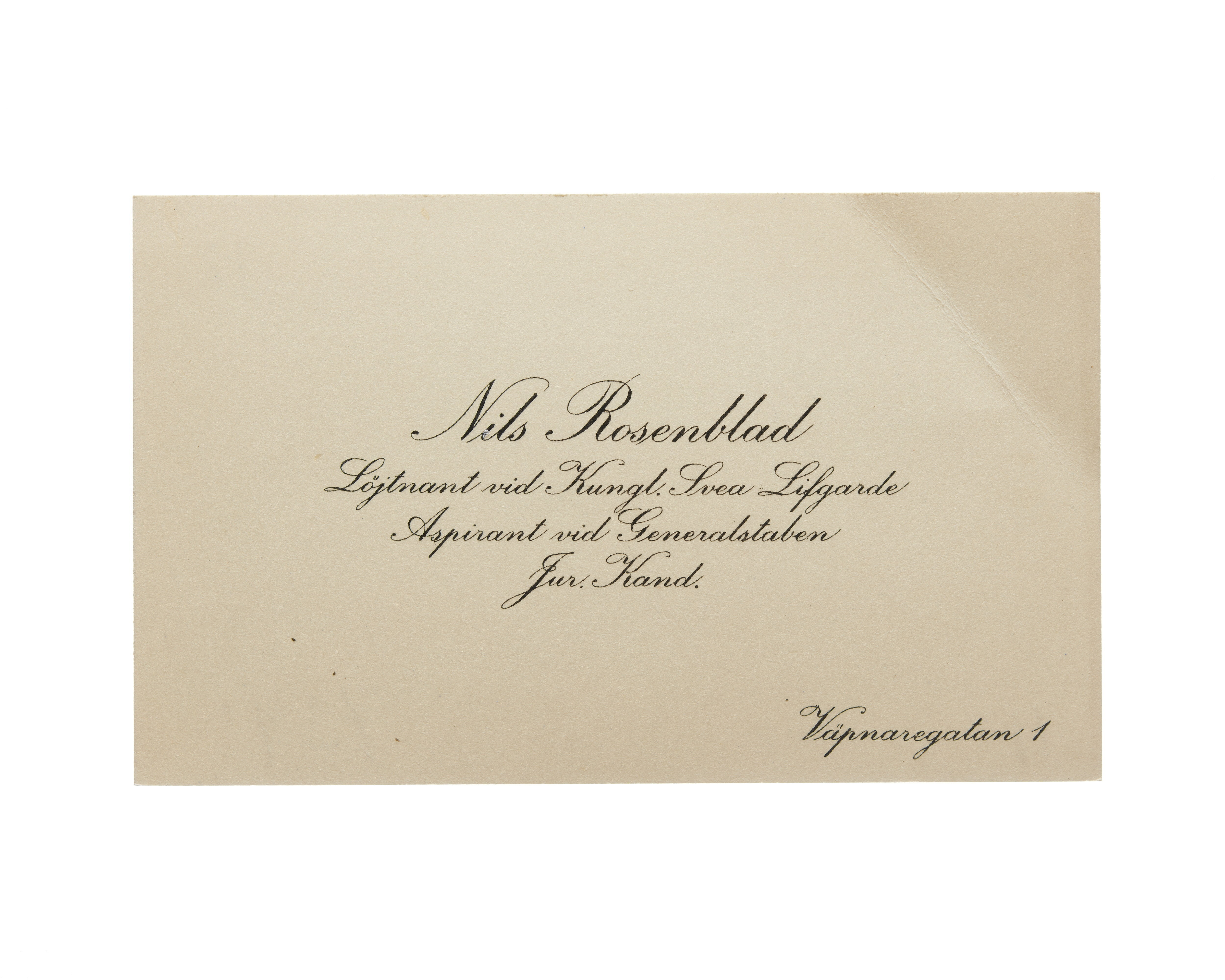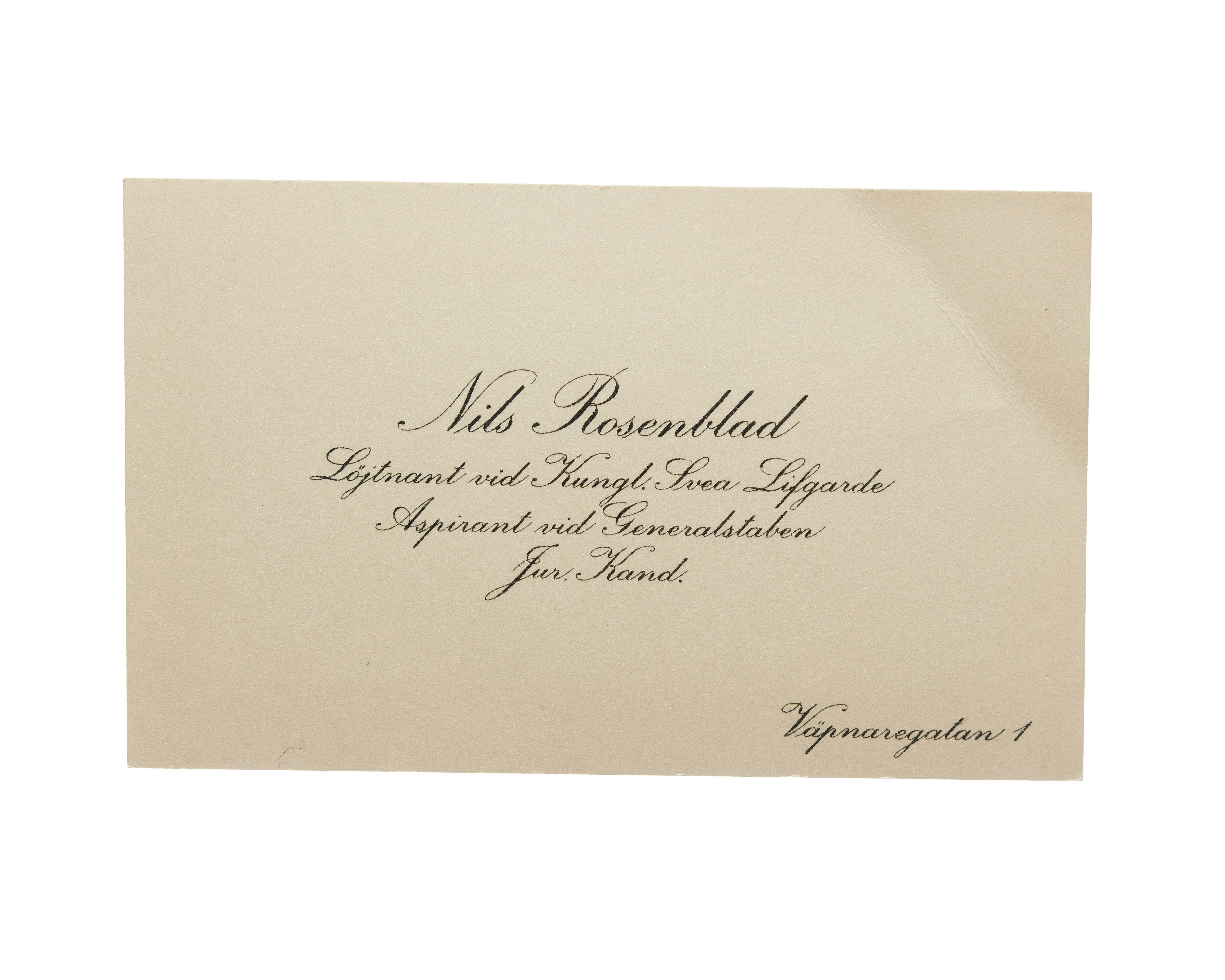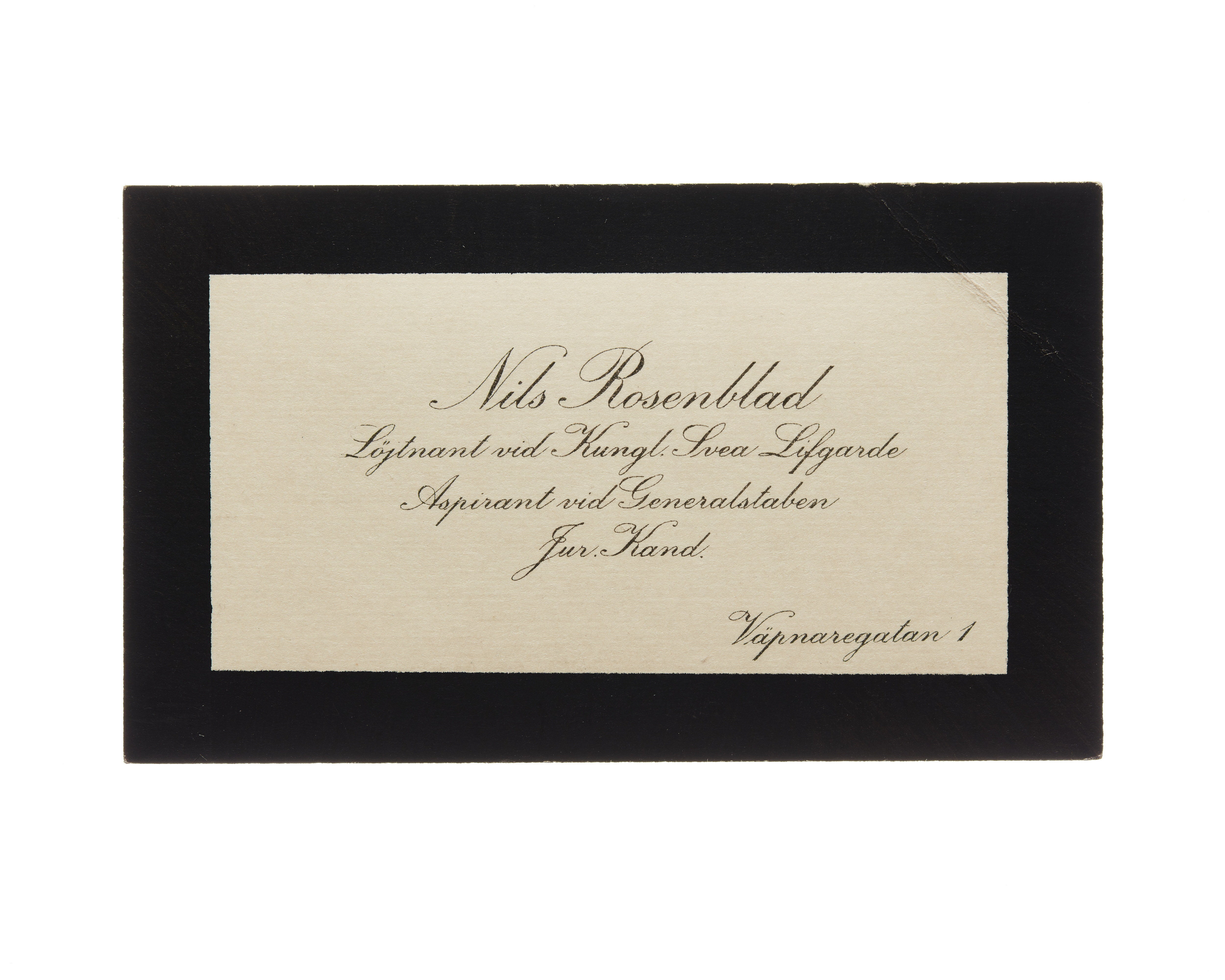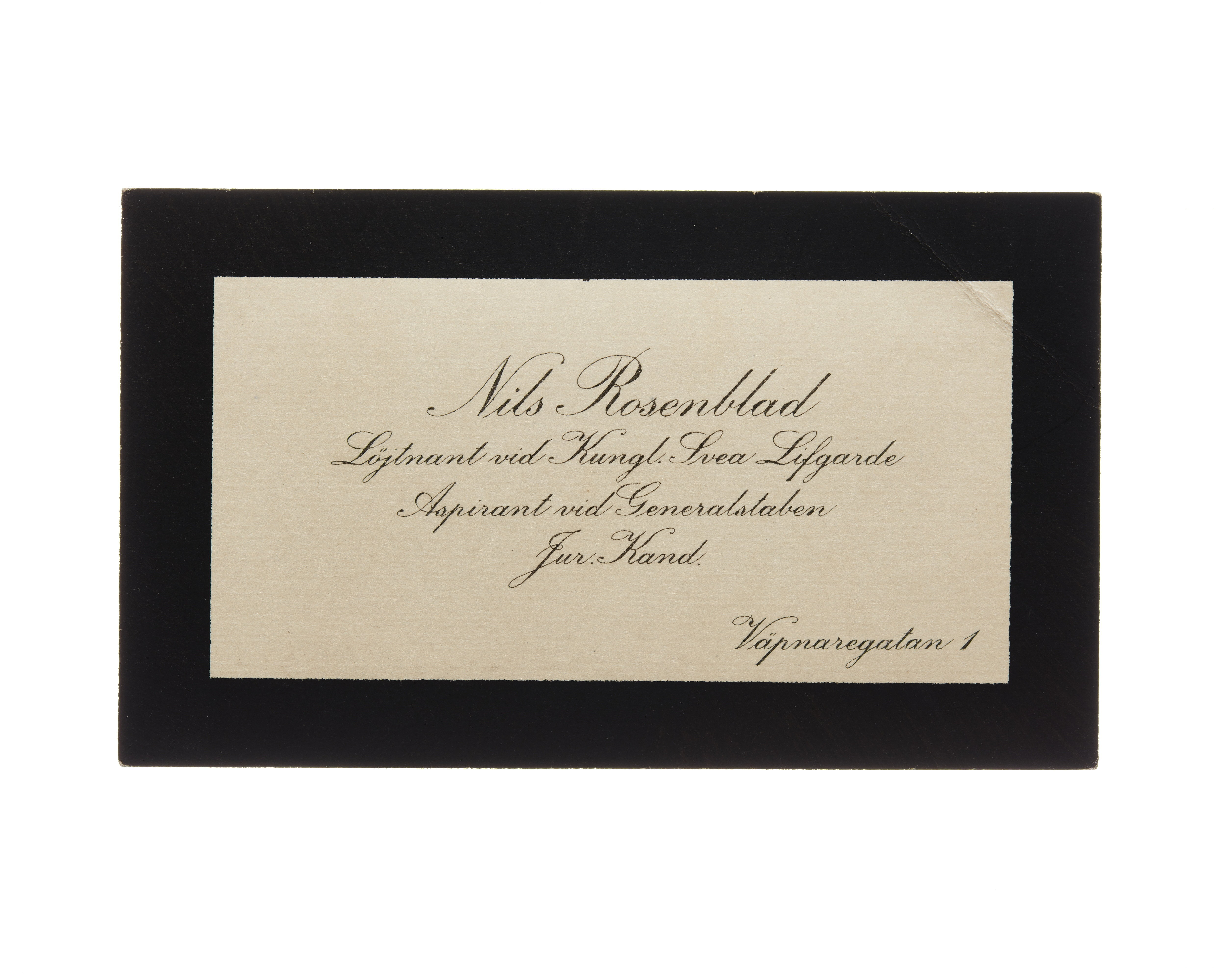 Visitkort från Nils Rosenblad, Löjtnant vid Kungl. Svea Livgarde.