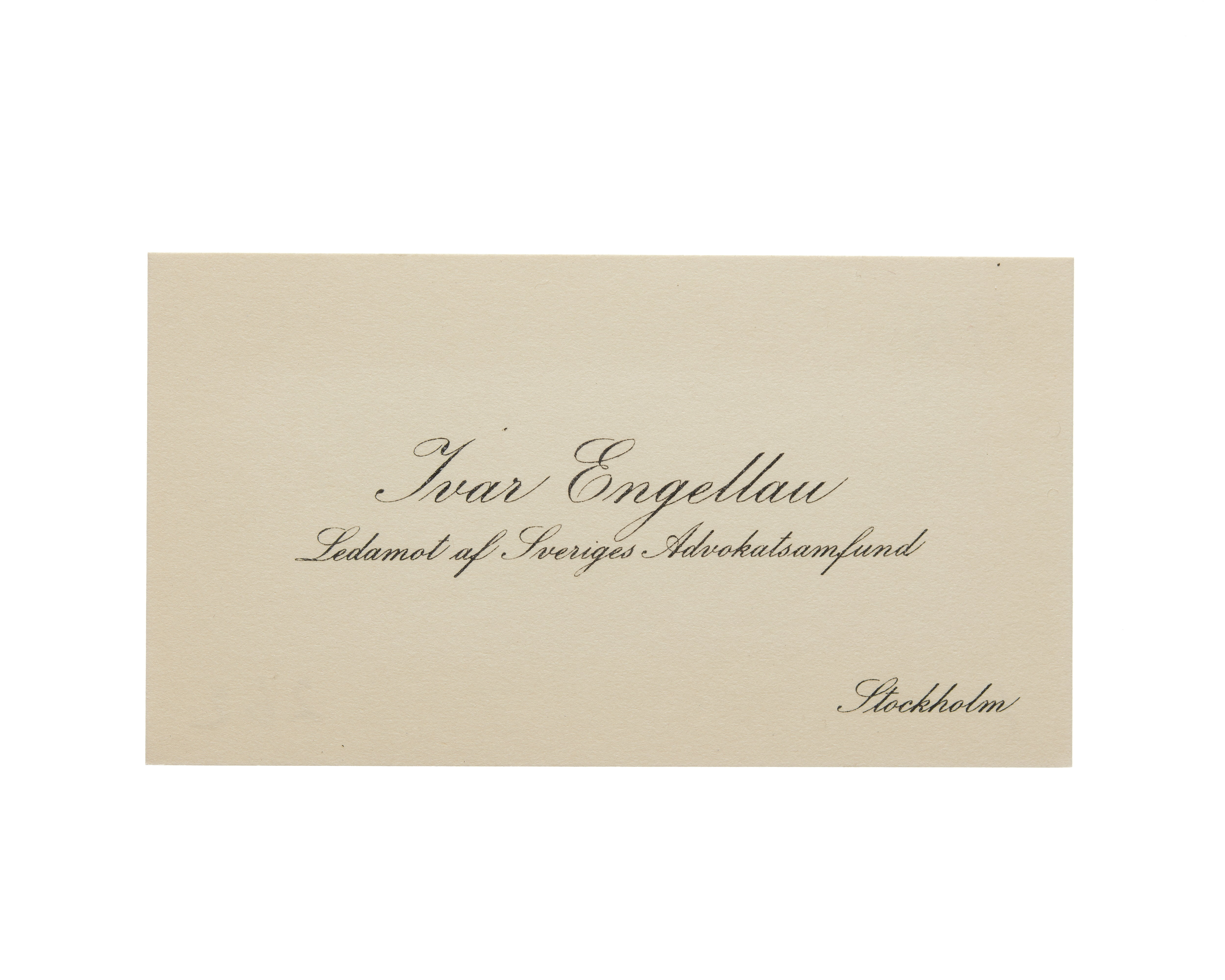 Visitkort från Ivar Engellau, Ledamot av Sveriges Advokatsamfund.