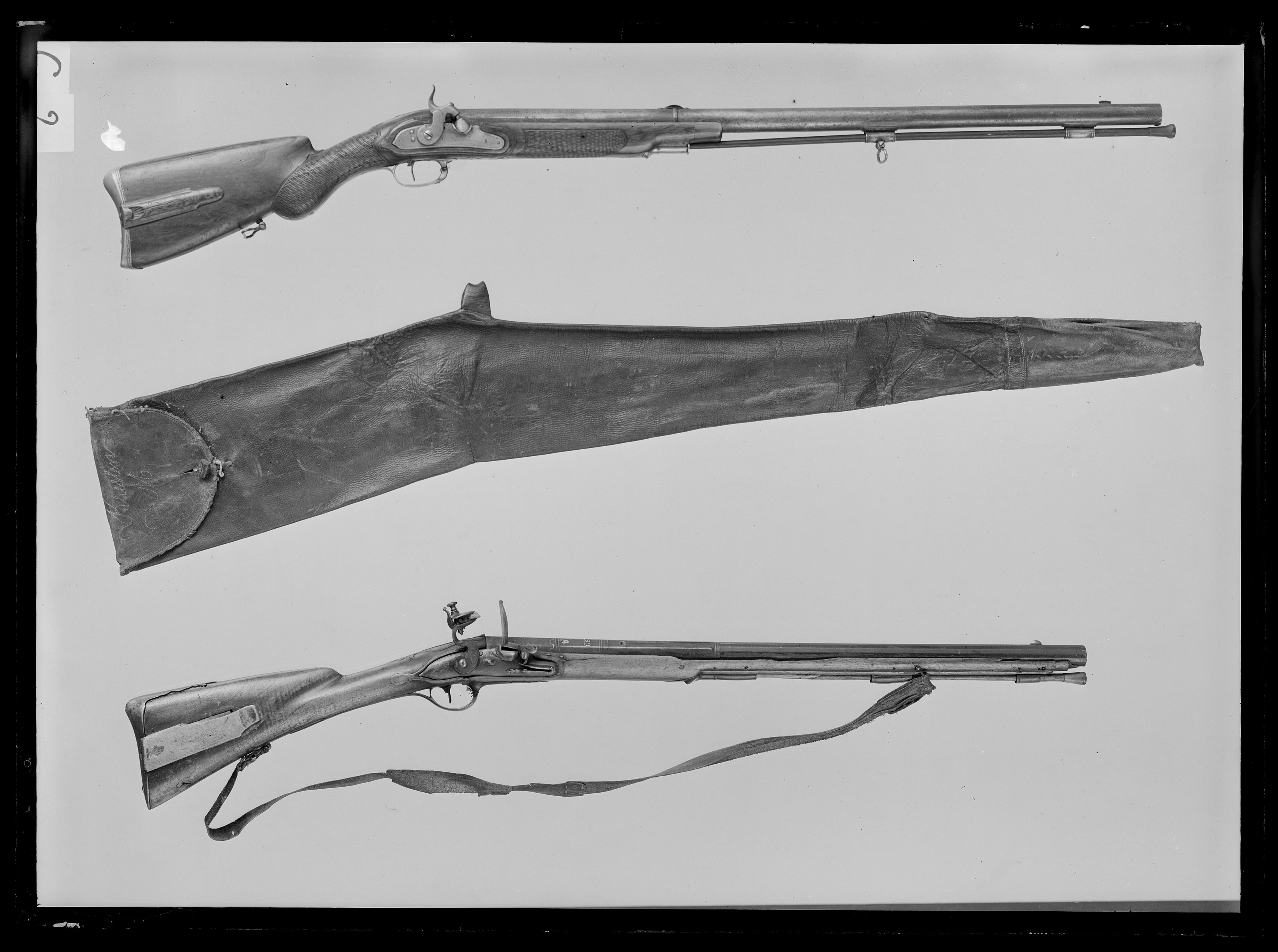 Flintlåsbössa med Georg Riddersporres stämpel på pipan, pipan dock äldre, daterad 1620. Lås och stock 1700-tal.