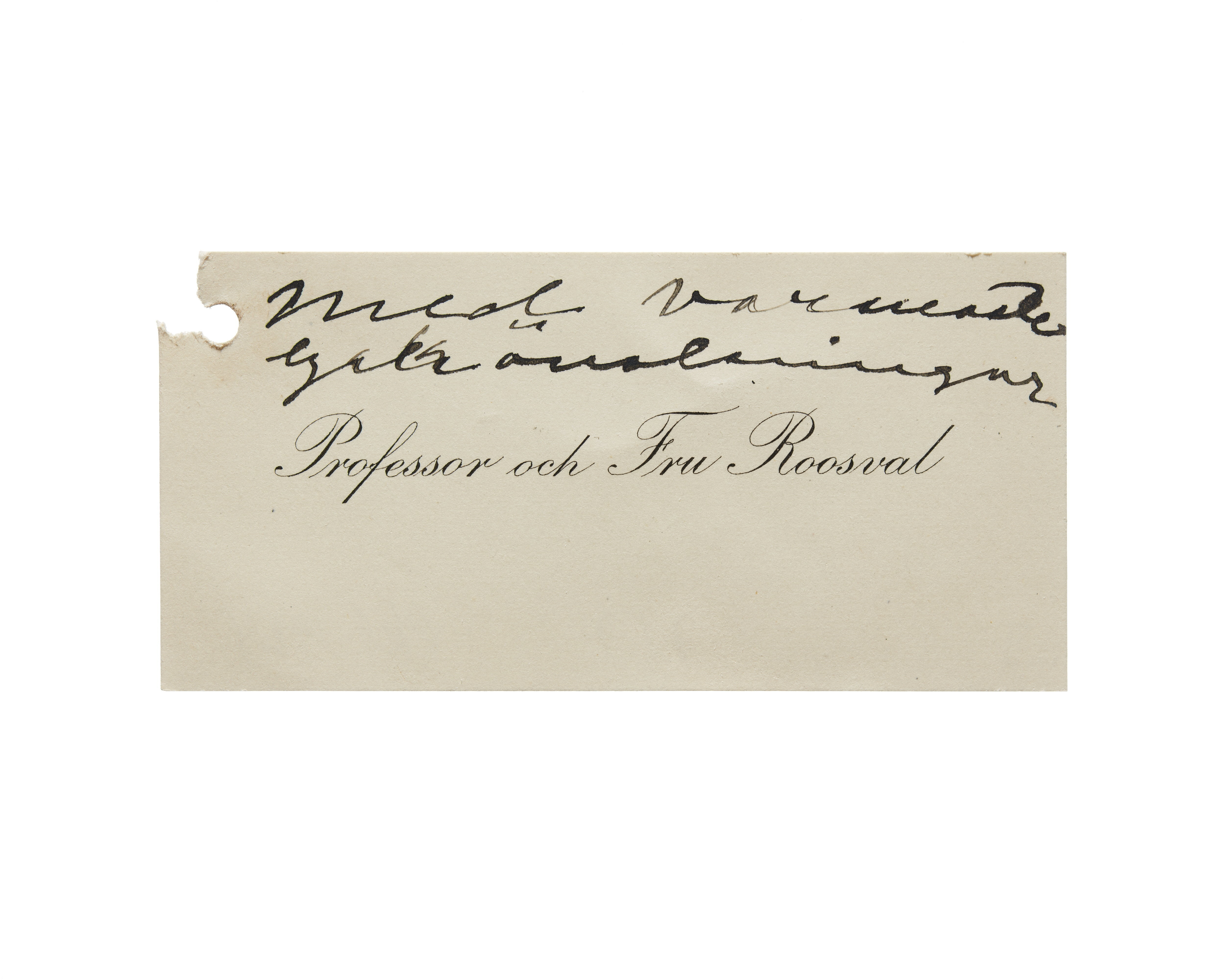 Visitkort från Professor Johnny Roosval och Fru Ellen Roosval, f. v. Hallwyl.