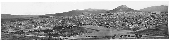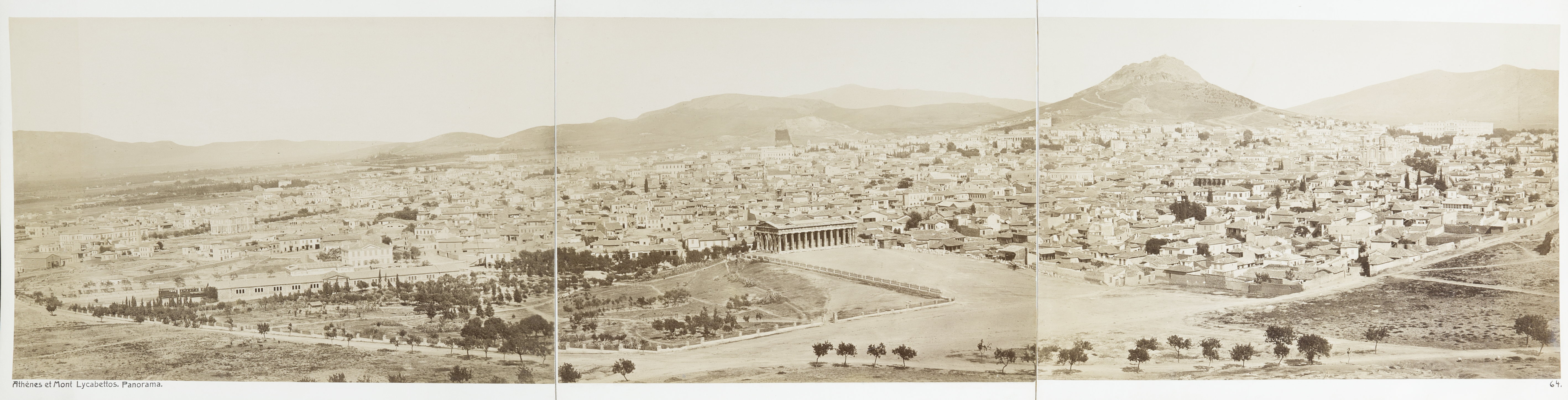 Panorama över Aten och berget Lykabettos. Text på originalet: "Athènes et Mont Lycabettos. Panorama." Foto från resa genom Grekland, Makedonien och Serbien, 15 mars-6 juni 1896. Fotografierna LXVI:K.18.-147. är köpta av Wilhelmina von Hallwyl, f. Kempe på Korfu samt i Patras, Nafplion, Aten, Thessaloniki och Belgrad. Med på resan var maken Walther von Hallwyl och fröken Ida Uhse. Uppgifterna kommer från Ida Uhses reseanteckningar.
