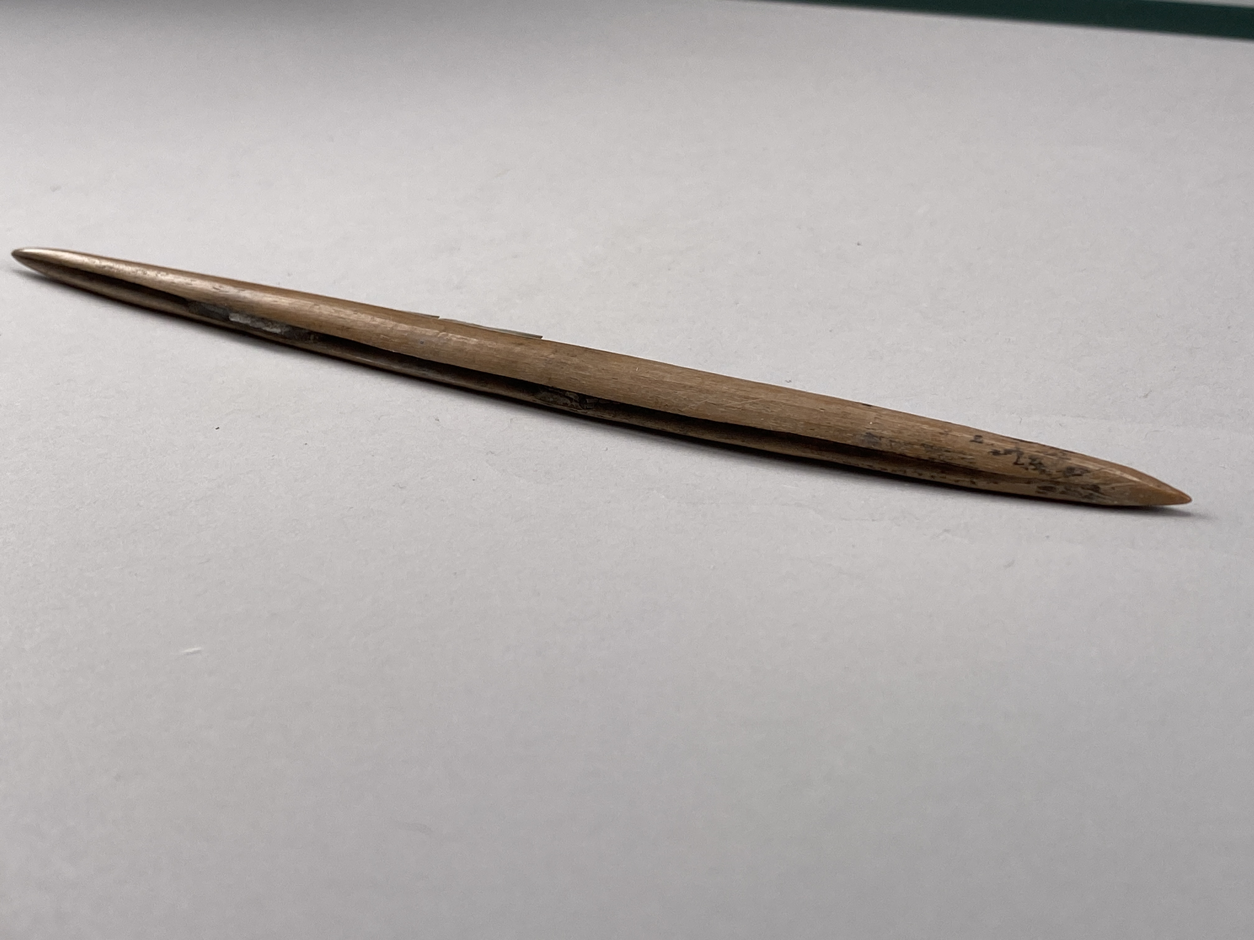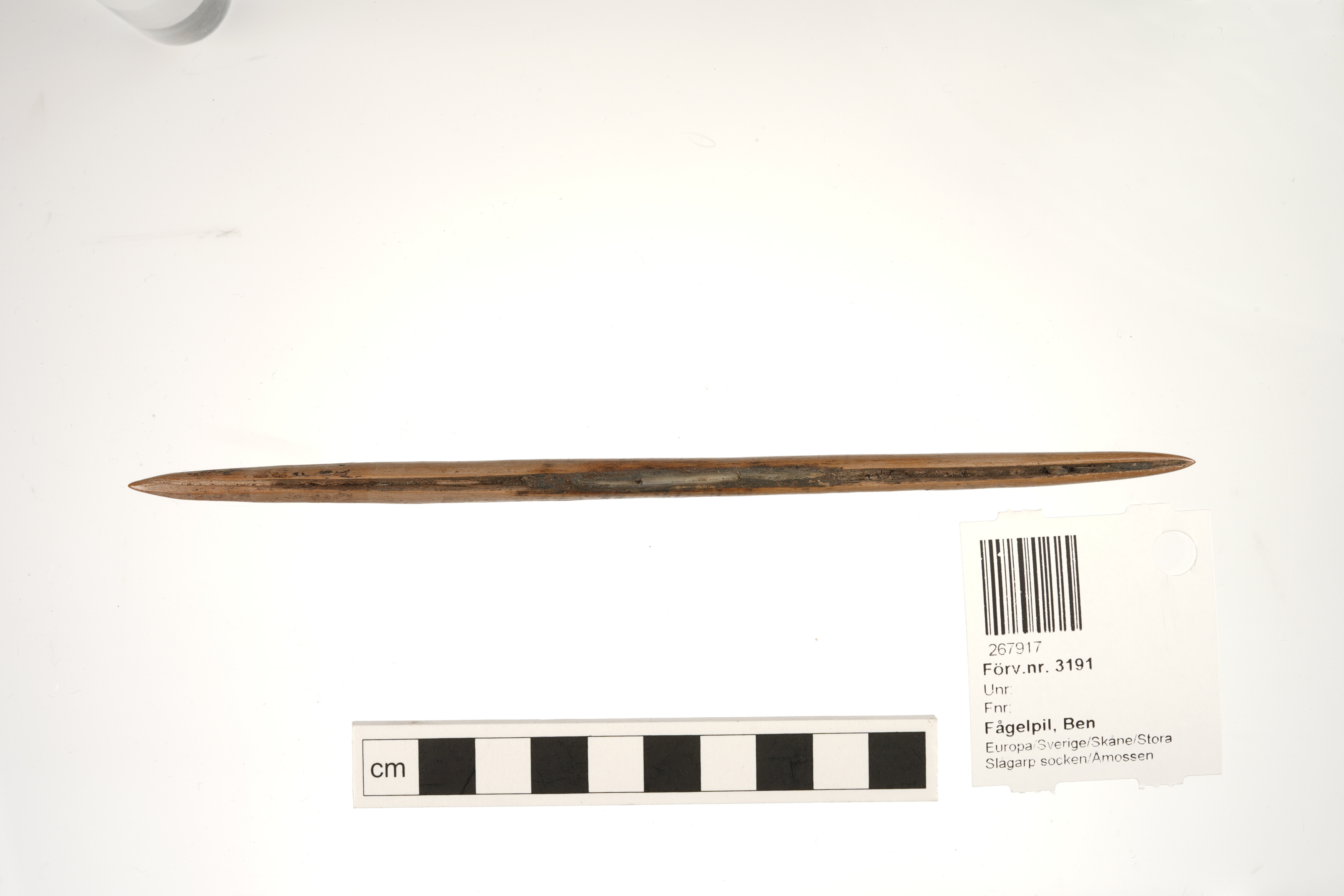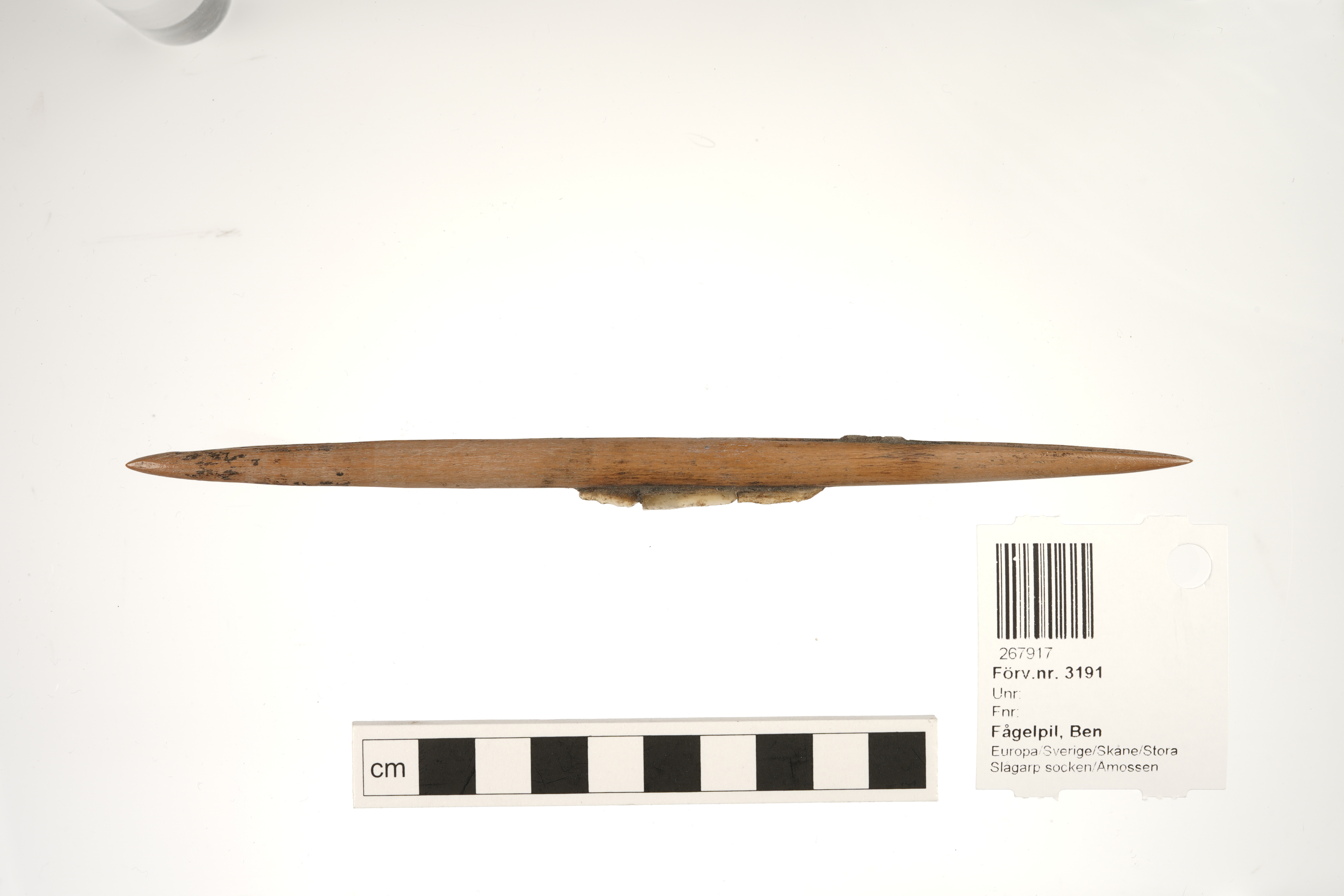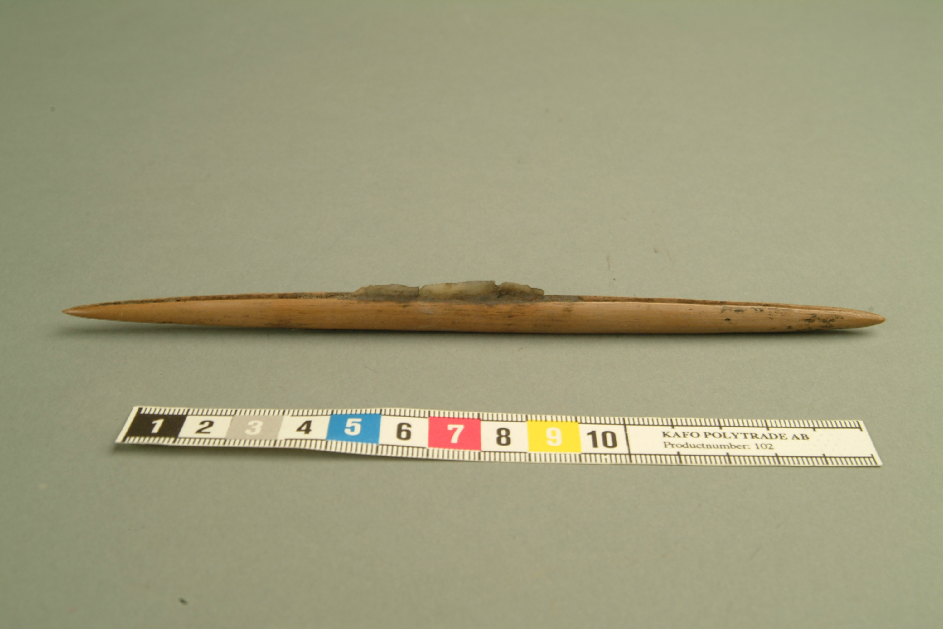 Fågelpil av ben med flintskärvor.
