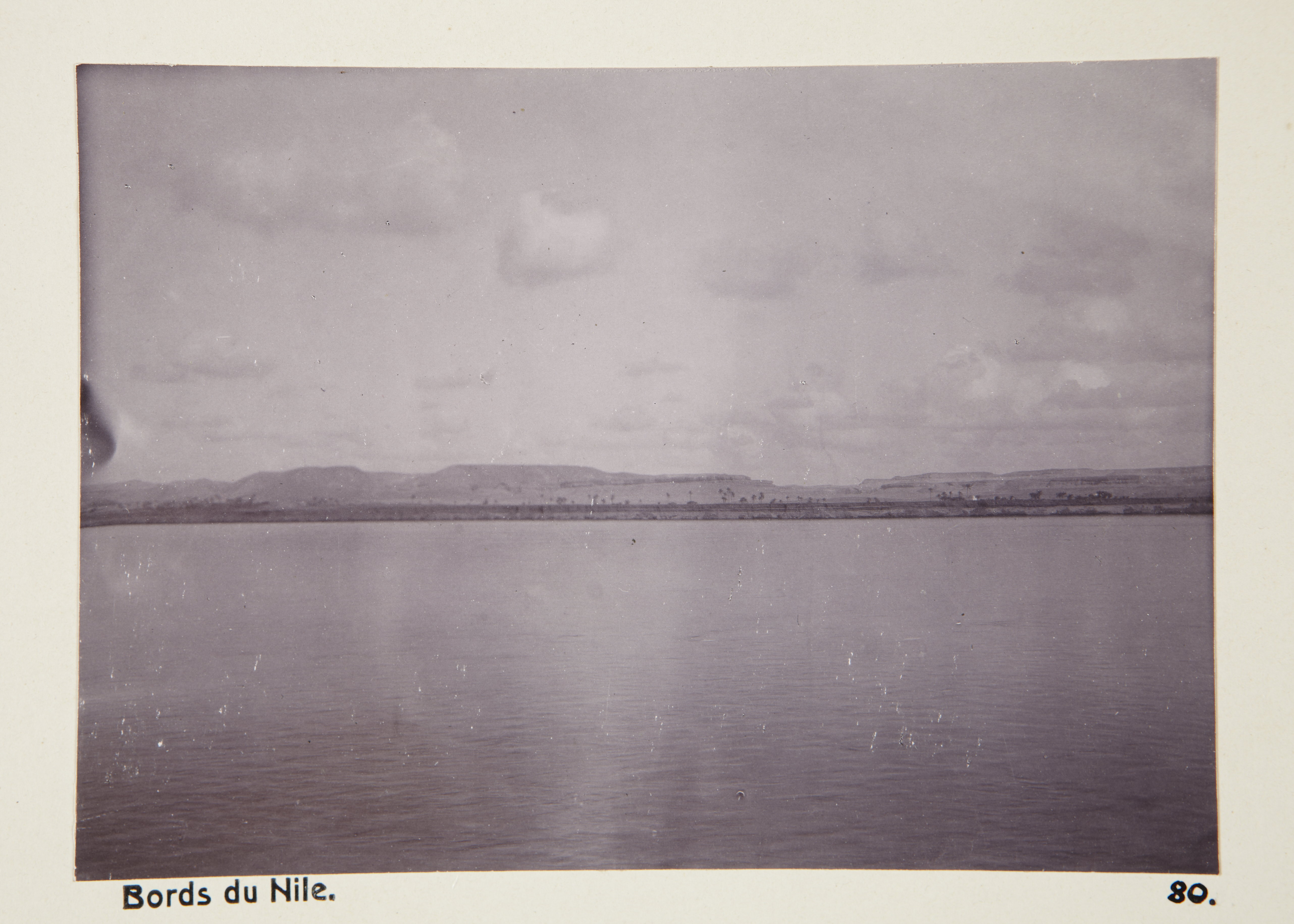 Nilens strand, Egypten. Text på fotografiet: Bords du Nil. Fotografierna LXVI:M.01.- 201. kommer från resan till Egypten och Sudan som Wilhelmina och Walther von Hallwyl gjorde vintern 1900-1901. De lämnade Sverige den 5 november 1900 och fortsatte från Egypten till Palestina den 28 mars 1901. Med på resan var döttrarna Ellen med maken Henric de Maré och Irma med maken Wilhelm von Geijer. Wilhelminas sällskapsdam, fröken Ida Uhse reste också med. Under en del av resan anslöt sig ledamoten av Internationella domstolen i Kairo, assessorn Otto Conrad Waldemar Cedercrantz med makan Anna Elisabeth. Vid resan uppför Nilen hade Walther von Hallwyl hyrt ångfartyget Columbia med besättning. Båtresan startade i Kairo 27 december 1900, gick ända till Wadi Halfa varifrån man reste vidare med tåg till Khartum och tillbaka till Wadi Halfa. Båten vände åter i riktning mot Kairo, men det verkar som att sällskapet tog tåg sista biten, från Luxor. Henric och Ellen de Maré samt fru Cedercrantz lämnade båten redan då de passerade Luxor första gången. Resten av sällskapet återvände till Kairo den 1 mars. Fotografierna LXVI:M.01.-120. togs av resenärerna själva, de största av Ellen de Maré, de mellersta av Wilhelmina von Hallwyl och de minsta av Wilhelm von Geijer. Resten köptes av professionella fotografer i Kairo, de flesta från Studio Photogr. Artistique G. Lekegian & Cie. Alla uppgifter kommer från Ida Uhses reseanteckningar.