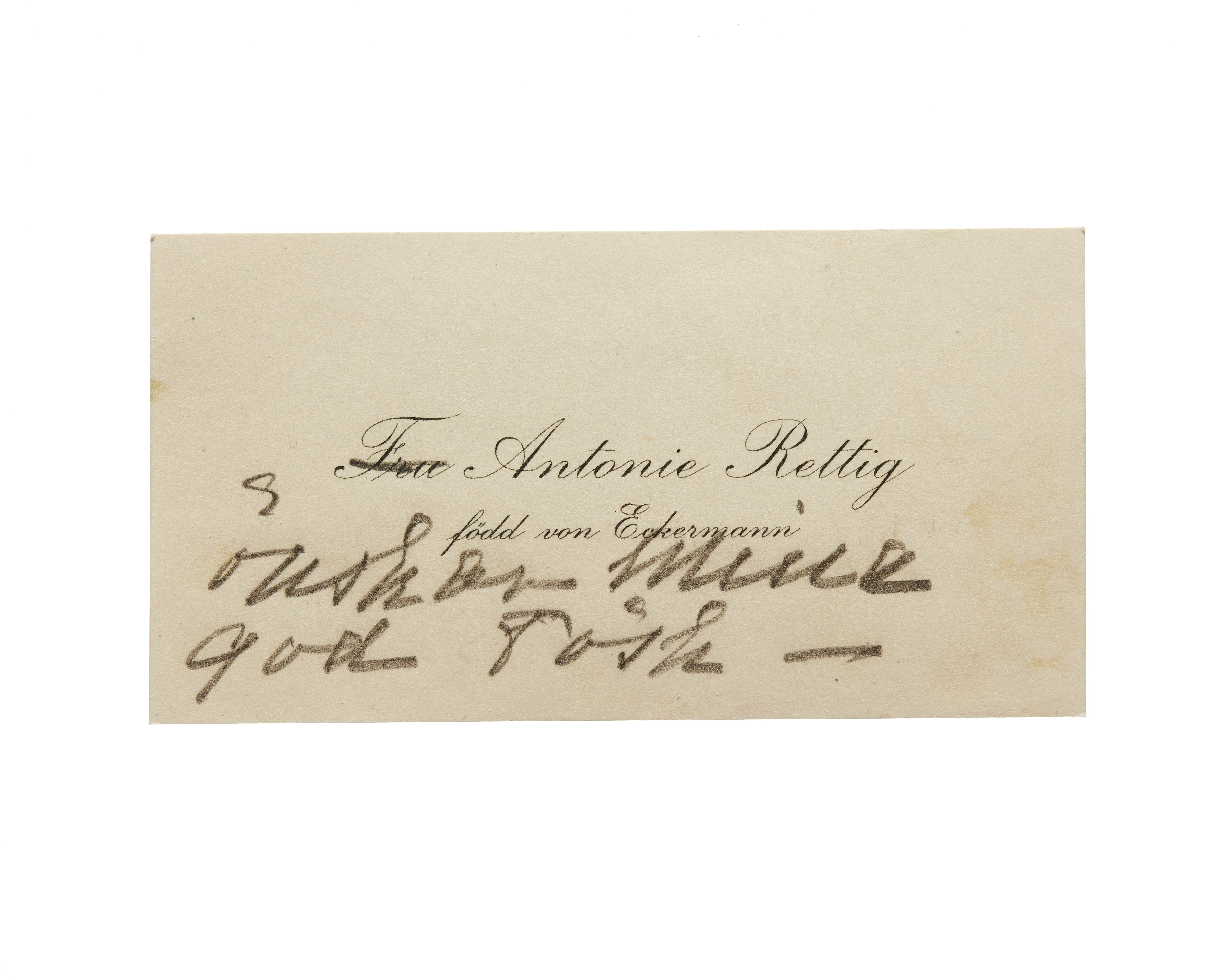 Visitkort från Fru Antonie Rettig, f. von Eckermann.