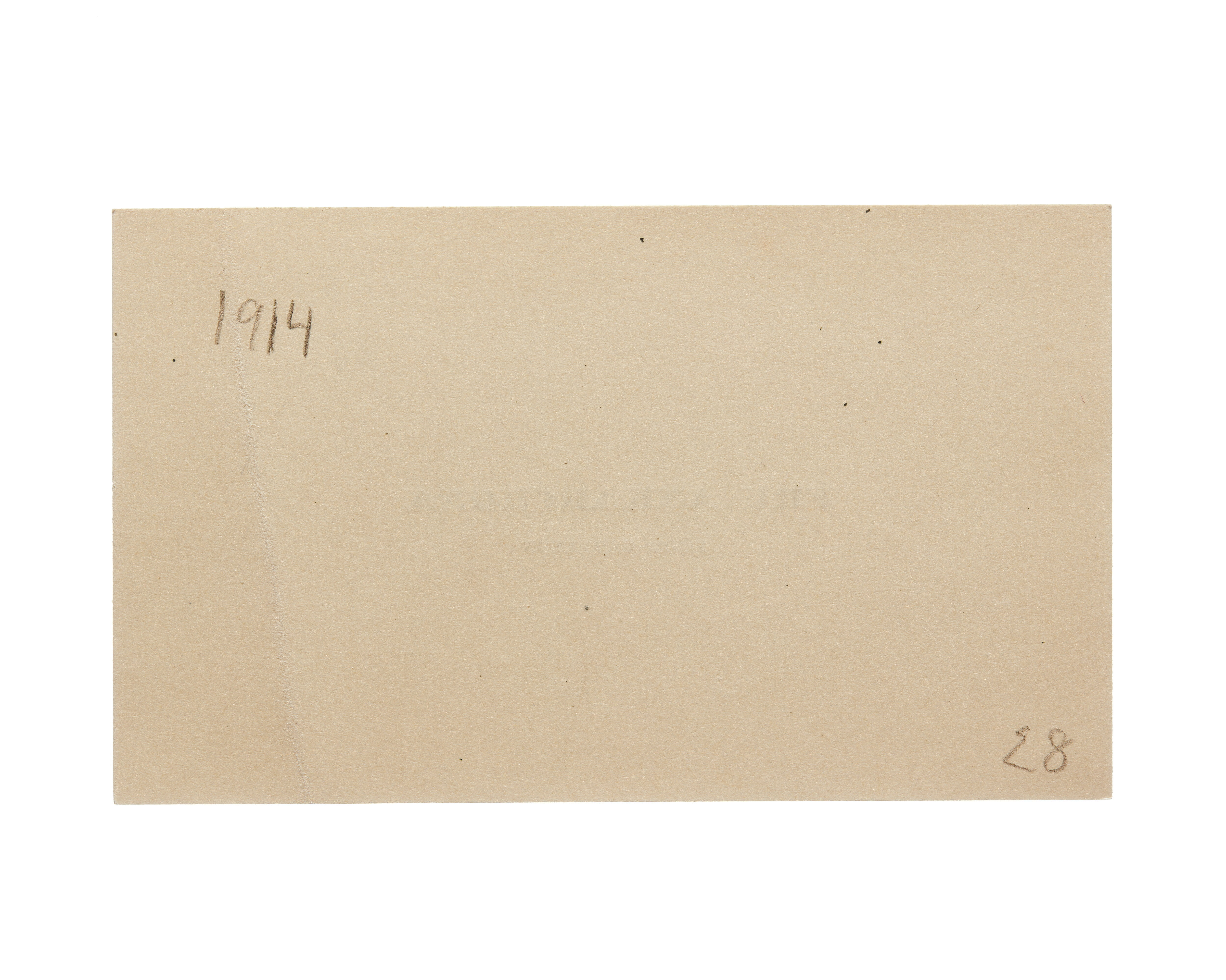 Ett visitkort från fru Beth Ankarcrona född Carleson, daterat 1914, vikt i högra sidan. Överlämnat i samband med W. v. H 75-årsdag 26 januari 1914.