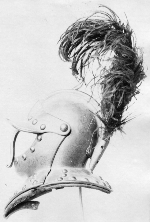 Plym av två svarta fjädrar, nertill sammanbundna med lindad ståltråd. Urprungligen bestod plymen av fyra fjädrar men två är nu avbrutna, nedre delarna återstår. Skall sitta i plymhållaren till hjälm nnr 24648.