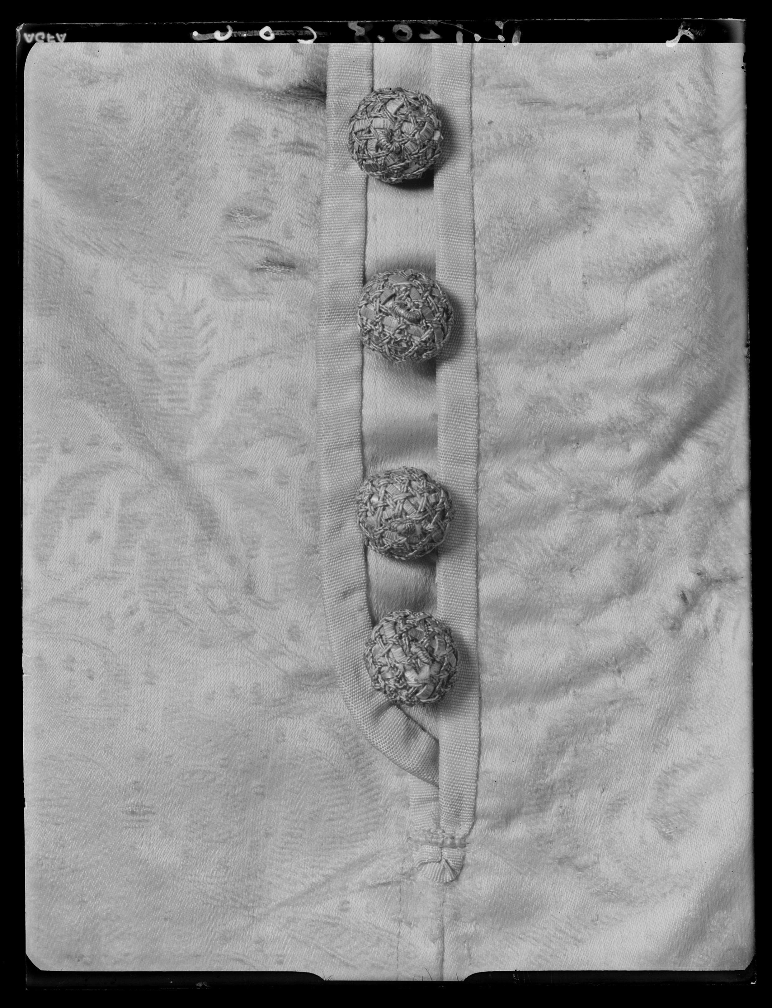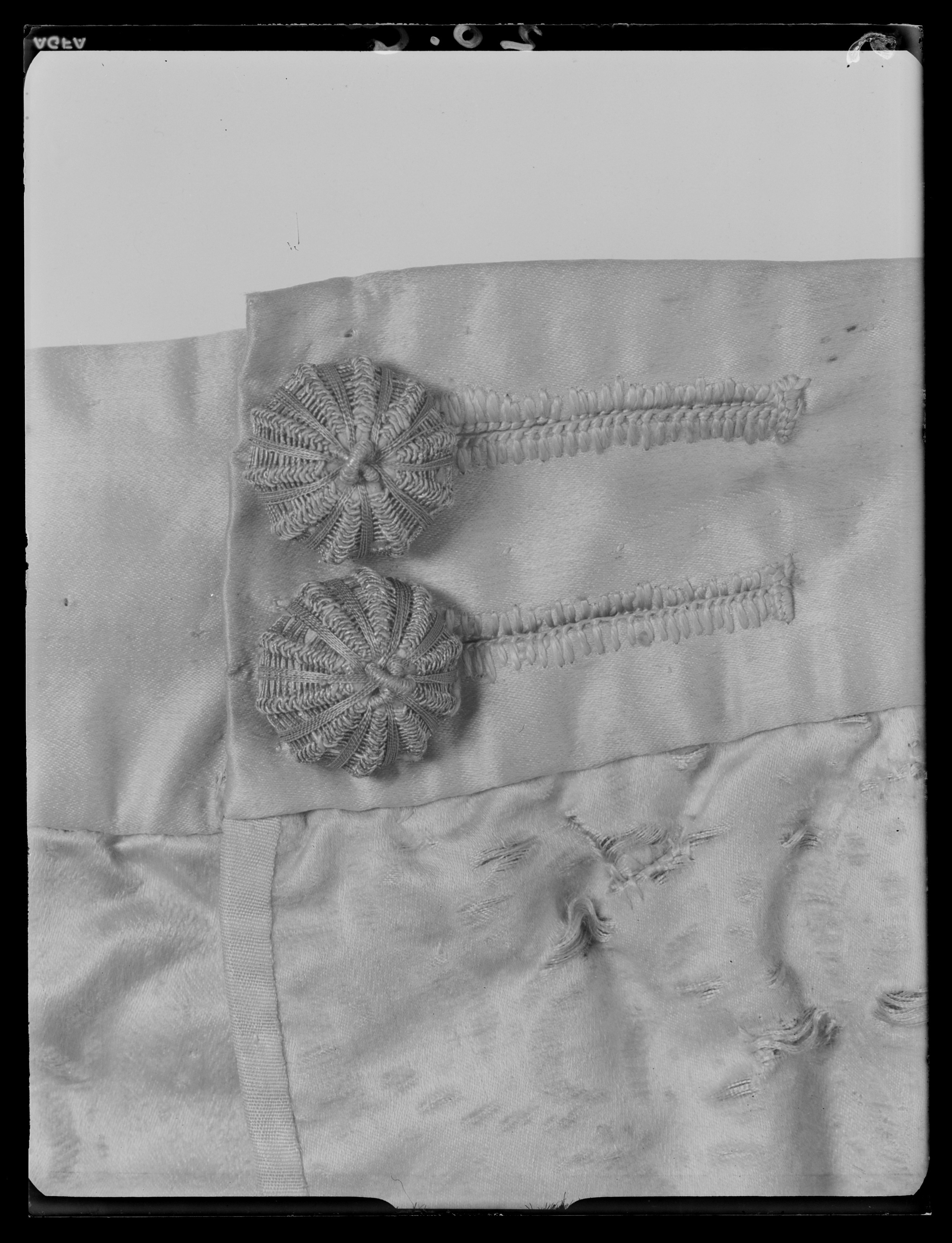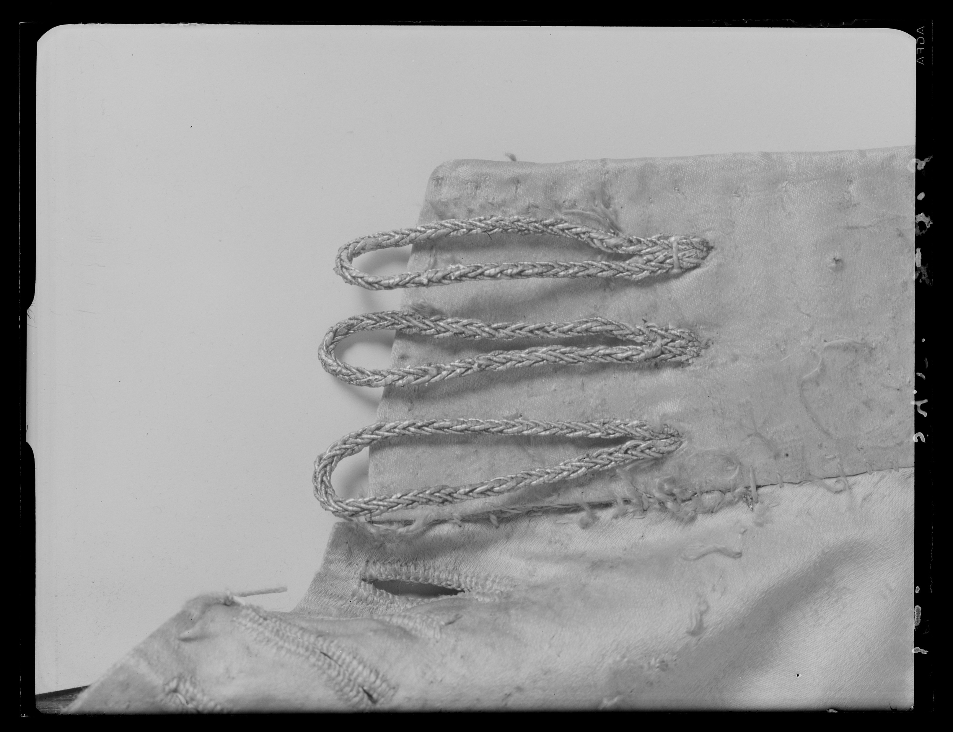 Byxor av vit sidenatlas. Buren av Karl X Gustav (1622-1660) vid kröningen 1654-06-06.