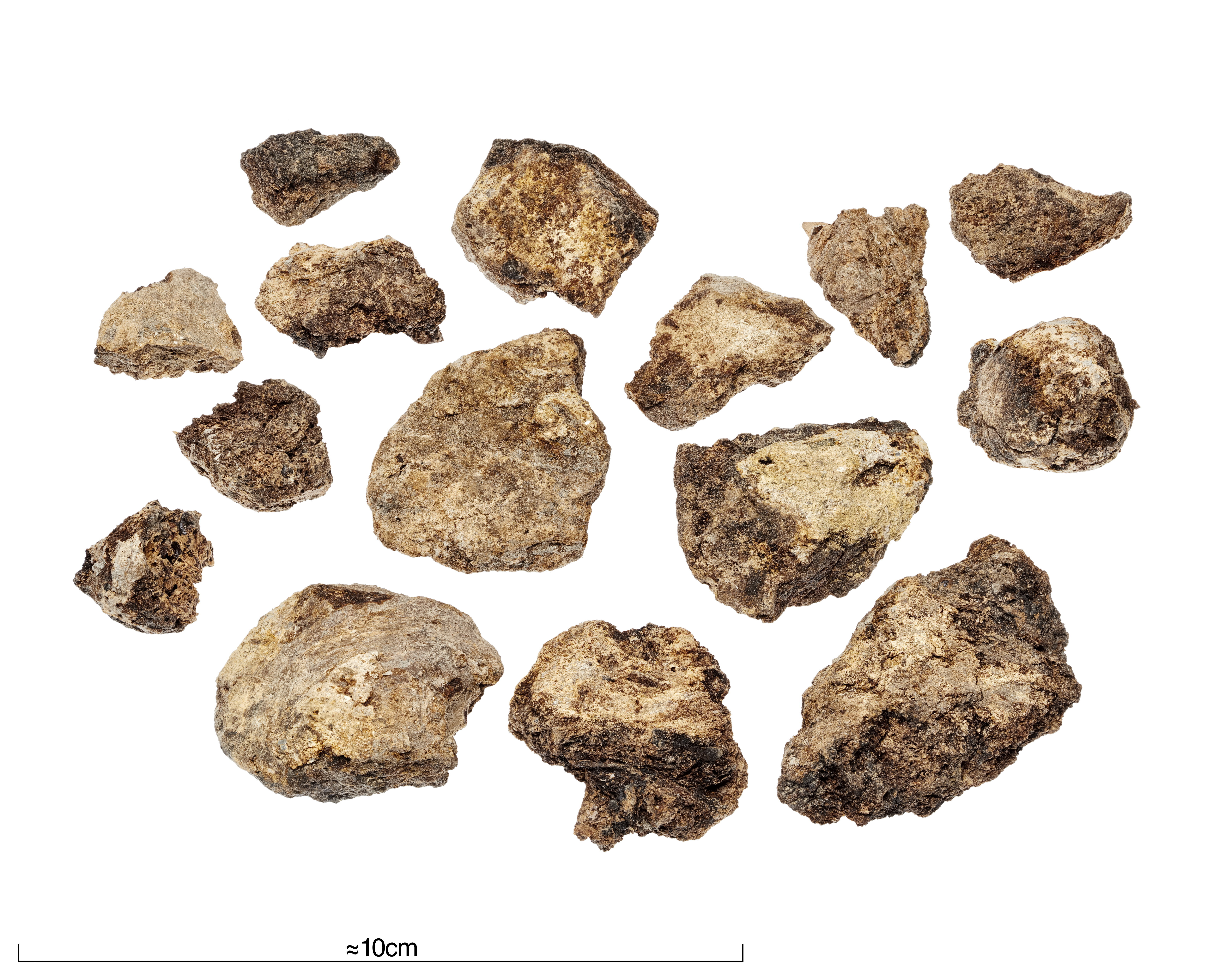 Koprolit 7 platt, 6 obest, 1 rund, 4 cylindrisk. Diameter 25/24/23/20/19 mm.