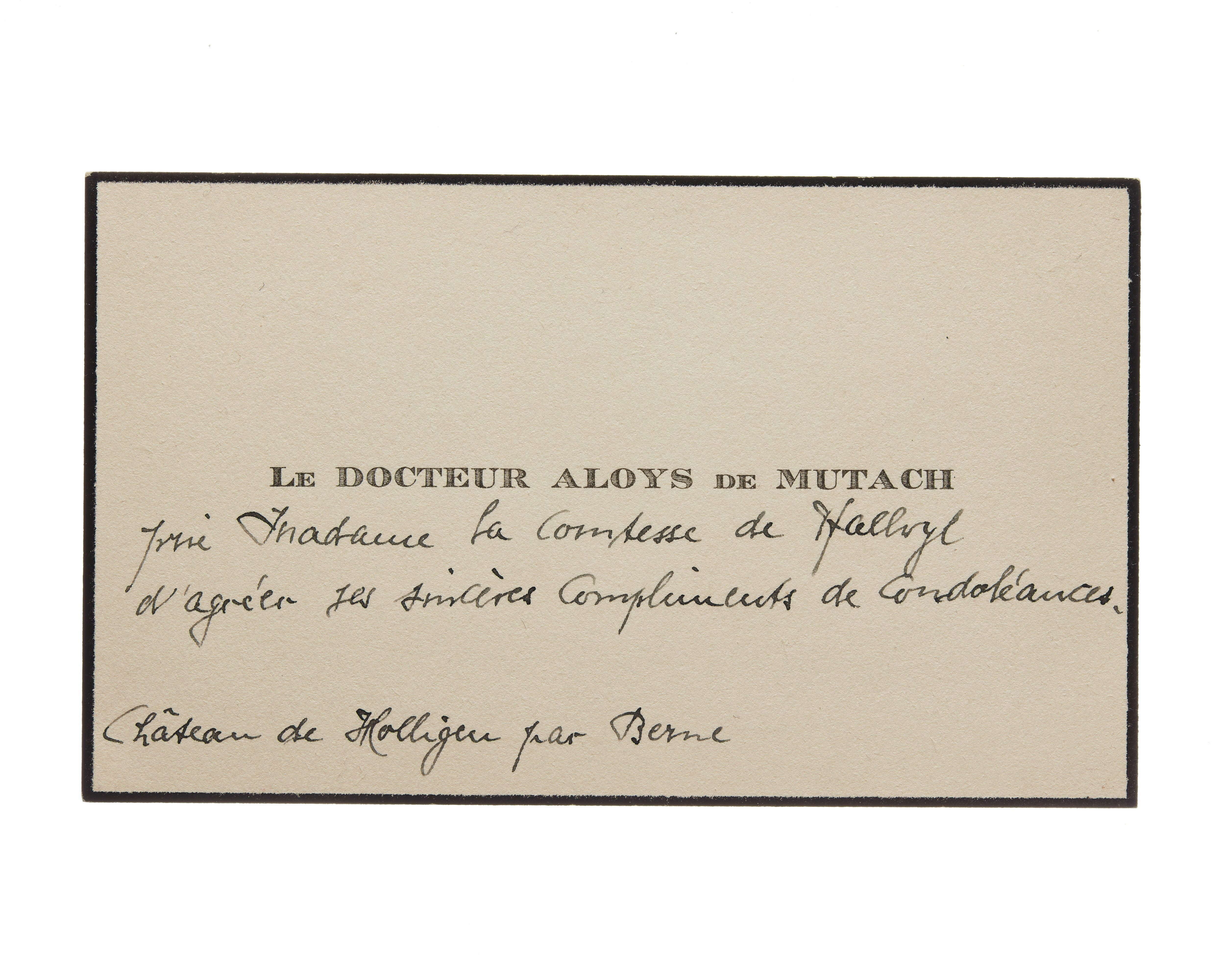 Visitkort från Le Docteur Aloys de Mutach.