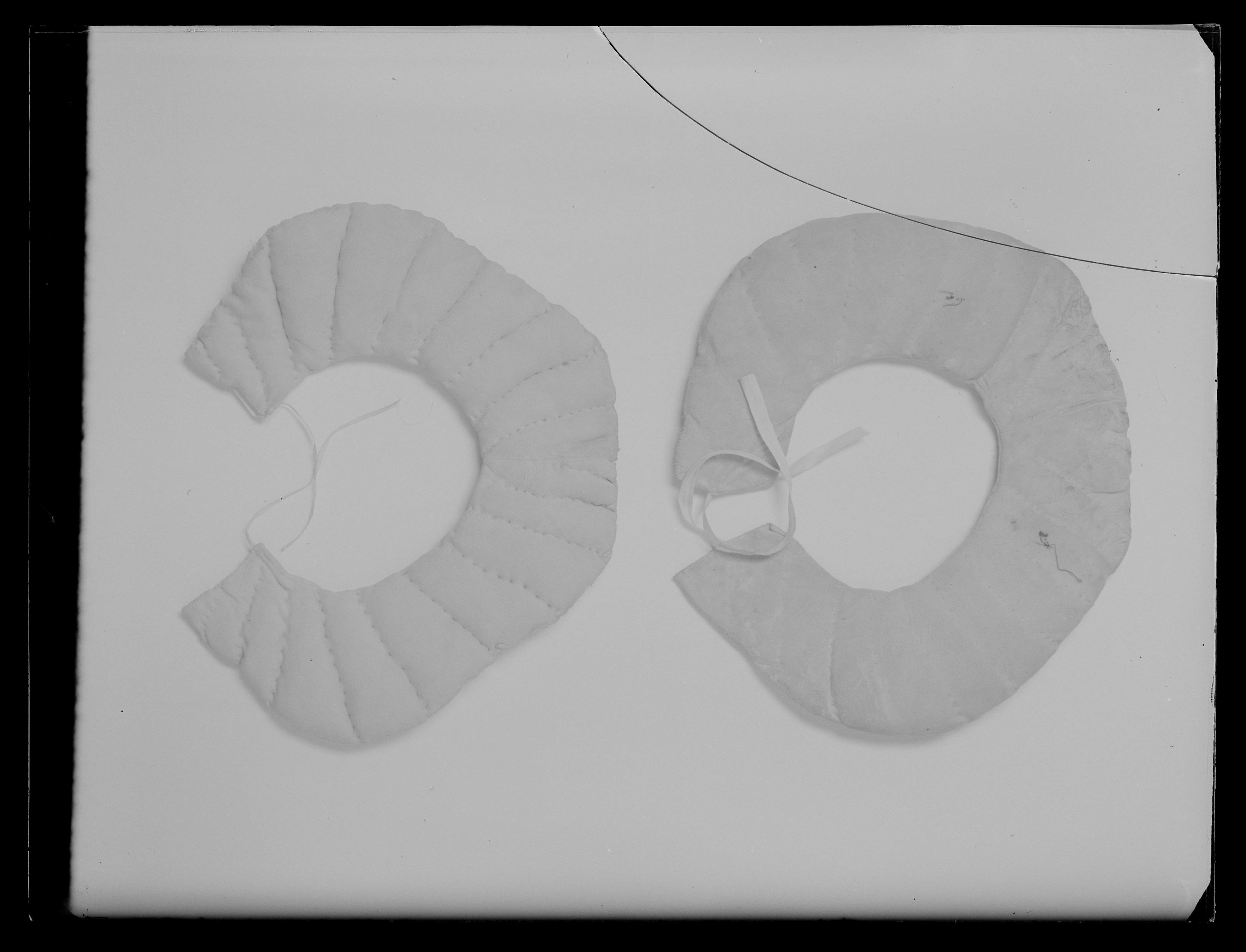 Ringformig tornerhalsputa av gult sämskskinn. Vadderad, främst på sidorna. Troligen vadderad med tagel. Sömmar för att hålla vadderingen på plats. En skarv löper tvärs över tornerhalsputan dvs den består av två ihopsydda stycken. Själva ringen är ca 105mm bred. Två smala linneband, 205mm långa, framtill för att knyta ihop halsputan.