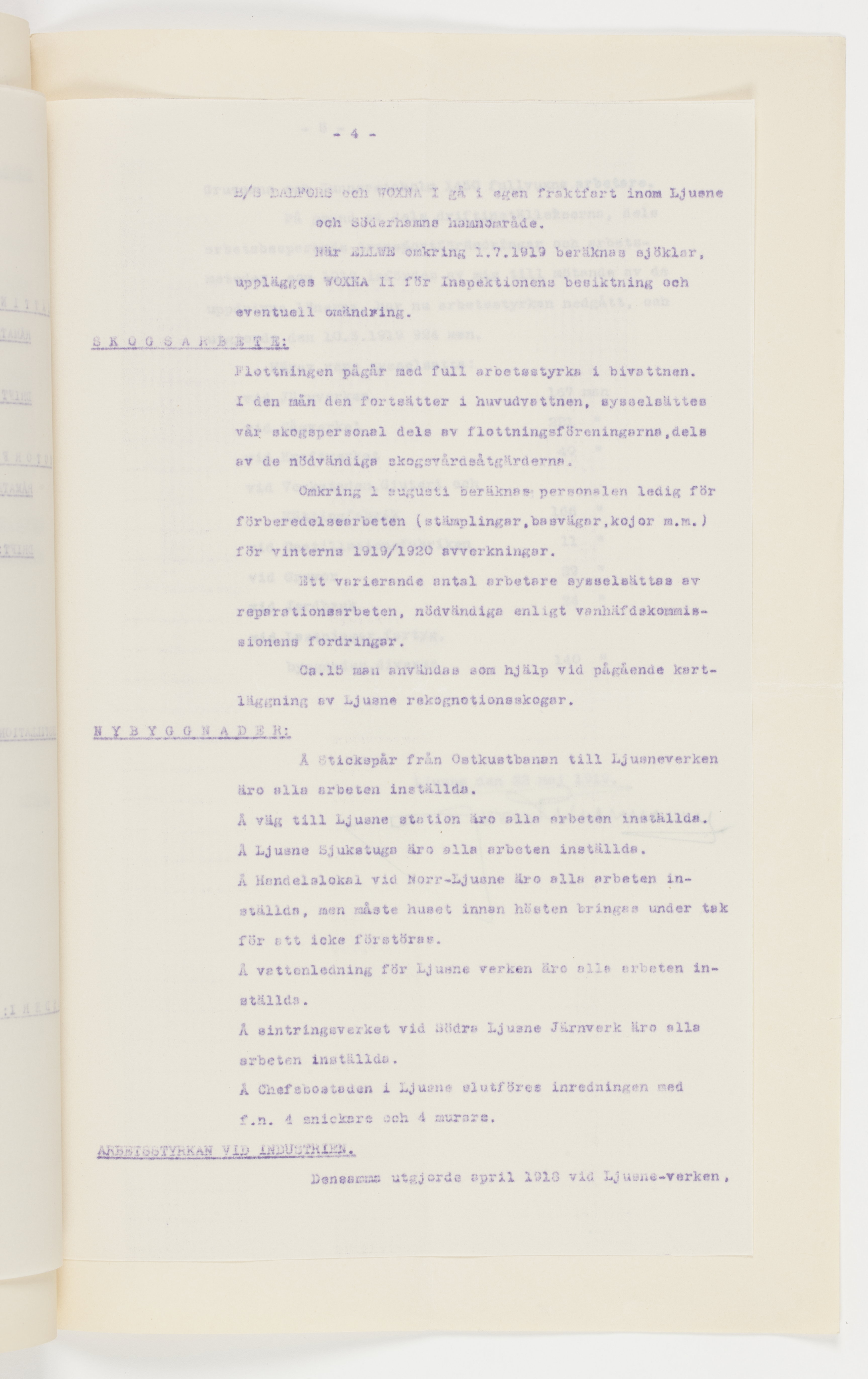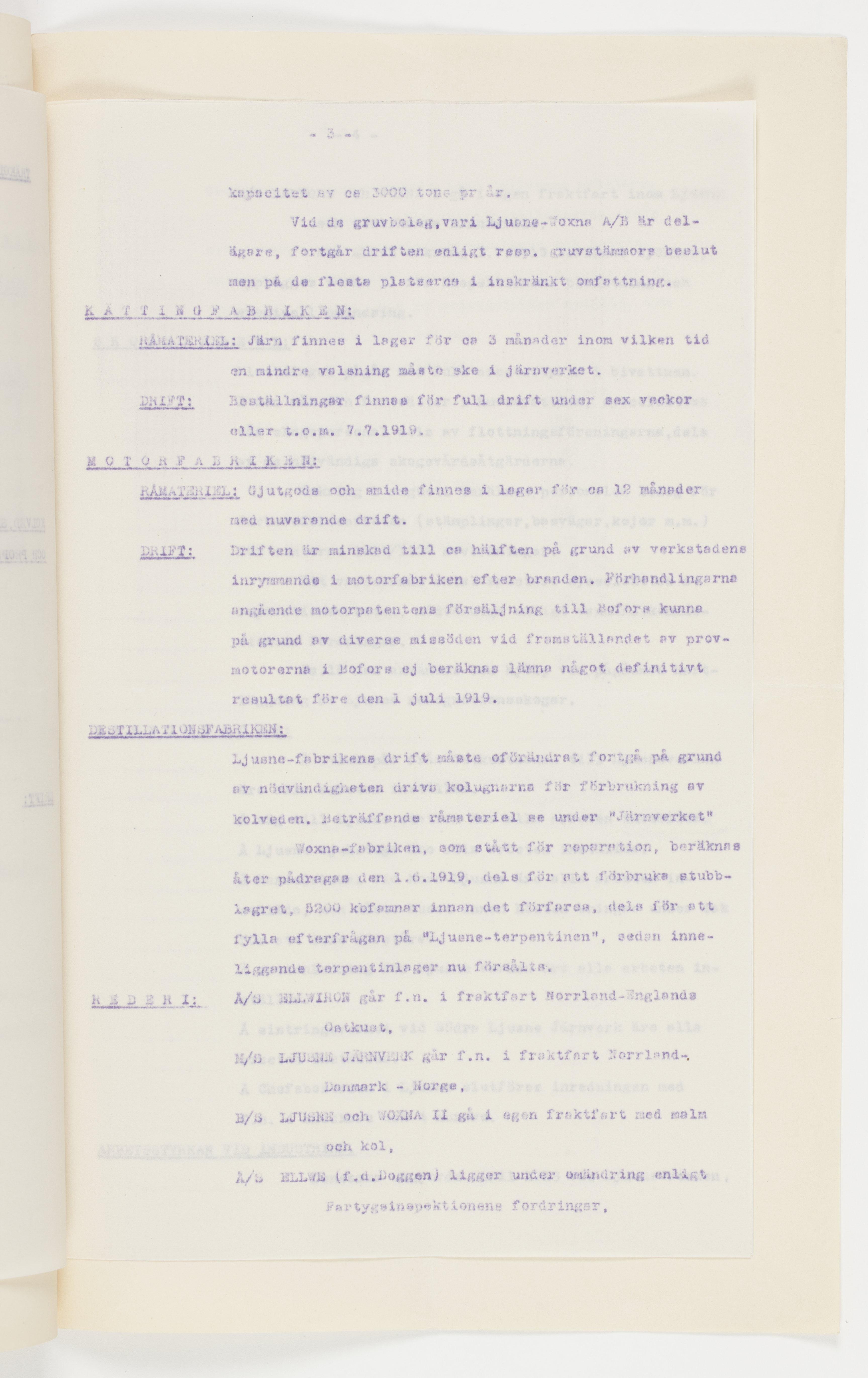 P. M. över driften vid Ljusne-Woxna AB. 22 maj 1919. Harry von Eckermann.