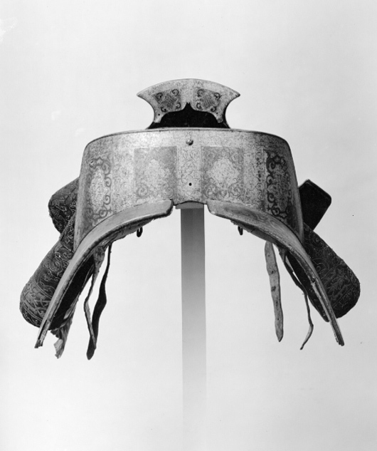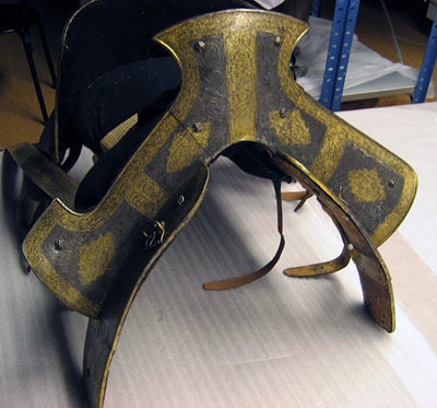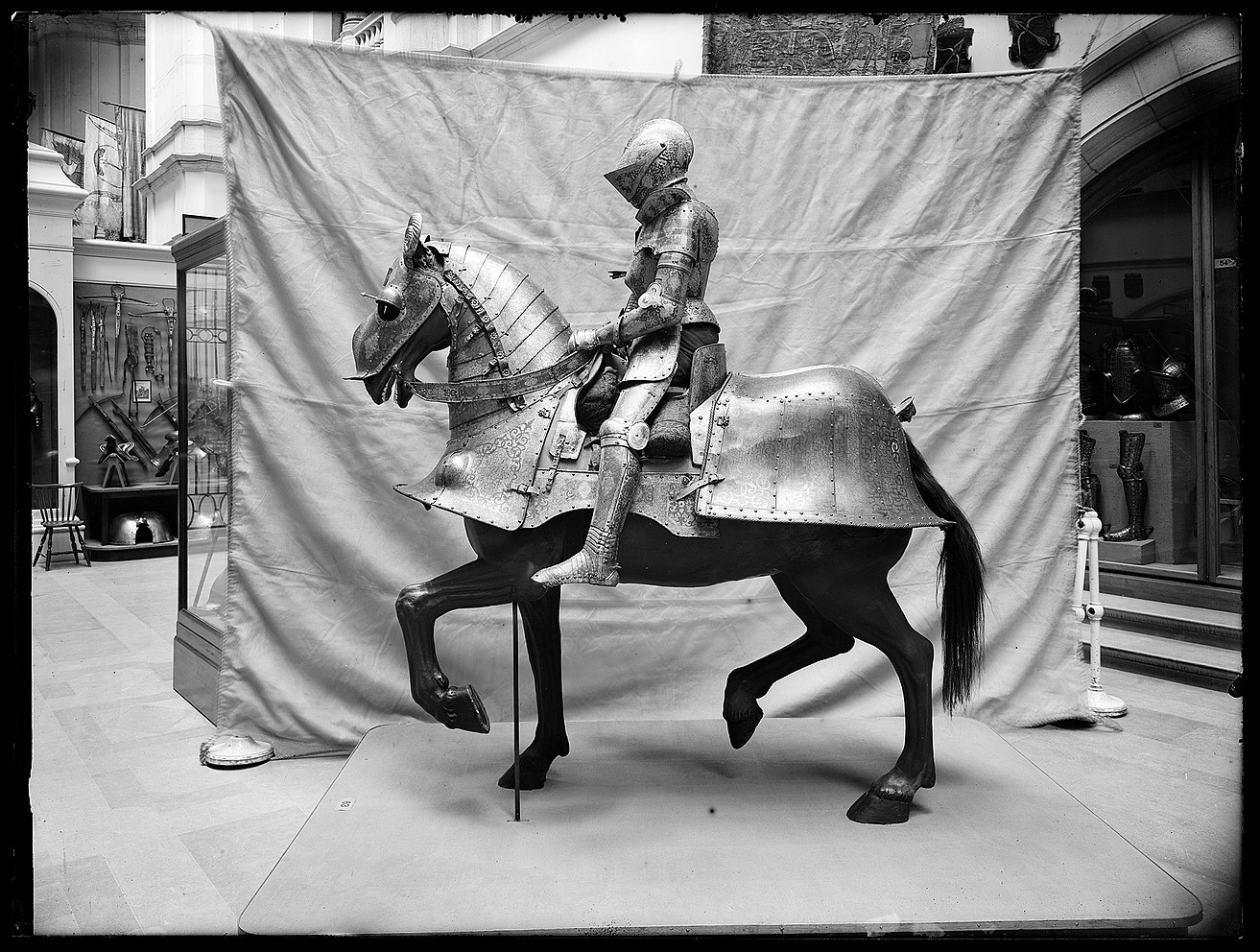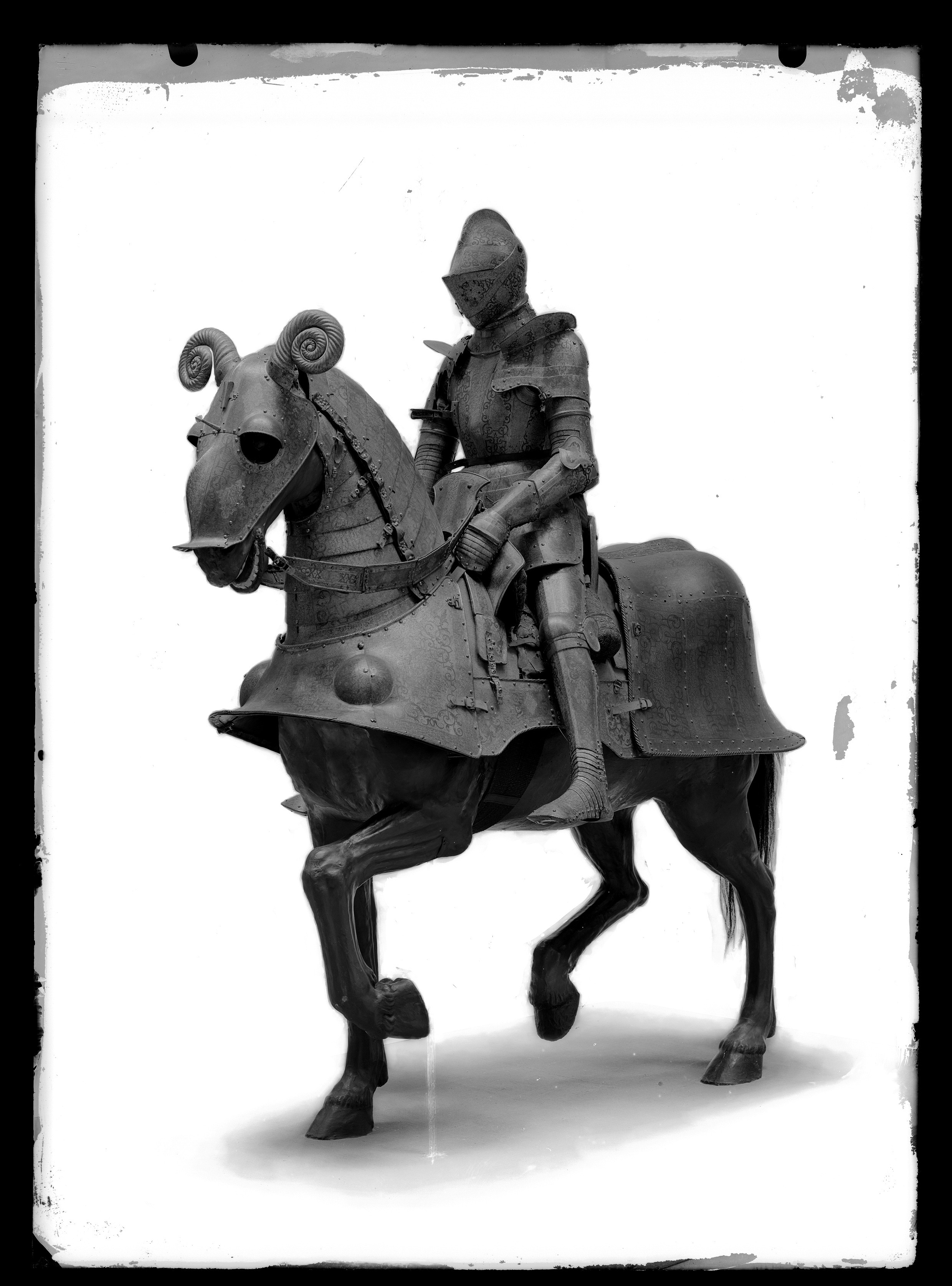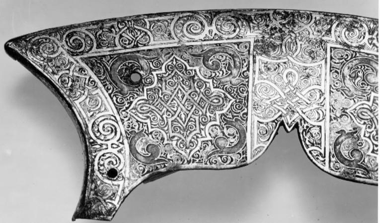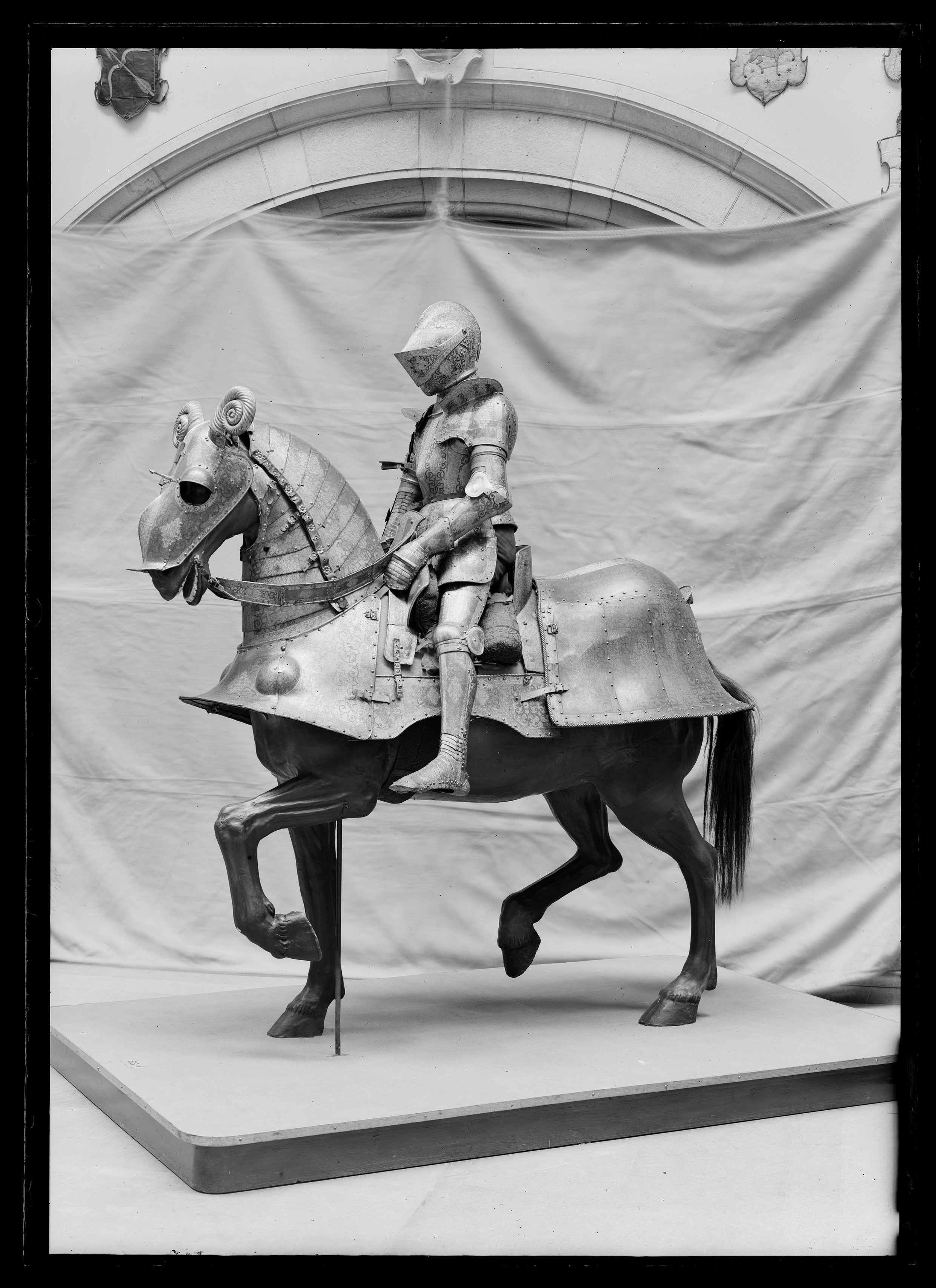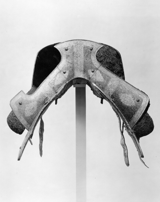 Sadel, ingående i Sigismund Augusts rustningsgarnityr för man och häst. Skänkt år 1574 av prinssessan Anna av Polen till Johan III. Tillverkad på 1550-talet av Kunz Lochner i Nürnberg.