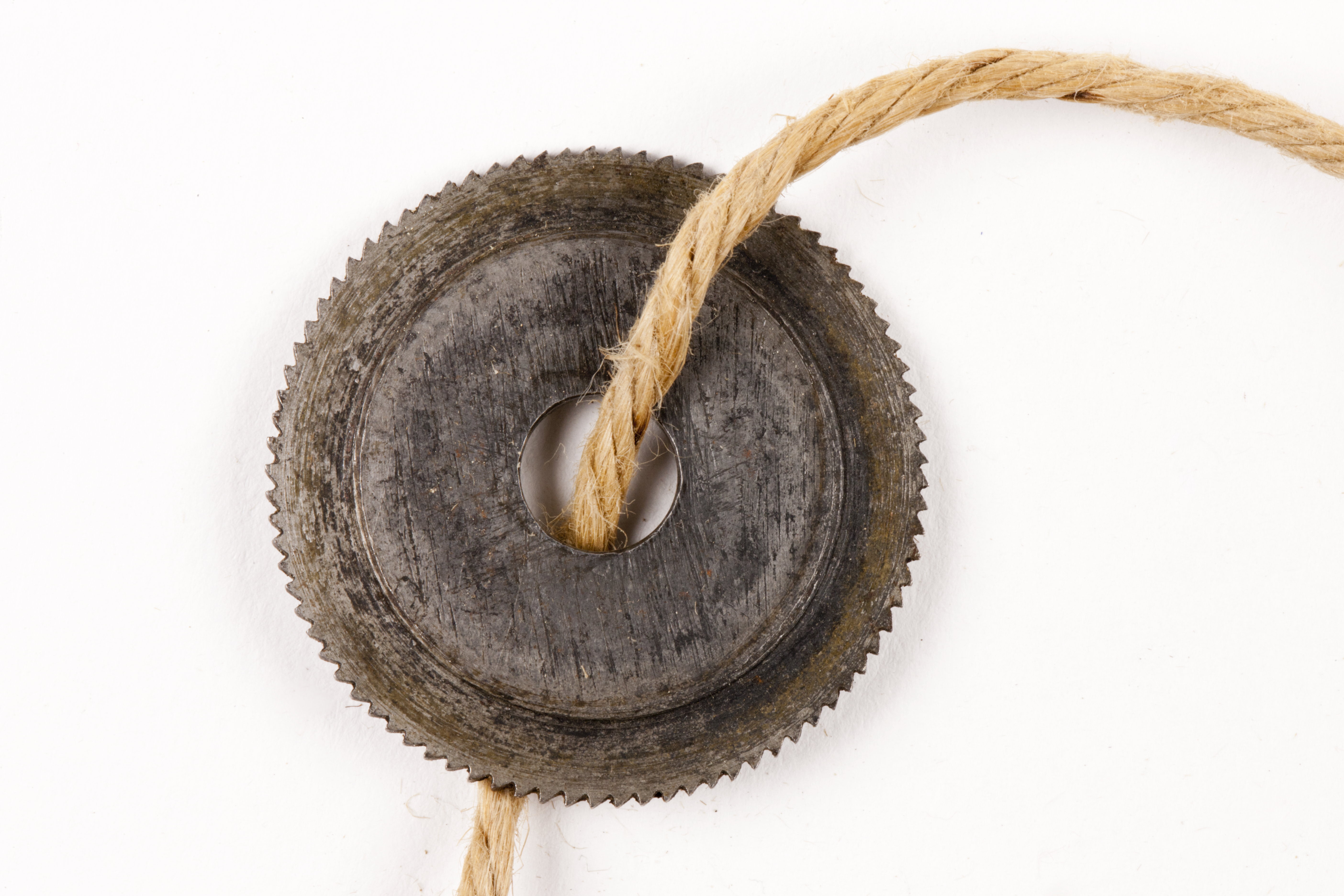 Rund, tjockare mot mitten, tvärgående tänder. Hålets diam 7 mm. Stämplad med en punkt.
