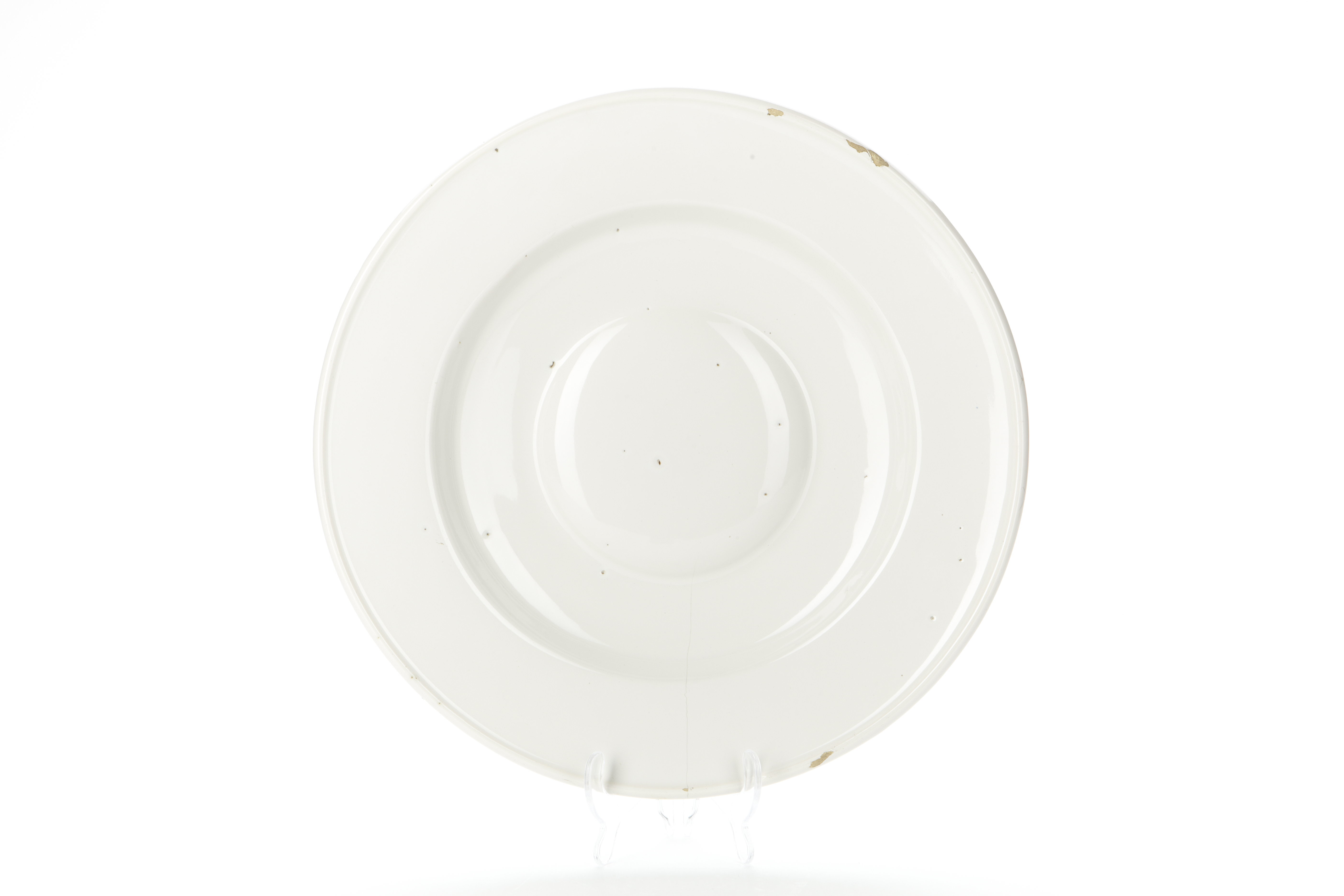 Stekfat av vitglaserad fajans.