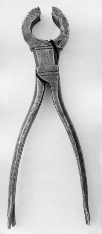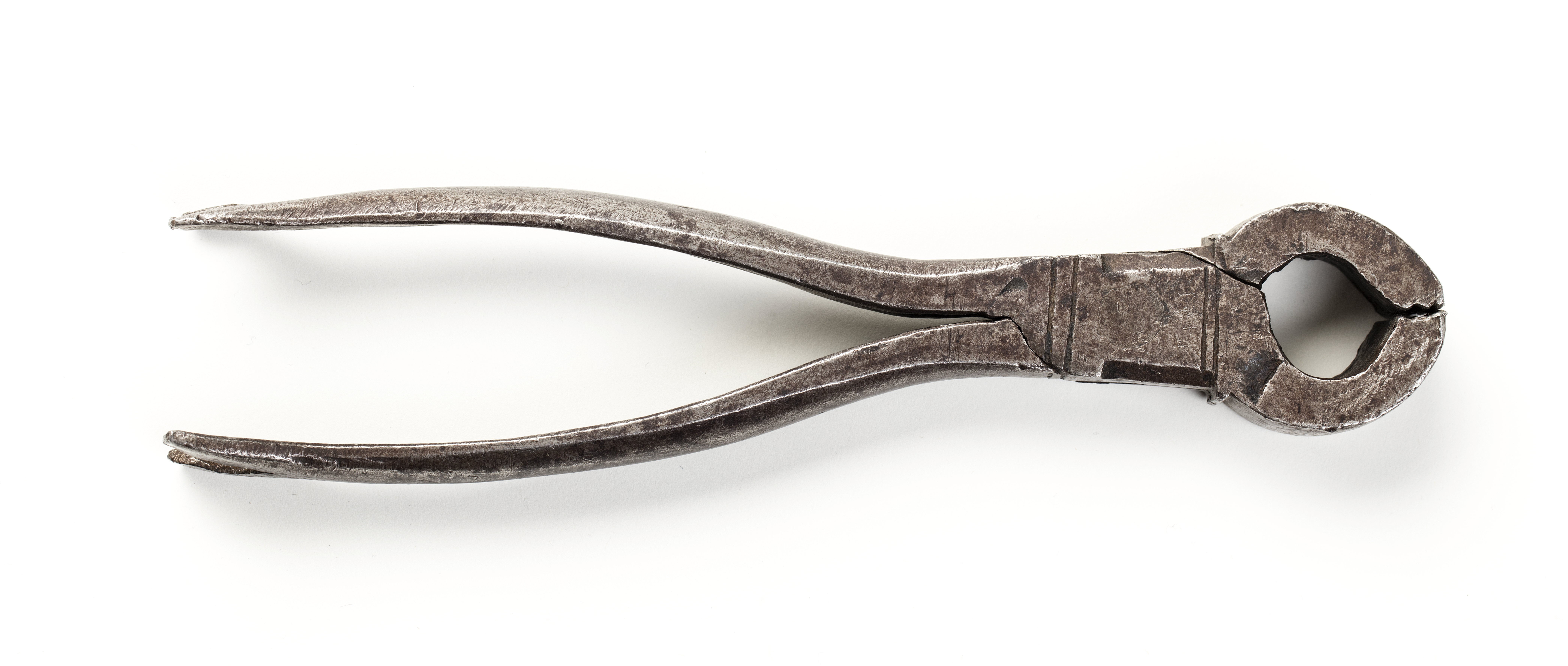 Tång med böjda, kraftiga, breda, räfflade käftar. Dubbelnitad led. Skänklar avslutade med spikutdragare.
