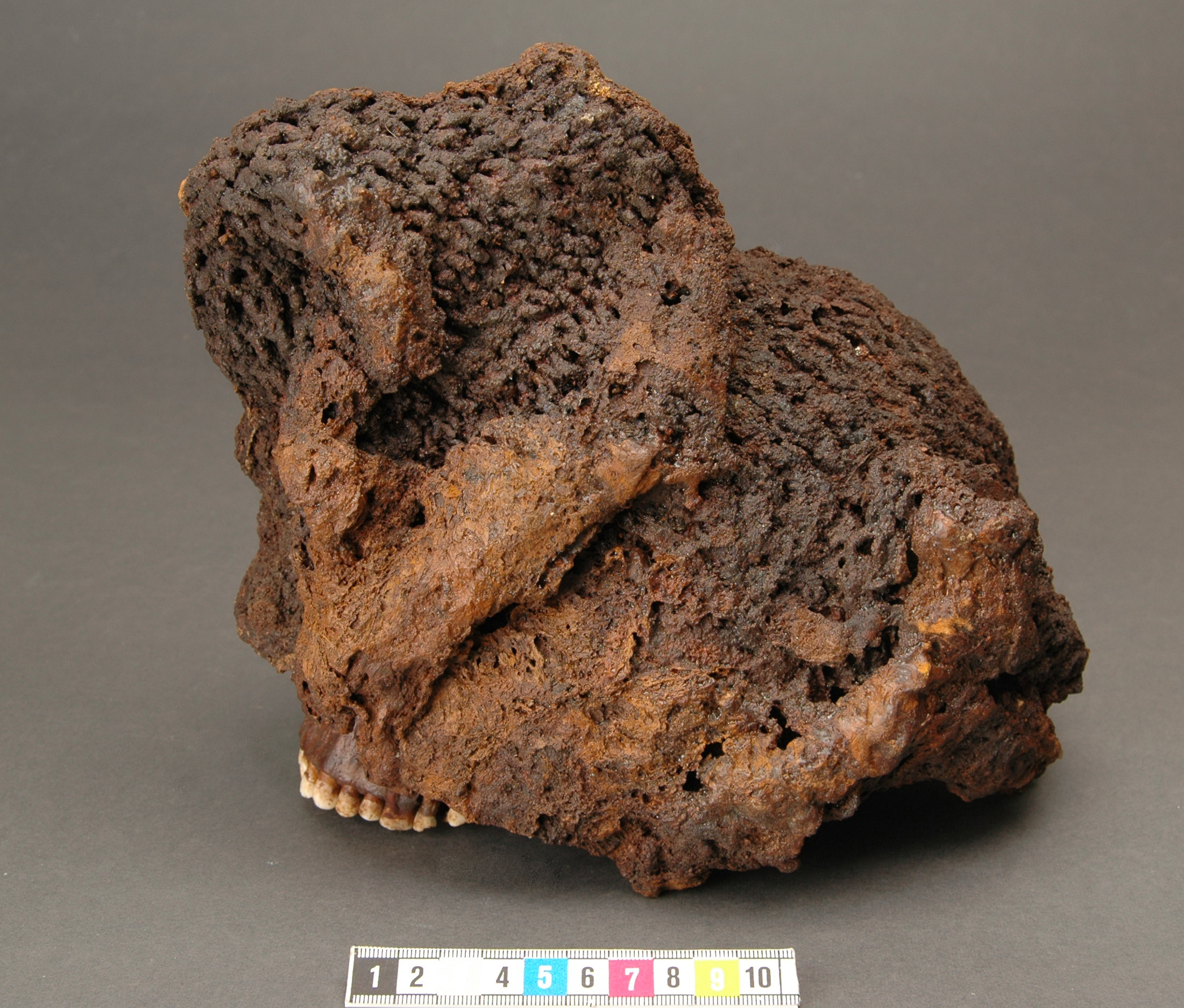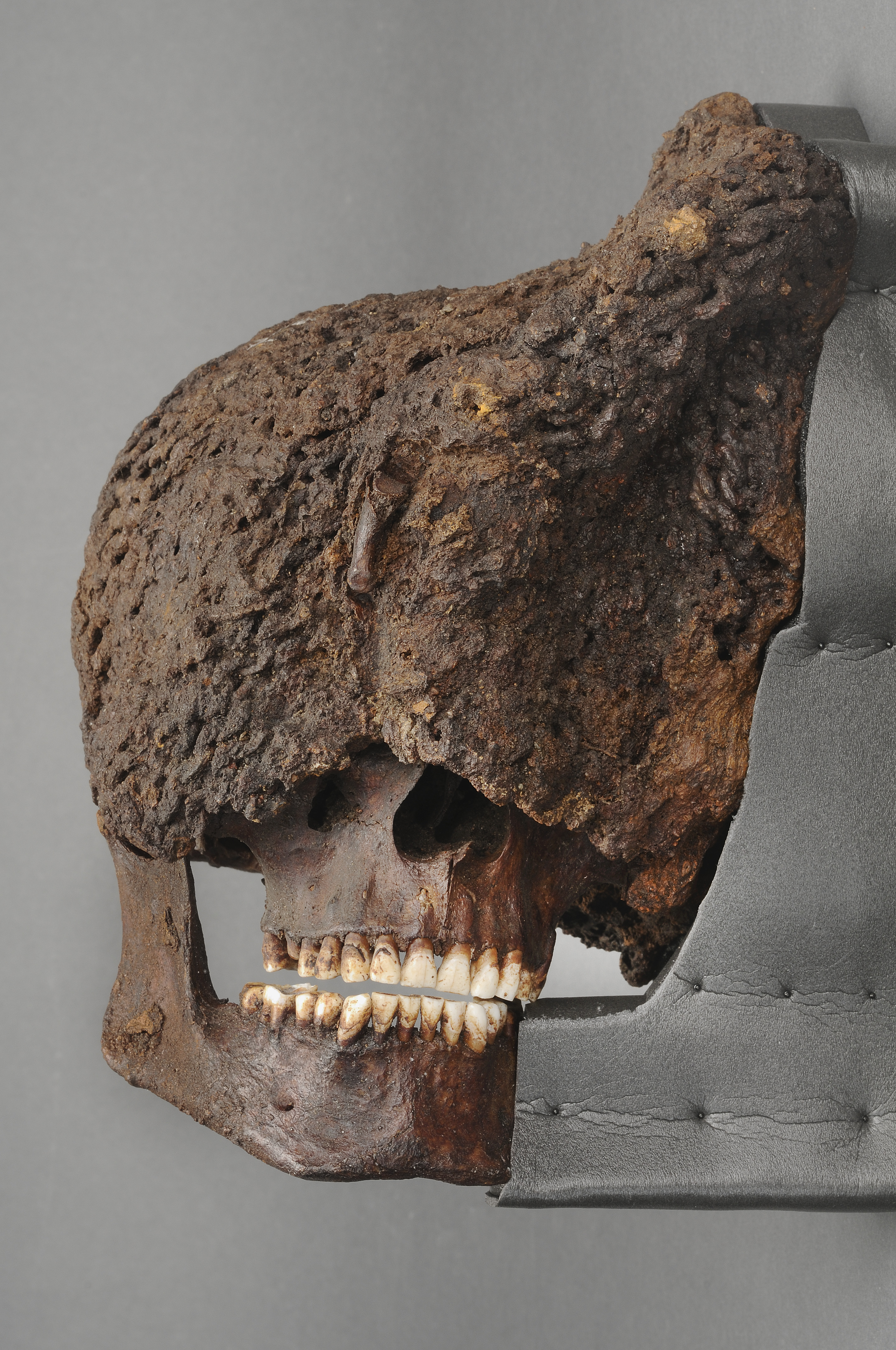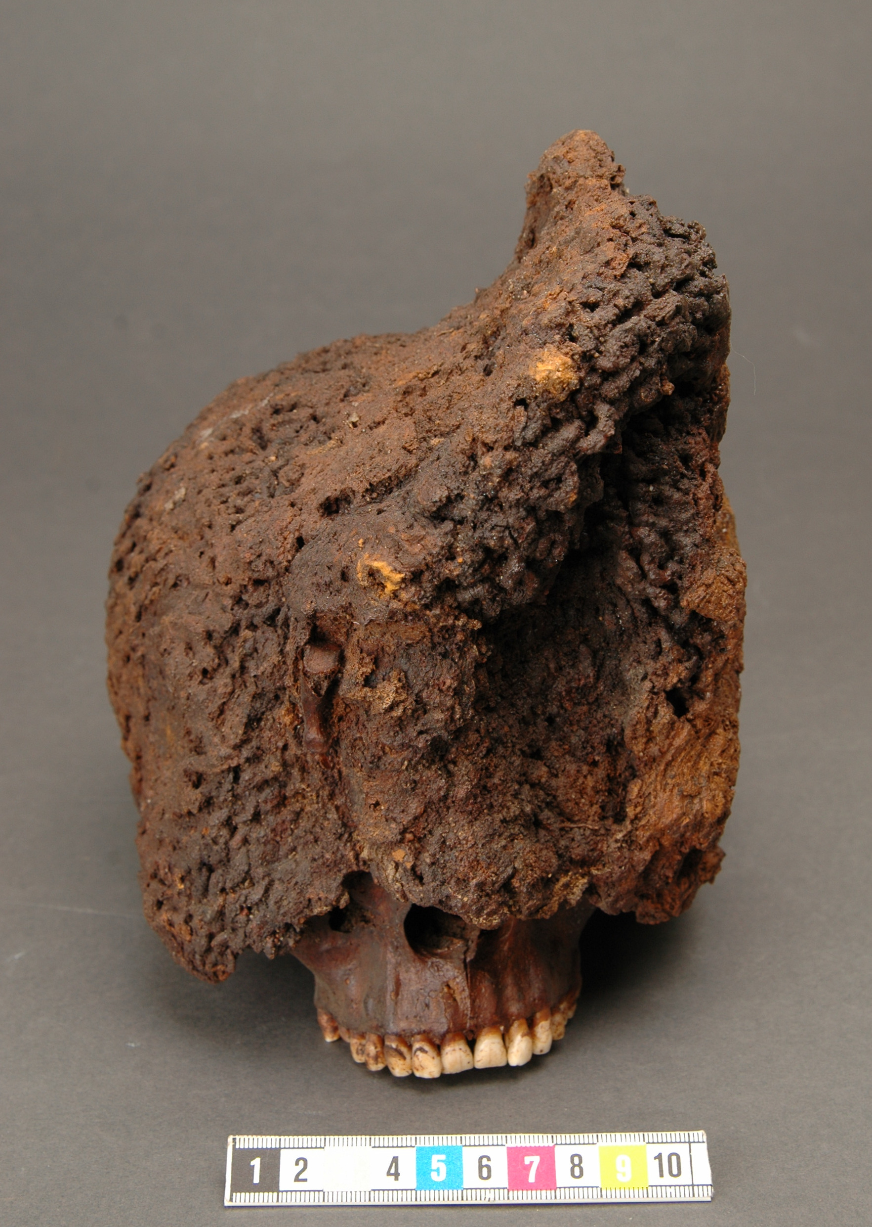 Huva omslutande ett kranium, därjämte 39 fragment av huvan, vid ett av dessa sitter ett fragment av vänster underkäke fast. På huvan sitter ett fingerben fast mitt för kraniets panna. Man, 30-35 år. Strontiumanalys tyder på att den döde kommer från svenska fastlandet eller i alla fall utanför Gotland.