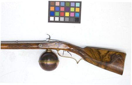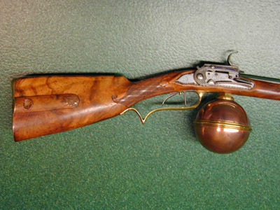 Miniatyrluftbössa med stånglås och glob under kolven, av H. F. Jacobi, Dresden ca 1750-1800.