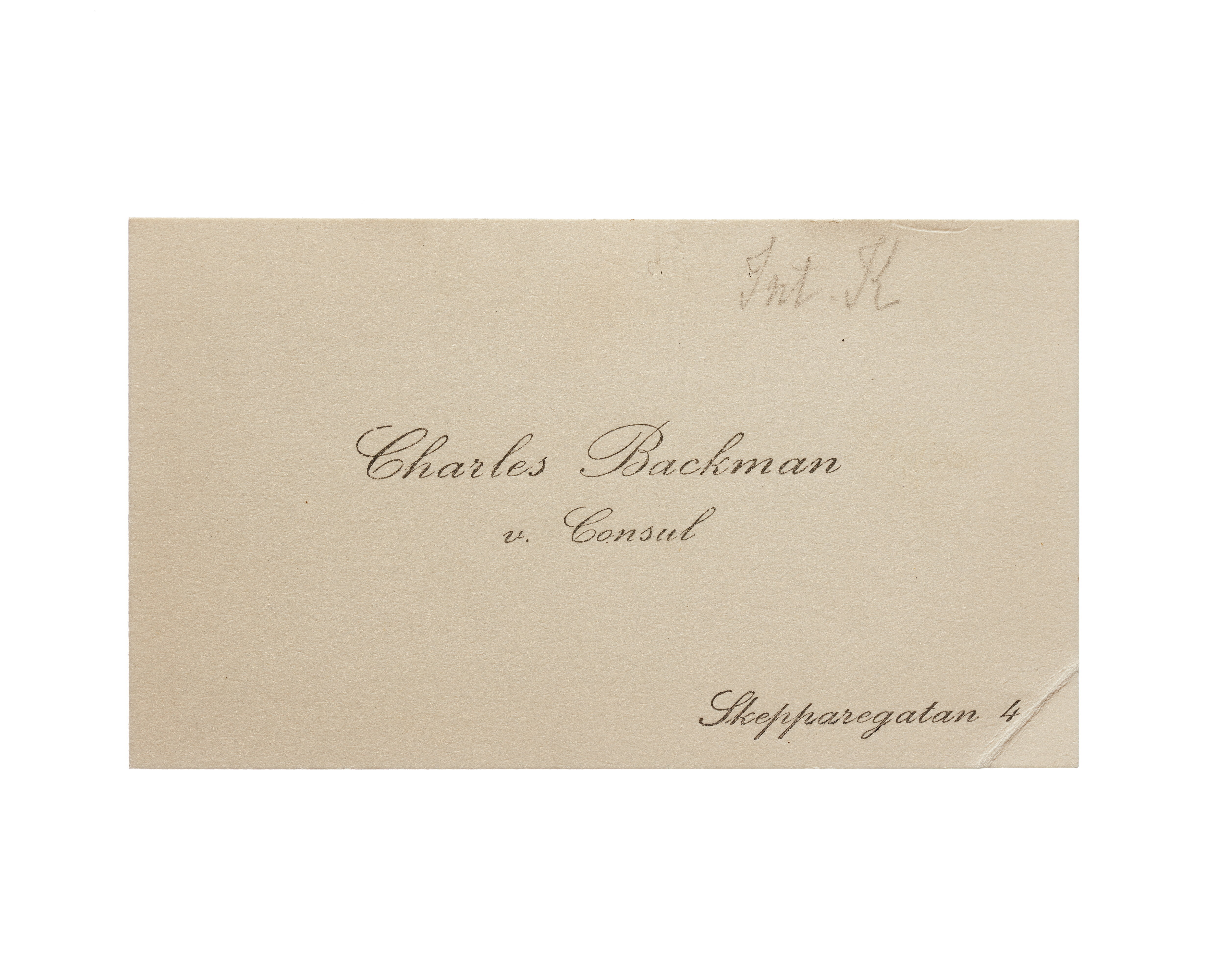 Visitkort från Charles Backman v. Consul