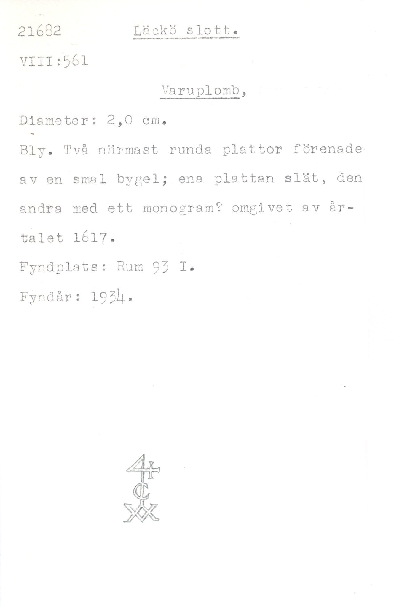 ena sidan med monogram omgivet av årtalet 1617
