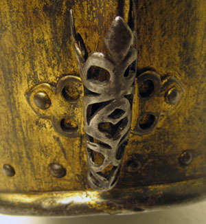 Driven stålplåt med förgylld och polerad utsida. Sammanlagt fyra delar.