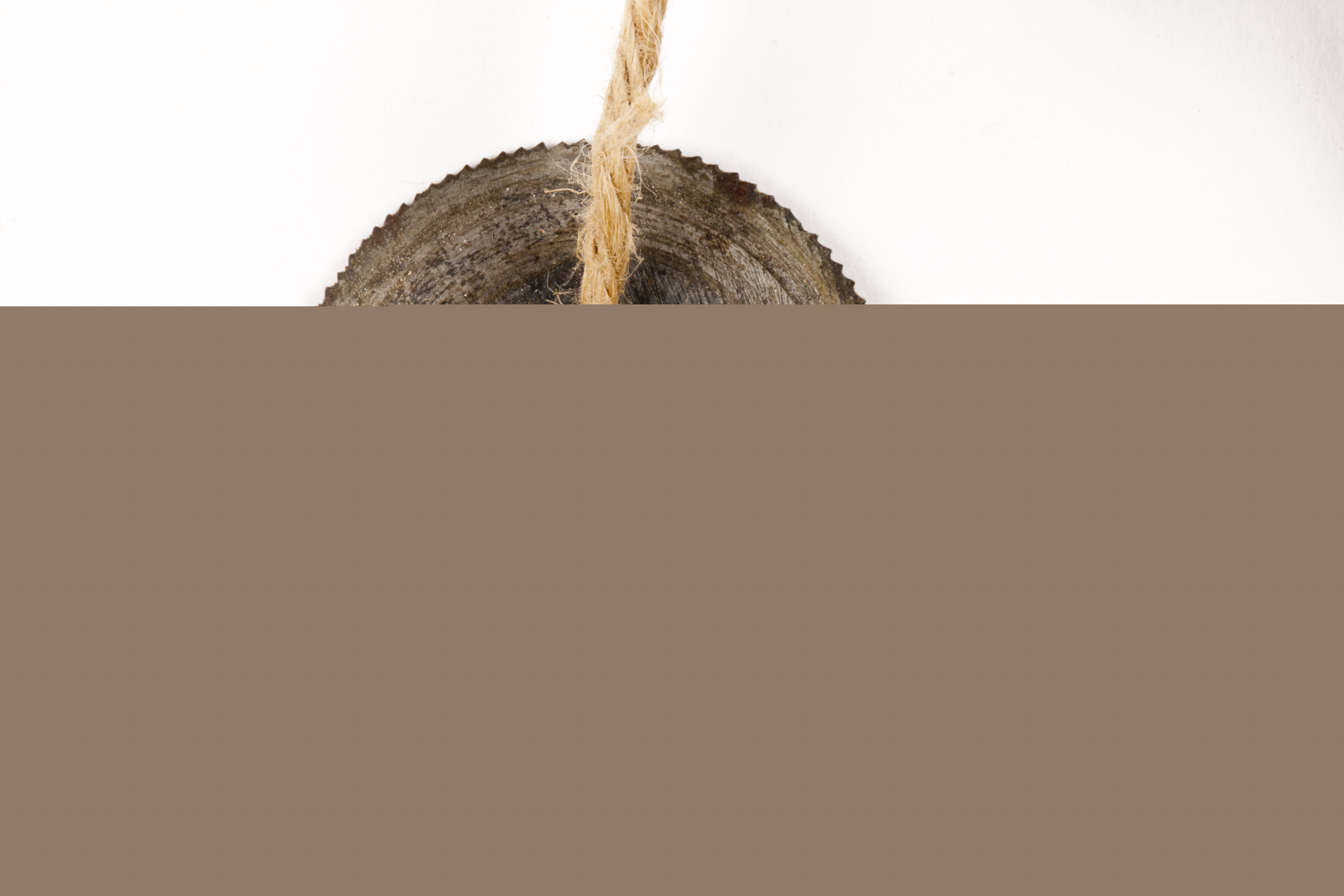 Rund, tjockare mot mitten. Tvärgående tänder. Hålets diam 7 mm. Stämplad med en punkt.