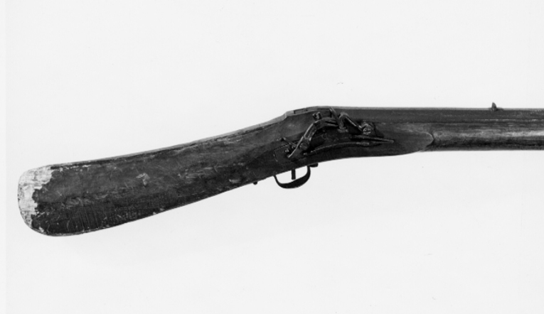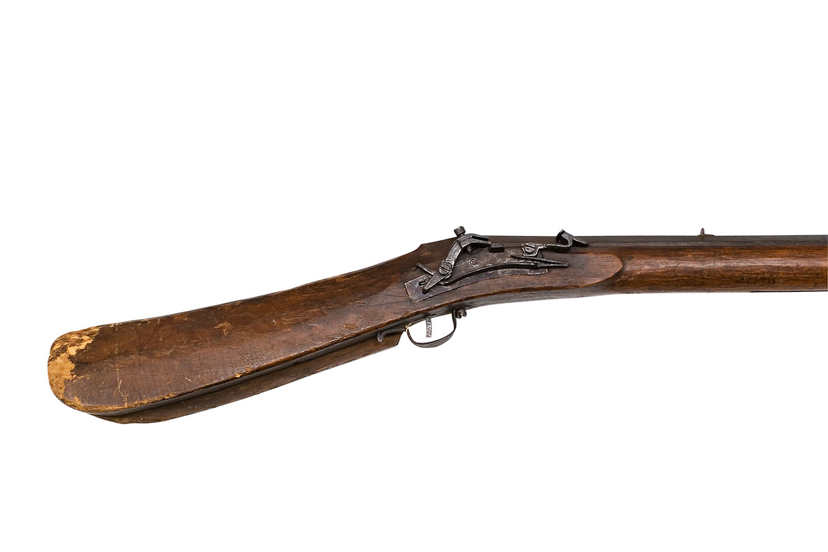 Åttsidig, räfflad pipa med åtta räfflor, bombredd ca 1 mm. Vid pipbasen på v. övre fasen stämplat HF S (Stöckelnr 2852?, jfr nr 3048). Riktmedel: Inlaxat ståndsikte, kornet saknas. Fästning: Ett häfte. Pipan fäst med krysskruv underifrån (varbygelskruven) samt ett pipstift av trä. Snapplås, litet av svensk typ med plant, kantigt låsbleck. Böjd hane med lång, lös överkäke, käkskruv med cylindriskt huvud, lång hanhäl och studel under hanskruven. Kantig, platt fängpanna. Batteri av samma typ som lägglåsens, plant fängpannelock och rundat eldstål, bandformig arm. Kombinerad eldståls- och batterifjäder, bredare undre arm. Fästning: En låsskruv. Svagt böjd avtryckare. Brun helstock av furu, l: 264 mm med lång, rak kolv av äldre, i svag vinkel nedsvängd typ, trekantigt tvärsnitt, rundad kolvände och liten vinge under anslaget. Delvis öppen laddstocksränna, smal öppning. Liten, bred, platt varbygel av stål, främre armen fäst med krysskruven.