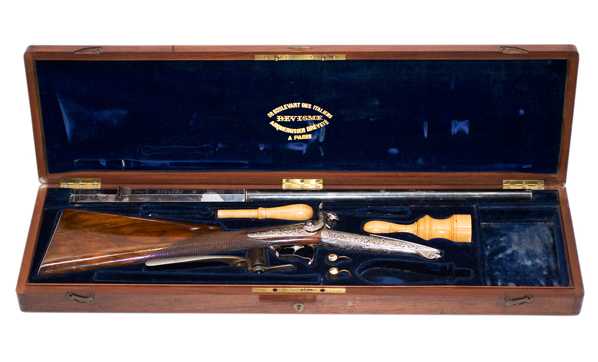 Signatur/Påskrift: 36-BOULEVART DES ITALIENS // DEVISME // ARQUEBUSIER BREVETE // A PARIS
