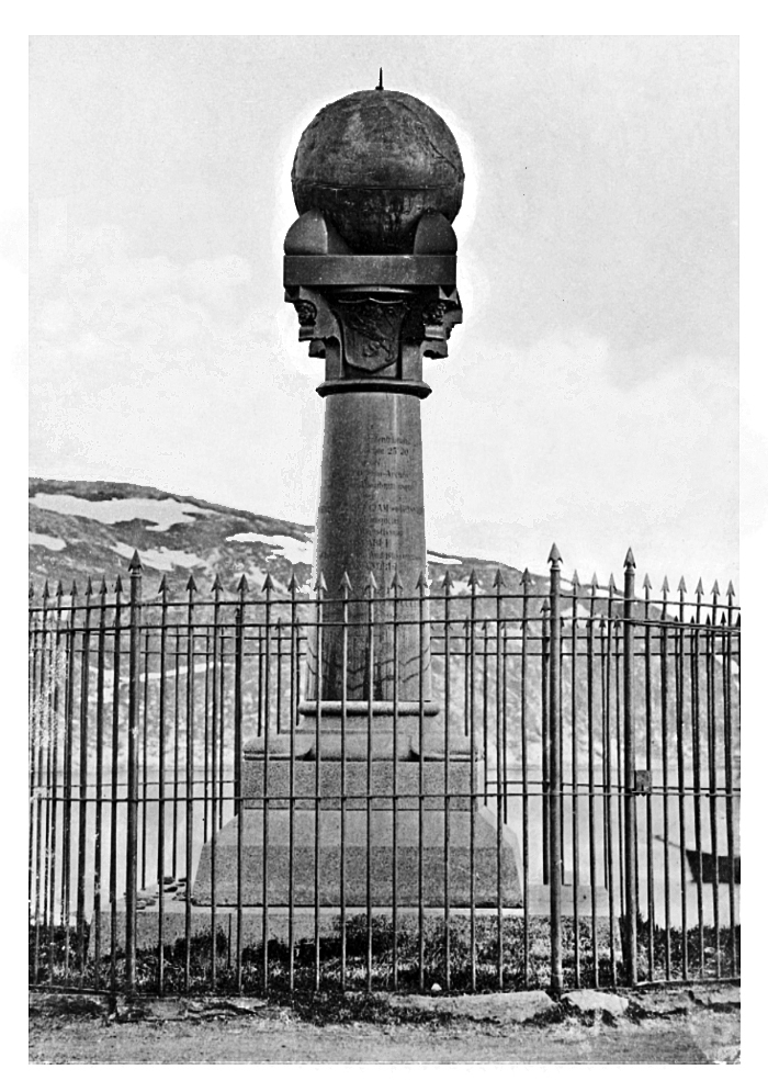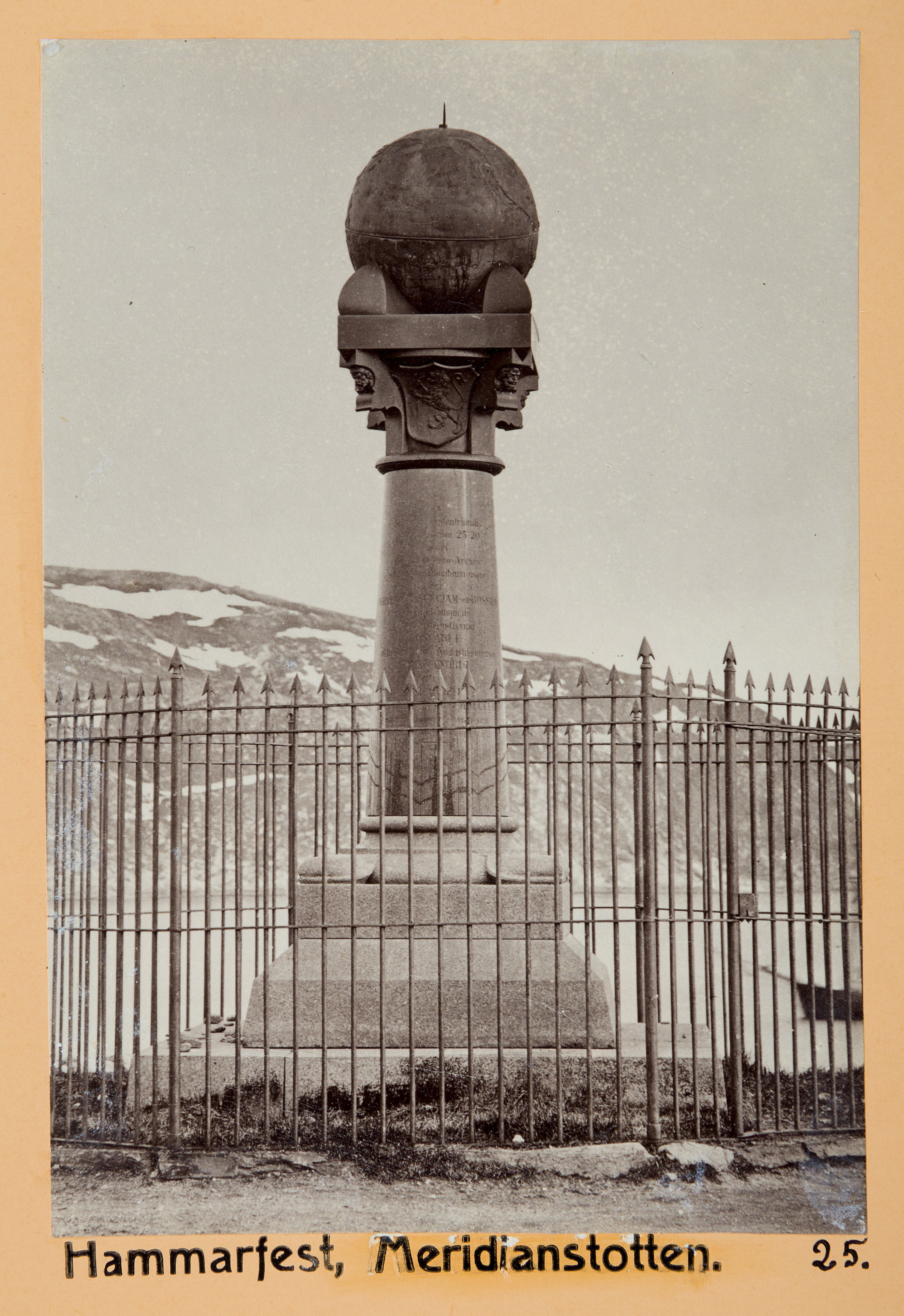 Meridianstøtten i Fuglenes, Hammerfest. Fotografierna LXVI:C.01.-33. är inköpta av Wilhelmina von Hallwyl, f. Kempe, i Trondheim, Tromsö och Hammerfest under en resa till Norge tillsammans med maken Walther von Hallwyl, modern Johanna Kempe, döttrarna Ebba, Ellen och Irma, Walthers svägerska Ester von Hallwyl, f. von May, från Schweiz, med sina döttrar Hilda och Irma samt fröknarna Caroline Pflaum och Ida Uhse. Gruppen reste med ångbåten Capella från Trondheim till Nordkap och åter till Trondheim, 1-15 juli 1886. Uppgifterna kommer från Ida Uhses reseanteckningar.