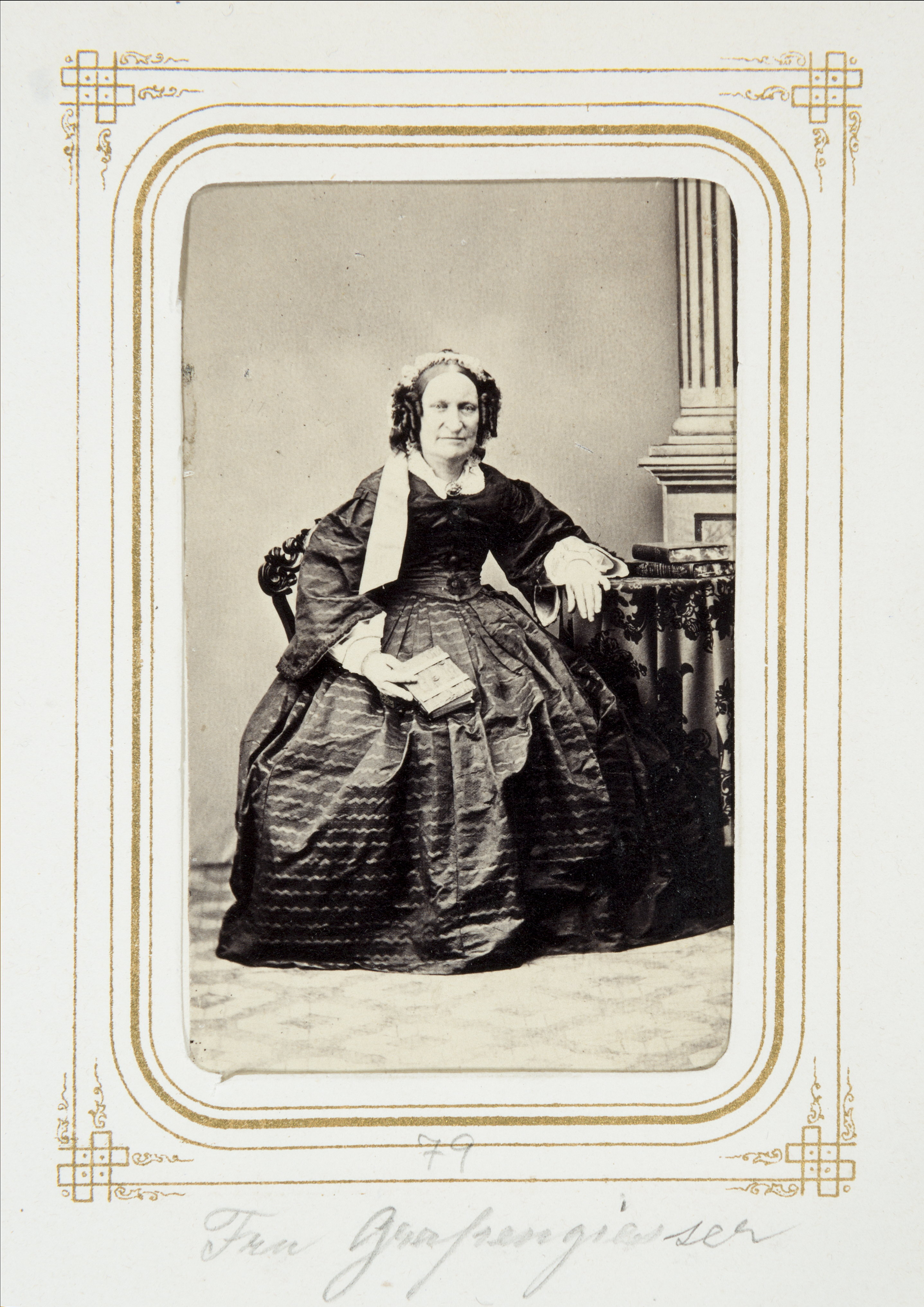 Biografi. Fotografiporträtt. 101 porträtt i album. Fröken EMMA GRAPENGEISSER. Erhållet av Johanna Kempe, f. Wallis på 1860-talet. 26,5x20,7x4 cm.