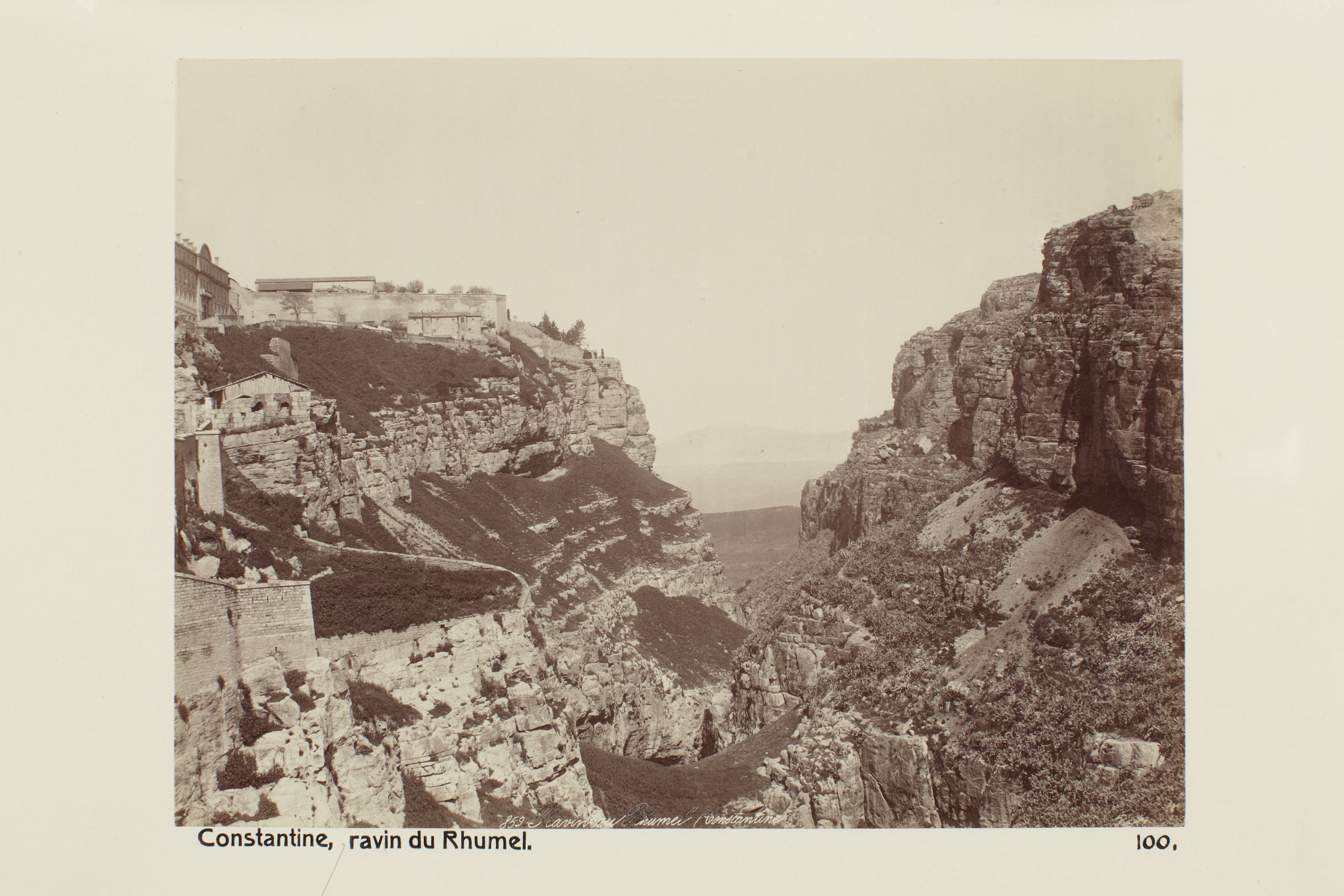 CONSTANTINE, Algeriet. Rhumel-ravinen. Foto från resa genom Algeriet och Tunisien samt åter över Schweiz, 11 februari - 19 maj 1889. Samtliga foton i gruppen LXVI:F. är inköpta av Wilhelmina von Hallwyl i Alger, Biskra, Tunis, Constantine, Oran och Blidah vid hennes vistelse i nämnda städer tillsammans med sin make, Walther von Hallwyl, sin mor, Johanna Kempe, f. Wallis, dottern Irma samt fröknarna Caroline Pflaum och Ida Uhse. Uppgifterna kommer från fröken Ida Uhses reseanteckningar.