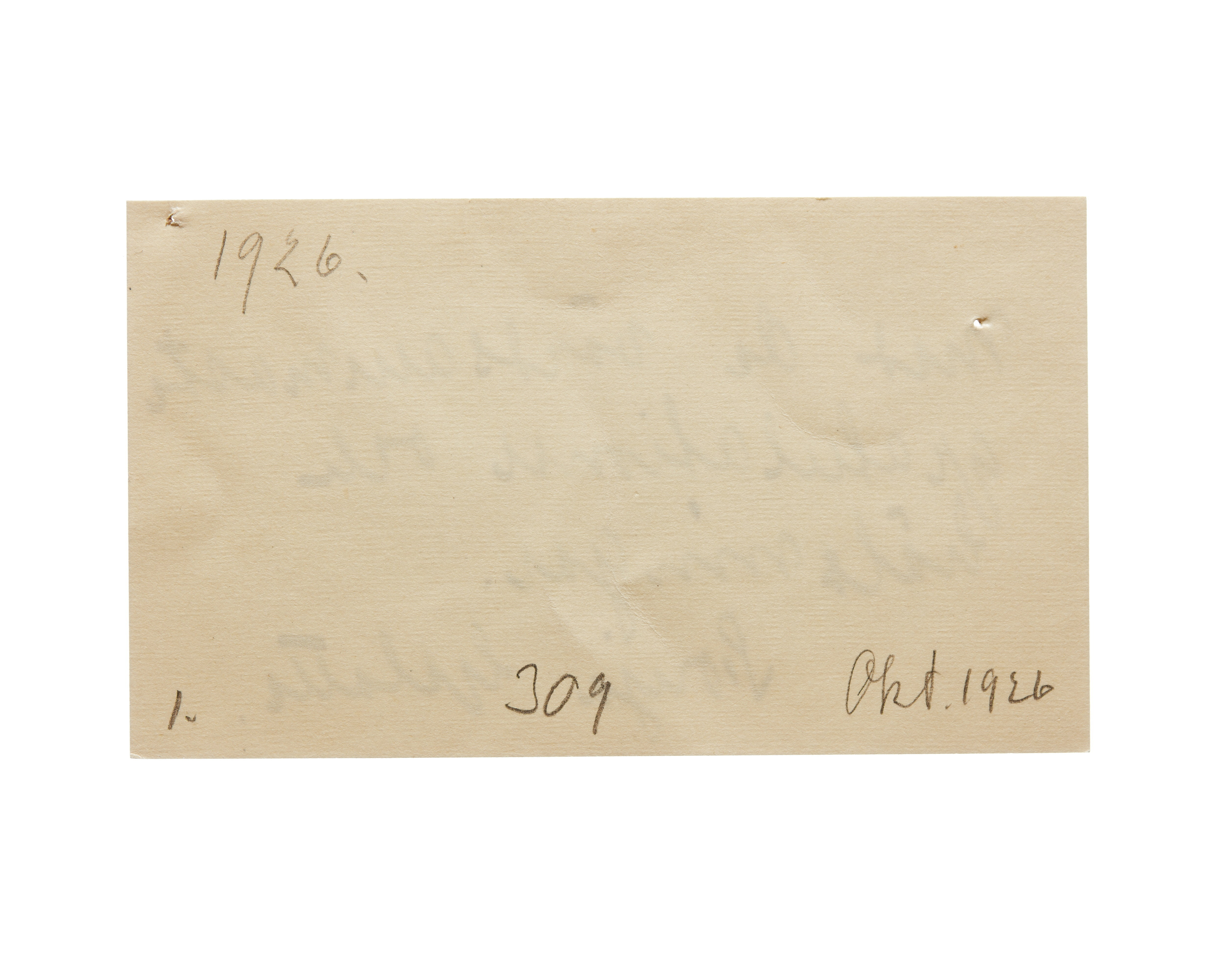 Ett visitkort från rödakorssyster Sonja Gelotte, daterat 1926. Handskrift "Med de värdsammaste gratulationer och hälsningar".