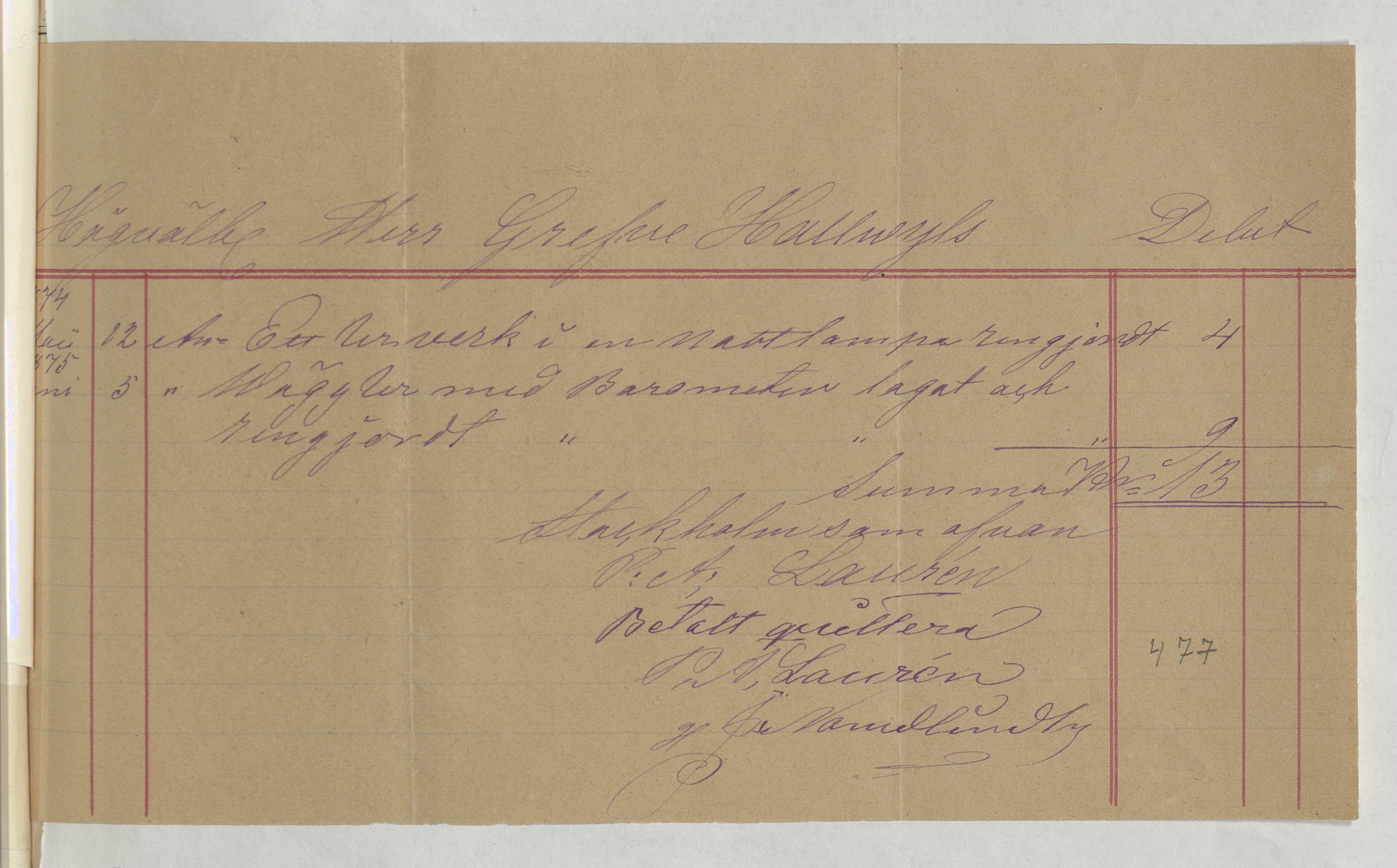 Kvitto från P. A. Laurén