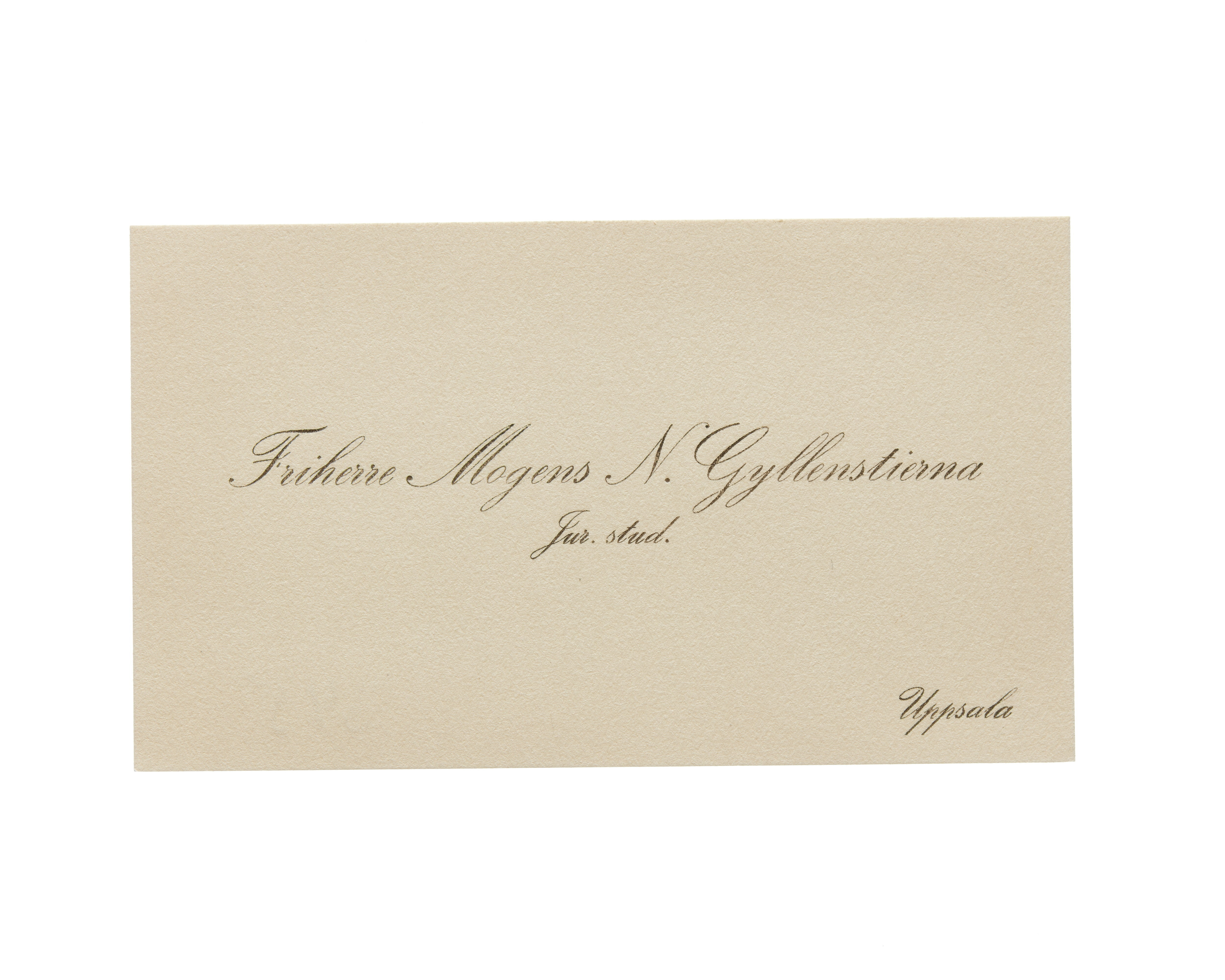 Visitkort från Friherre Mogens N. Gyllenstierna, Jur. stud.