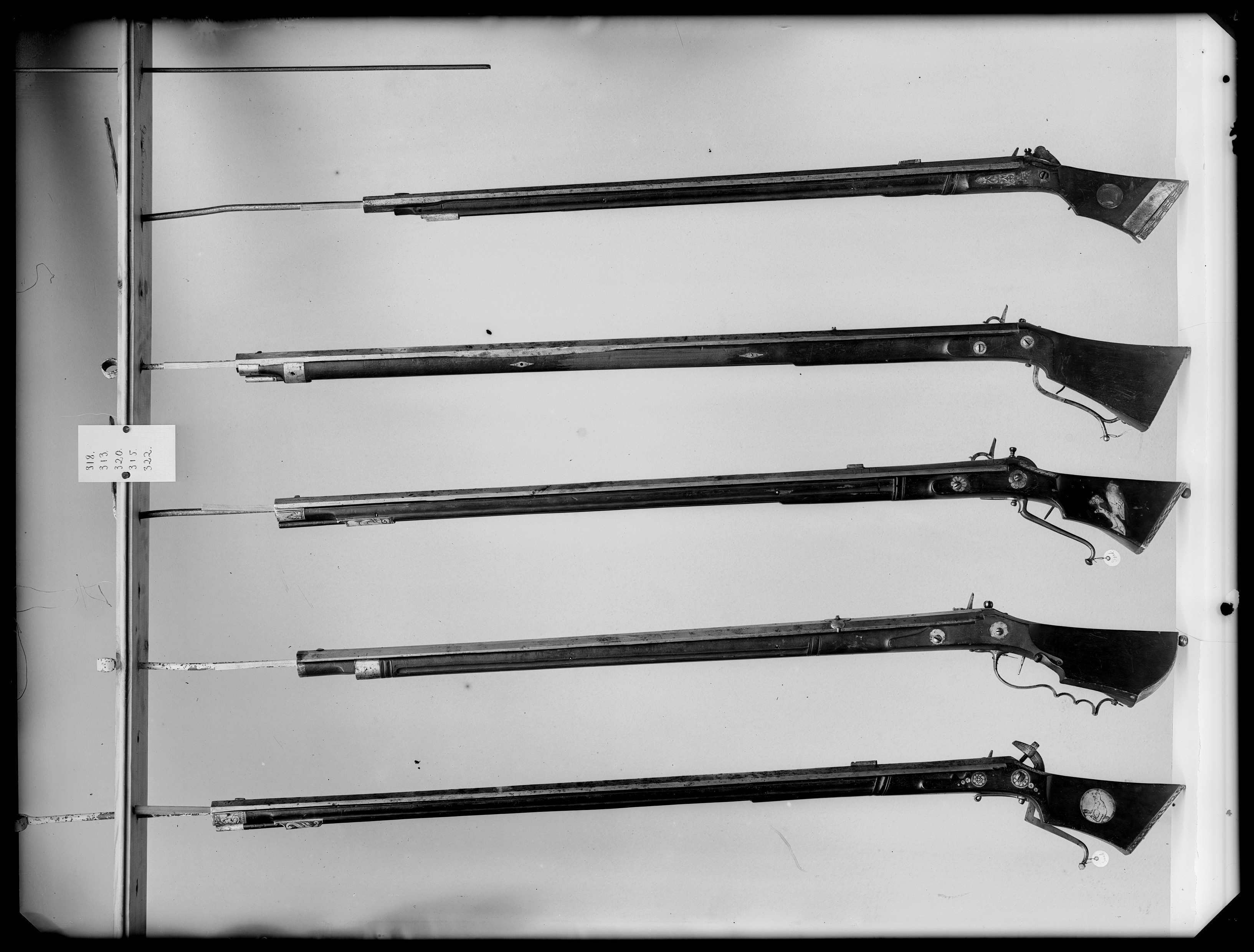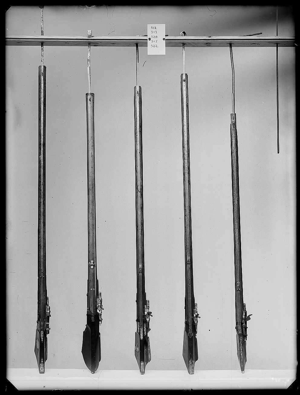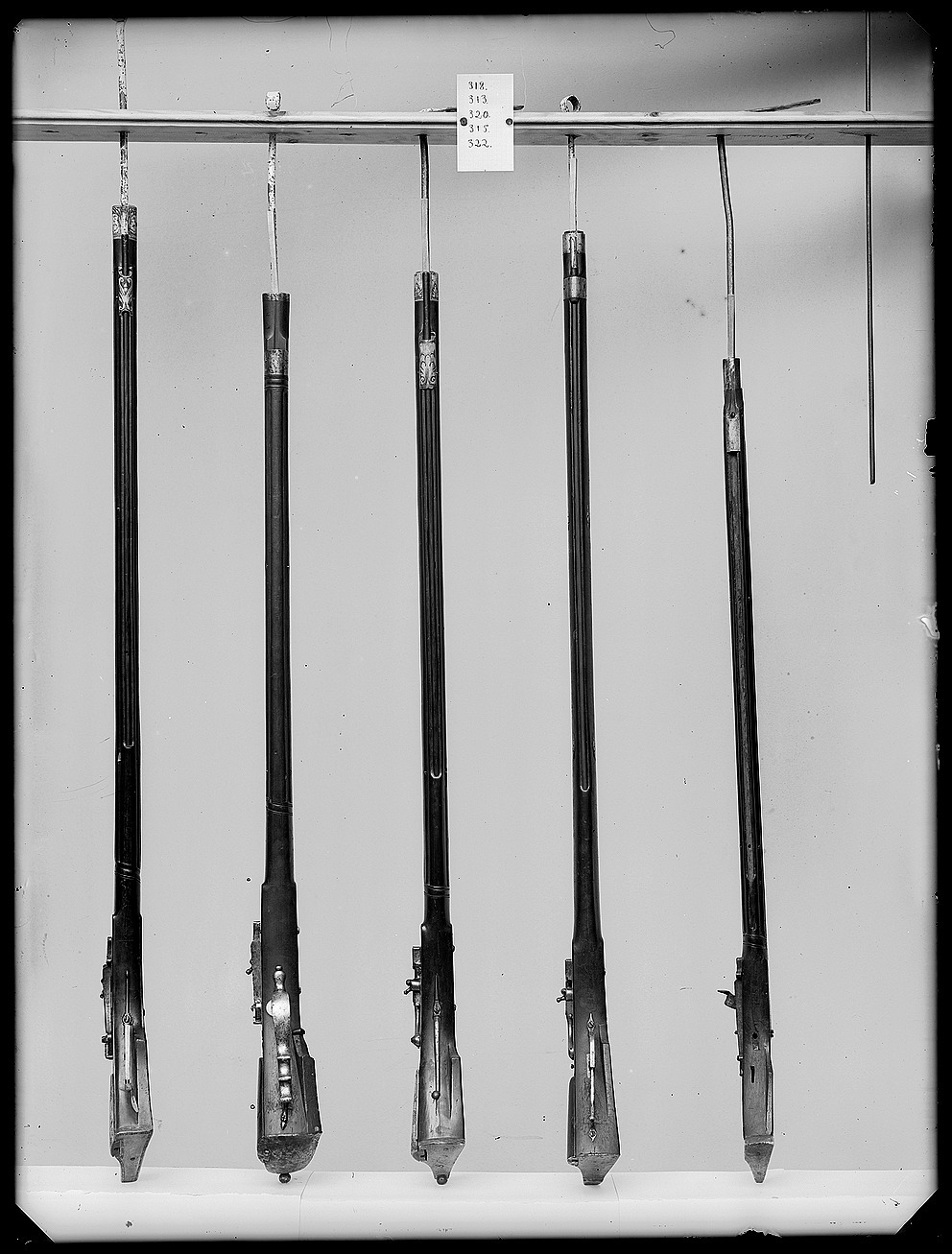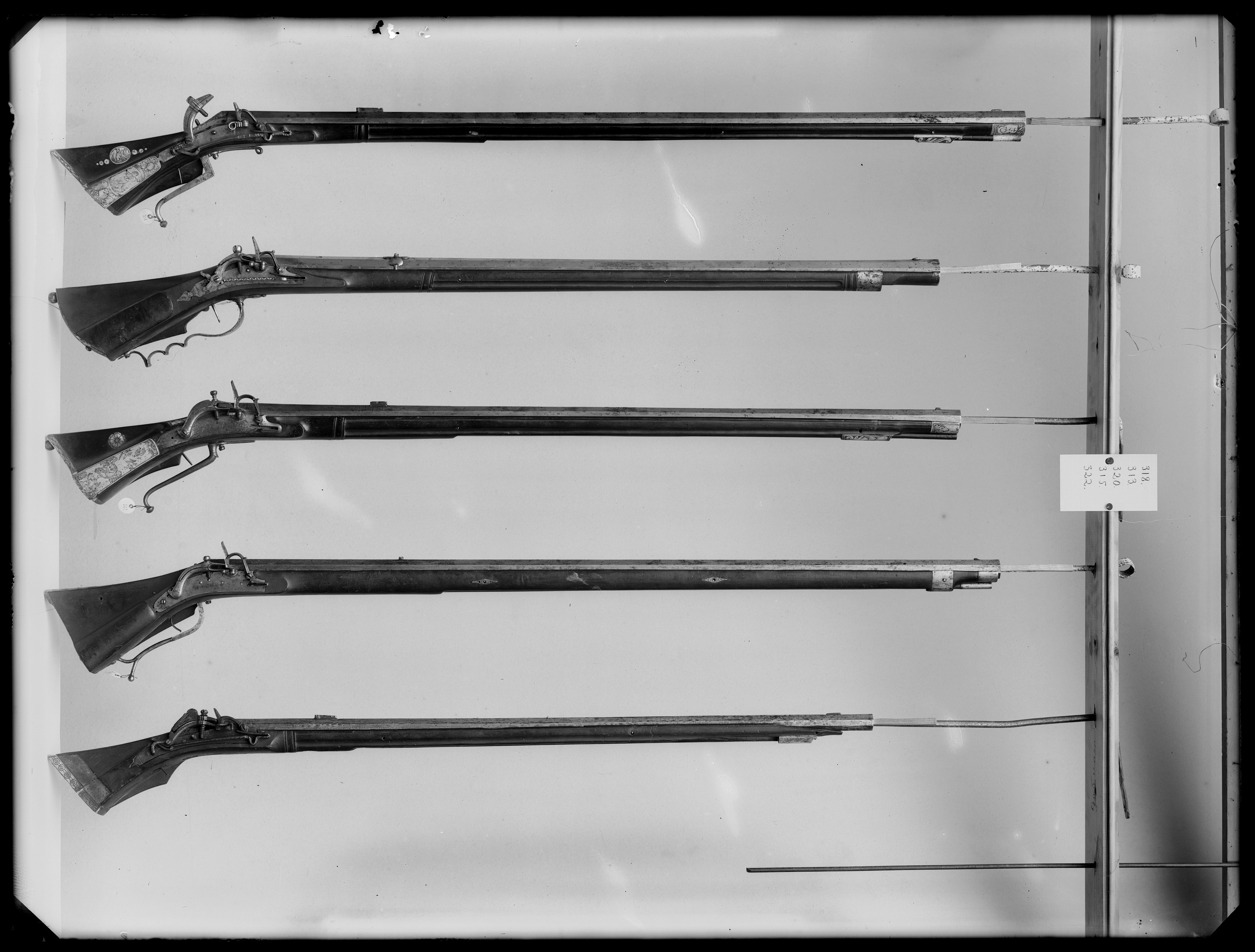 Åttsidig pipa av stål med 8 räfflor, raka bommar. Nedsvängt svansskruvblad med 2 tvärlinjer. Riktmedel: Inlaxade, sikte av stål med bred mittöppning med två runda, små skärningar på vardera sidan, skåra mellan dem. Stolpkorn av mässing. Fästning: Tre inlaxade häften. Pipan fäst med krysskruv underifrån samt två (urspr. tre) pipstift av stål. Snapplås, lägglås av stål med plant låsbleck, bakre änden är nedåtböjd, knoppformig ände samt på tvären graverat: "1667.P.F.". Mitt på låsblecket graverat: "A. REVTERKRANTZ". Rundad, böjd hane av svensk typ med lös överkäke, käkskruv med runt huvud. Liten, rundad fängpanna med fals, vridbart lock med fingergrepp. Batteri med böjd arm och flik. Invändig slagfjäder. Kommaformig nöt. Fästning: Två låsskruvar. C-formig avtryckare. Rektangulärt avtryckarbleck av stål. Helstock av björk, målad mörkbrun. Kolv av svensk typ med trekantig kontur. Beslag av stål, slät bakplåt, förstärkt häl, tunga med separat, lökformig spets, bakom svansskruvbladet ett stålbeslag.Två runda låsskruvbrickor av stål. På vardera sidan av framstocken två romboida brickor för pipstiften. Näsband och överrörka i form av stålband runt framstocken. Varbygel framtill kantig, bakåt rund, utdragen och förgrenad i utskott med knopp och uppåt en stolpe med kort, spetsig arm, fäst med skruv. Främre armen spetsig, fäst med krysskruven. Tillbehör: Laddstock av ljusare trä, skodd med stål. I kolvlådan krats av stål (nr?).