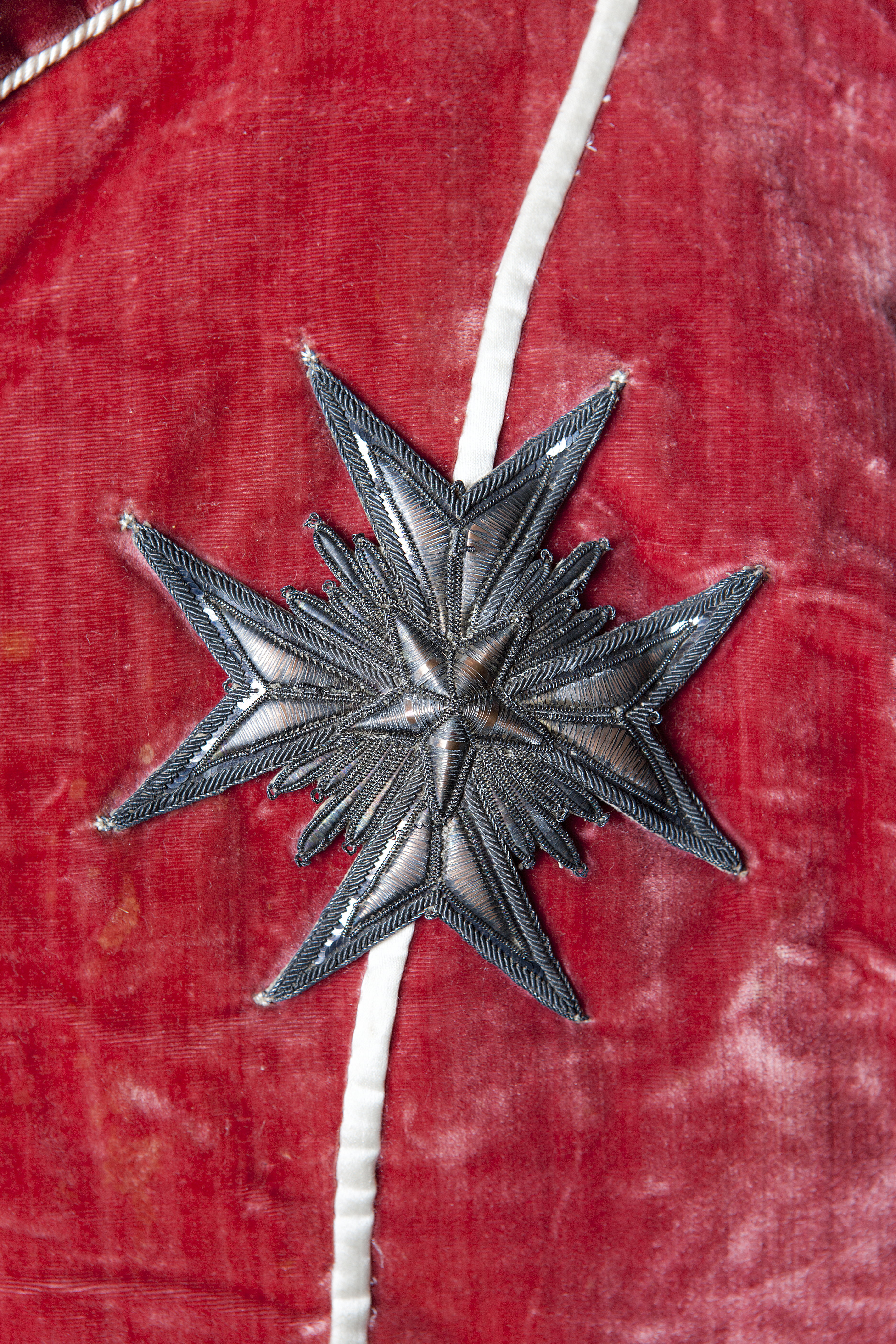 Kraschanen är fastsydd på jackan som utgör del av Nordstjärneordens dräkt från ca 1820 för en kommendör med stora korset, vilket är den högsta värdigheten inom orden. Broderad storkorskraschan av silvertrådar, fastsydd på bröstet på jackans vänstra sida. I malteserkorsets (bestående av fyra korsade armar som avslutas i två spetsar vardera) mitt en nordstjärna. I samtliga korsvinklar sitter strålknippen. Dessa strålknippen särskiljer storkraschanen från ordens enklare, lilla kraschan. Till dräkten hör en på jackan inv.nr 35449, byxa inv. nr 35450, samt ett par kragstövlar inv.nr 35451-35452.