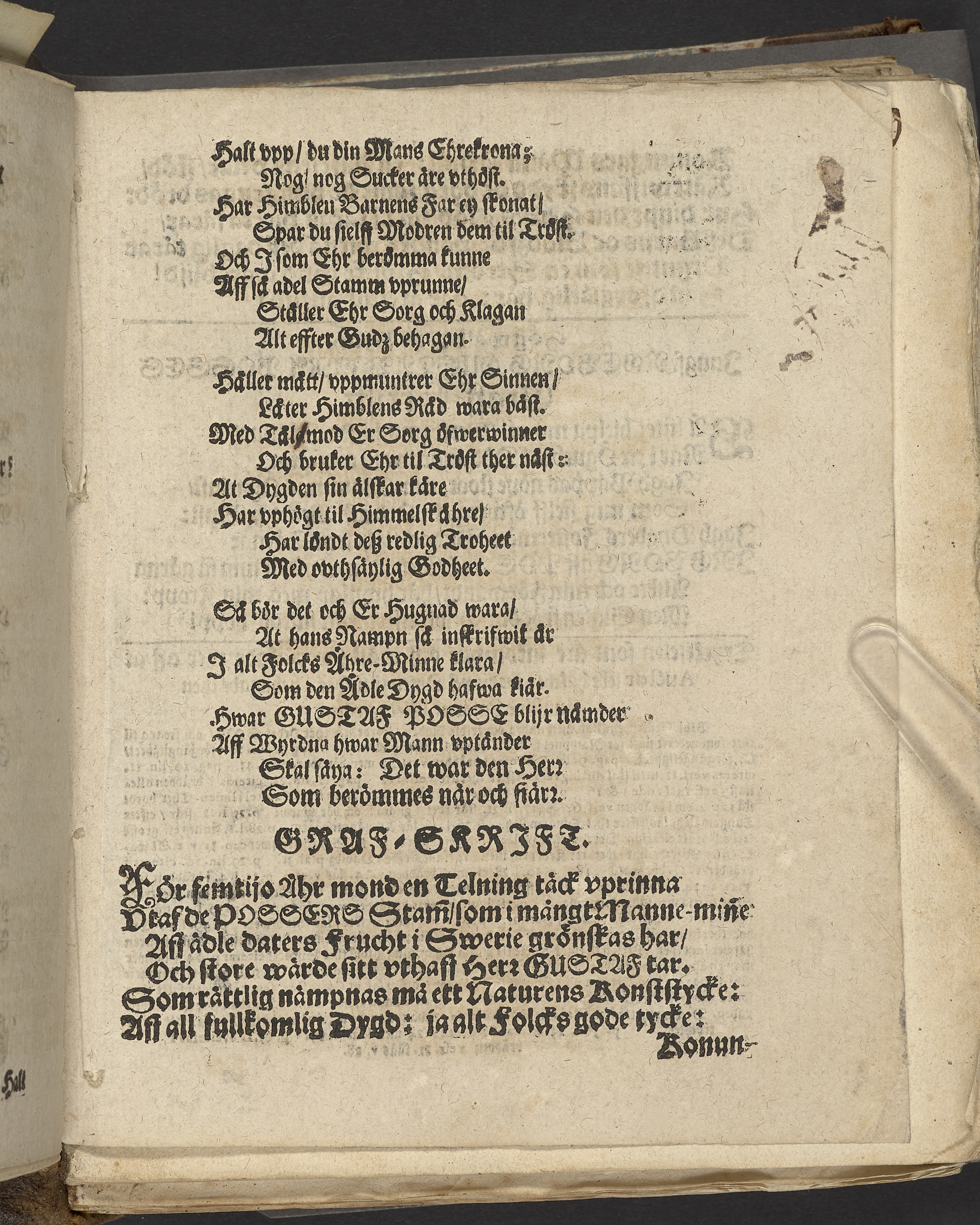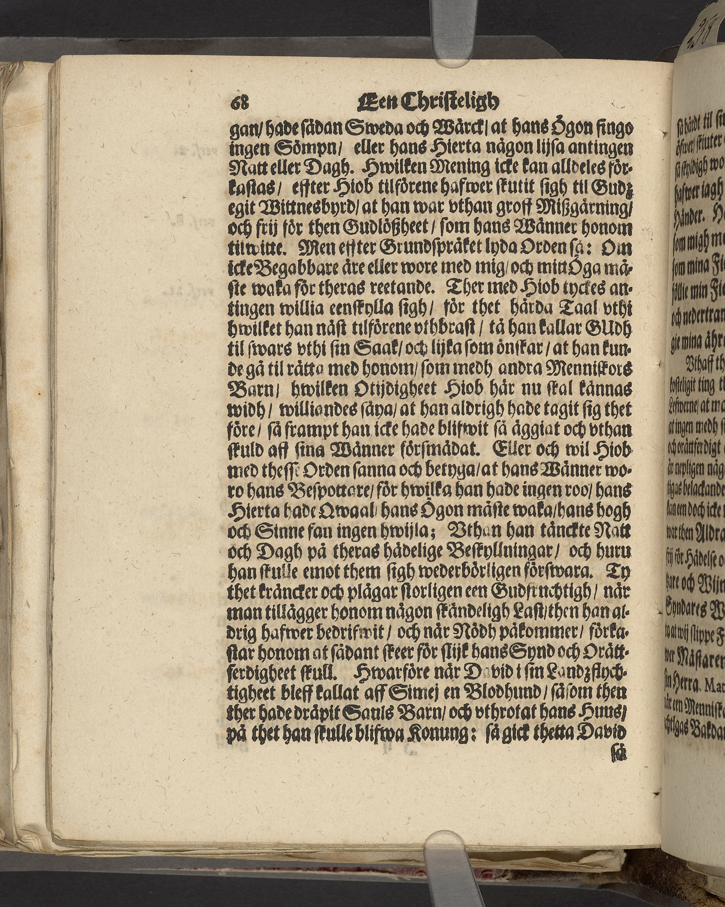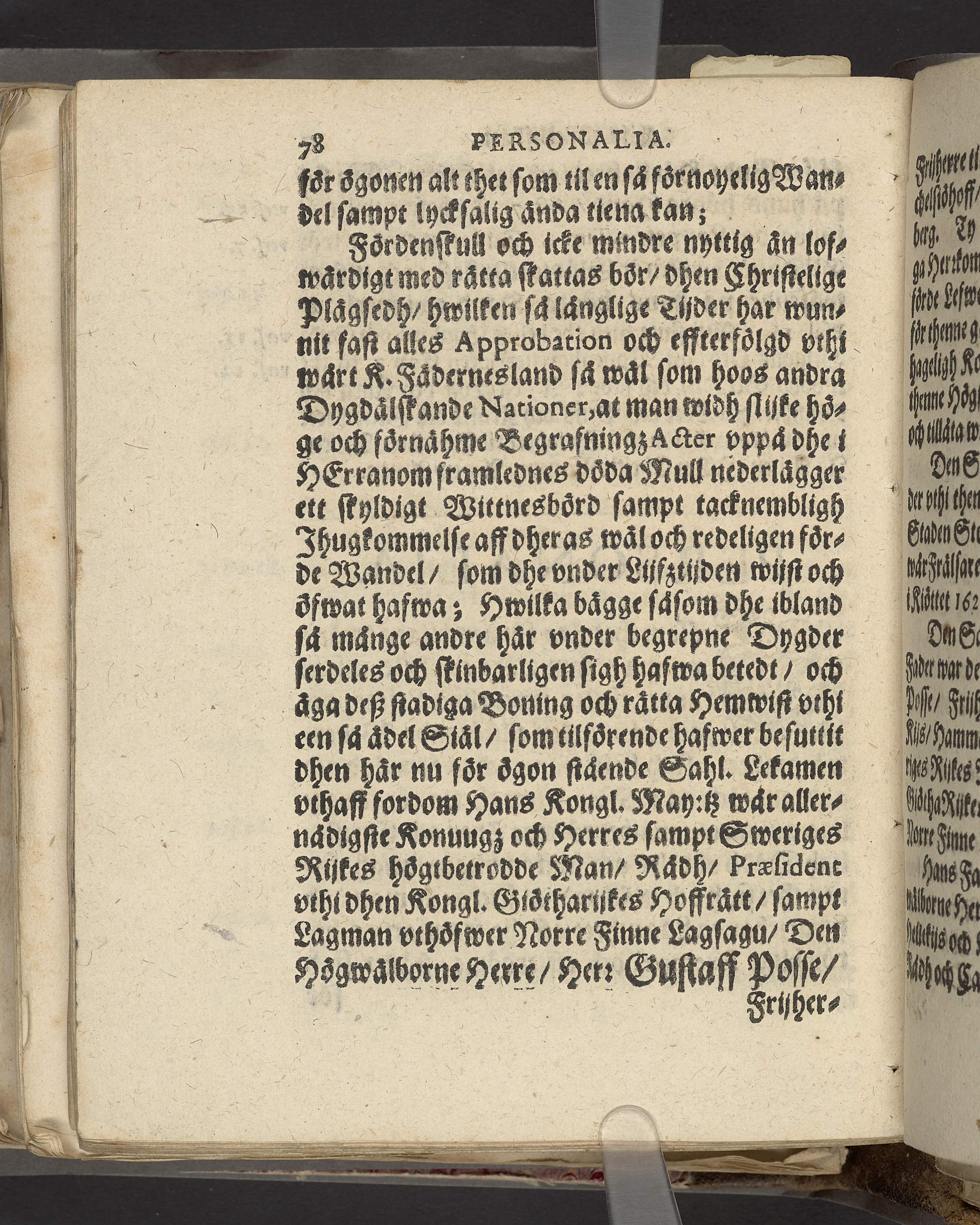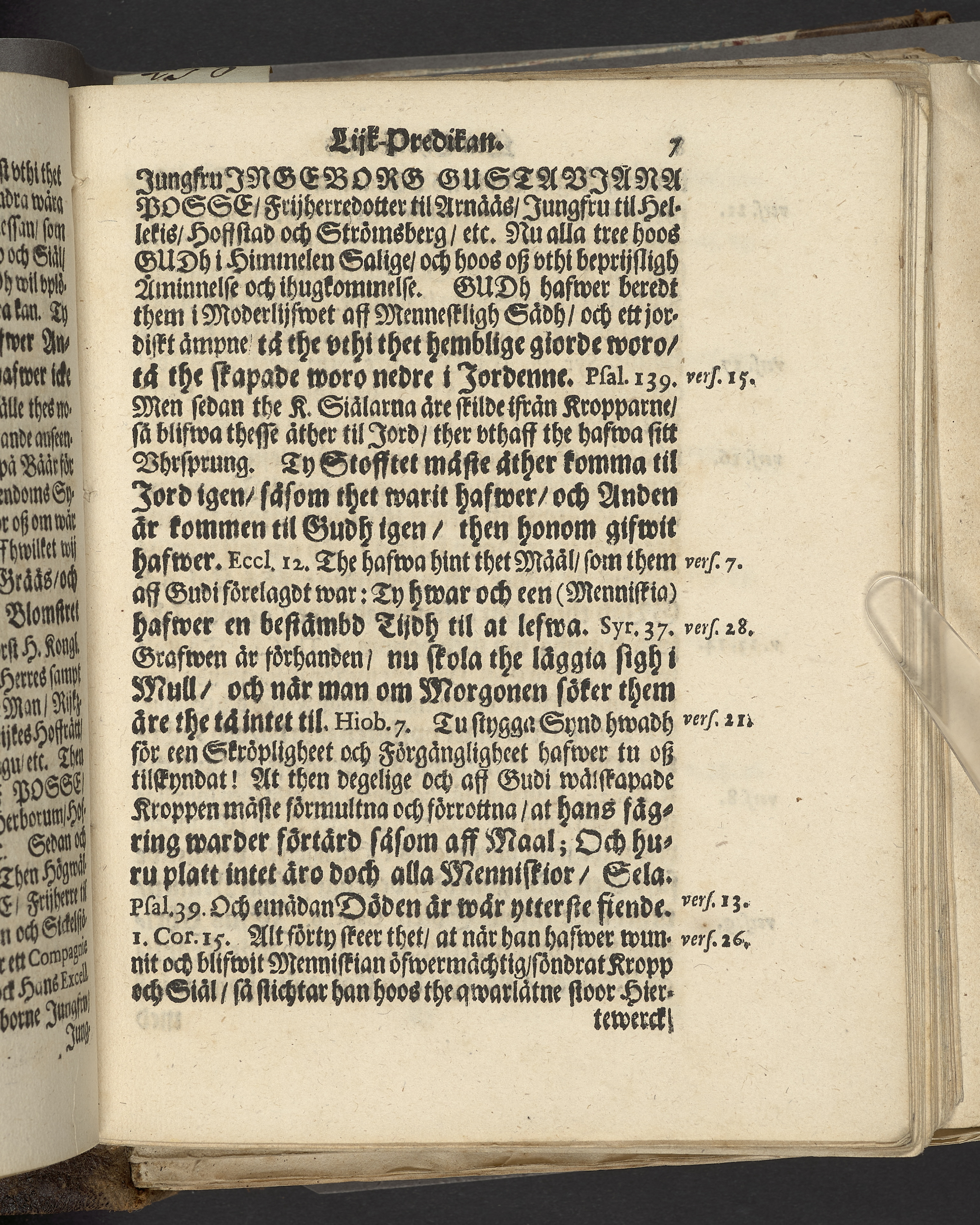 Een christeligh lijk-predikan öfwer then begiärte text, Job. 16. ult. cap.17. V. 1. 2. vthi Riddareholms kyrckian i Stockholm ... tå ... Herr Gvstaf Posse, frijherre til Arnääs, herre till Hellekis, Herborum, Hofstad, Sickelsiöhoff och Strömsberg, etc. etc. Tillijka med twänne sine högtälskel. k. barn och lijfzarfwingar, then höghwälborne herre, Herr Knuut Posse ... och then höghwälborne jungfru, Jungf. Ingeborg Gustaviana Posse, medh wederbörlig, högtansehnlig process beledsagades til sin hwijlokammar den 26. junii anno 1677. Enfaldeligen bleff hållen aff Johanne Baazio, jo. fil. ep. Scar. Tryckt i Stockholm hoos Niclas Wankijff, kongl. booktr.