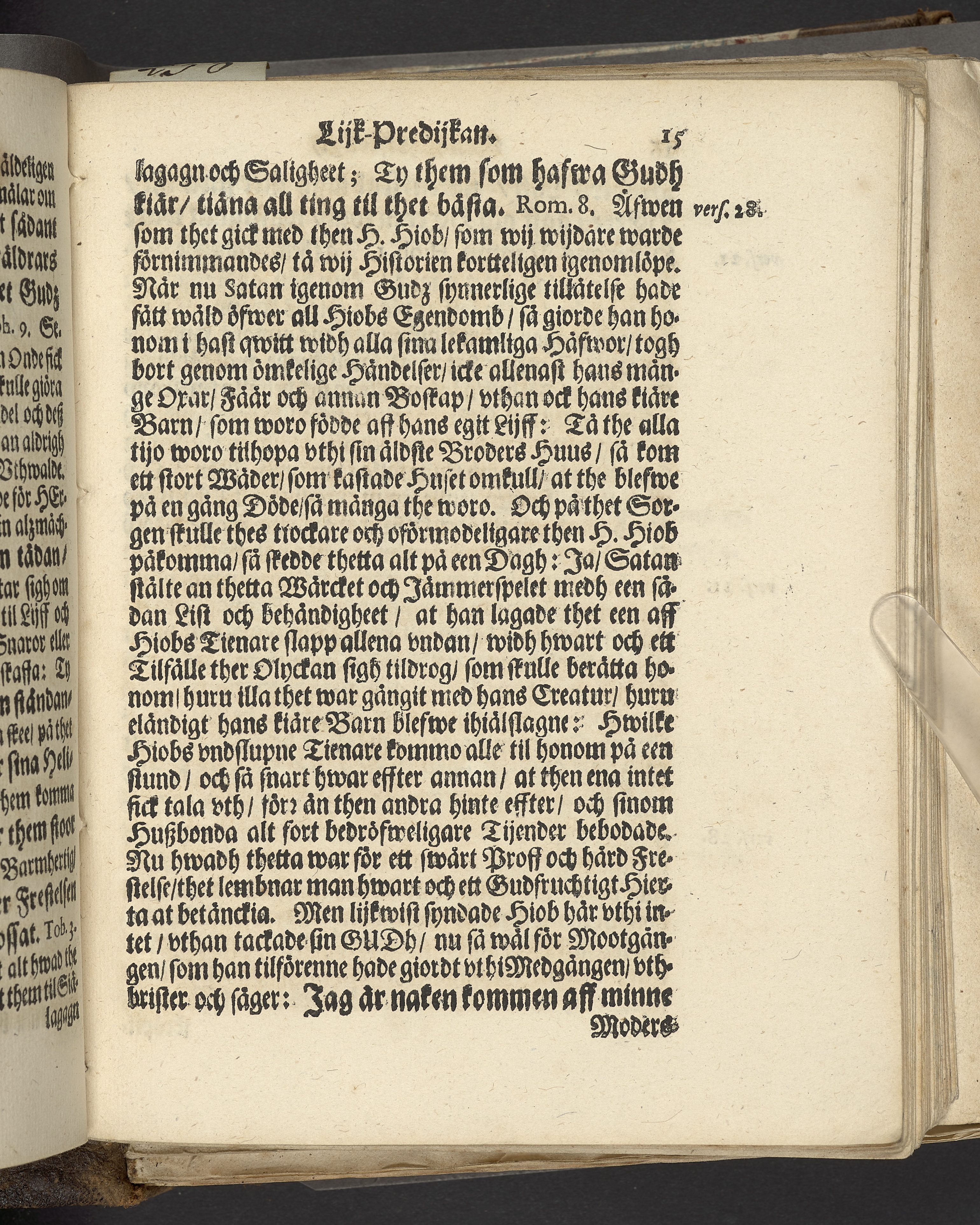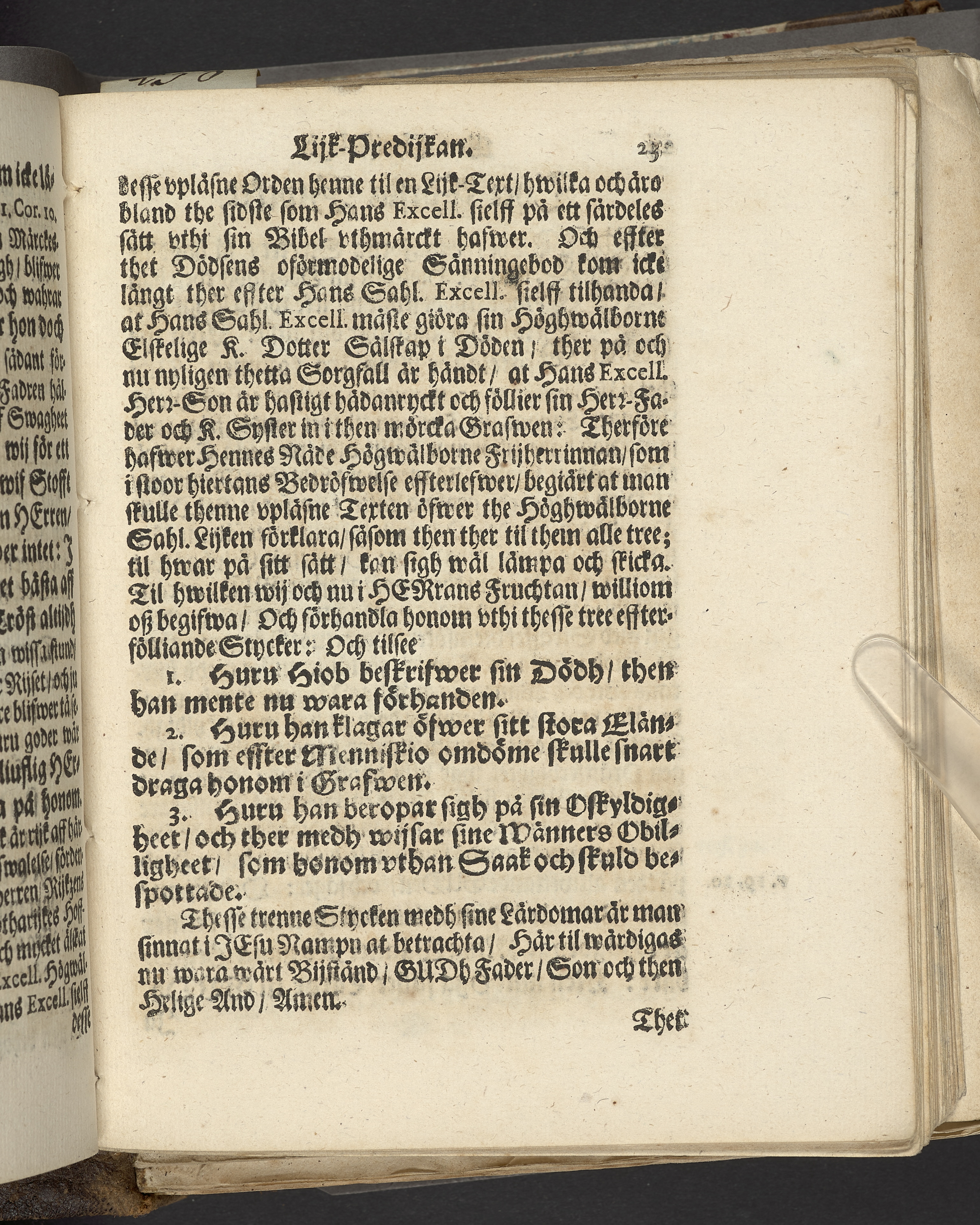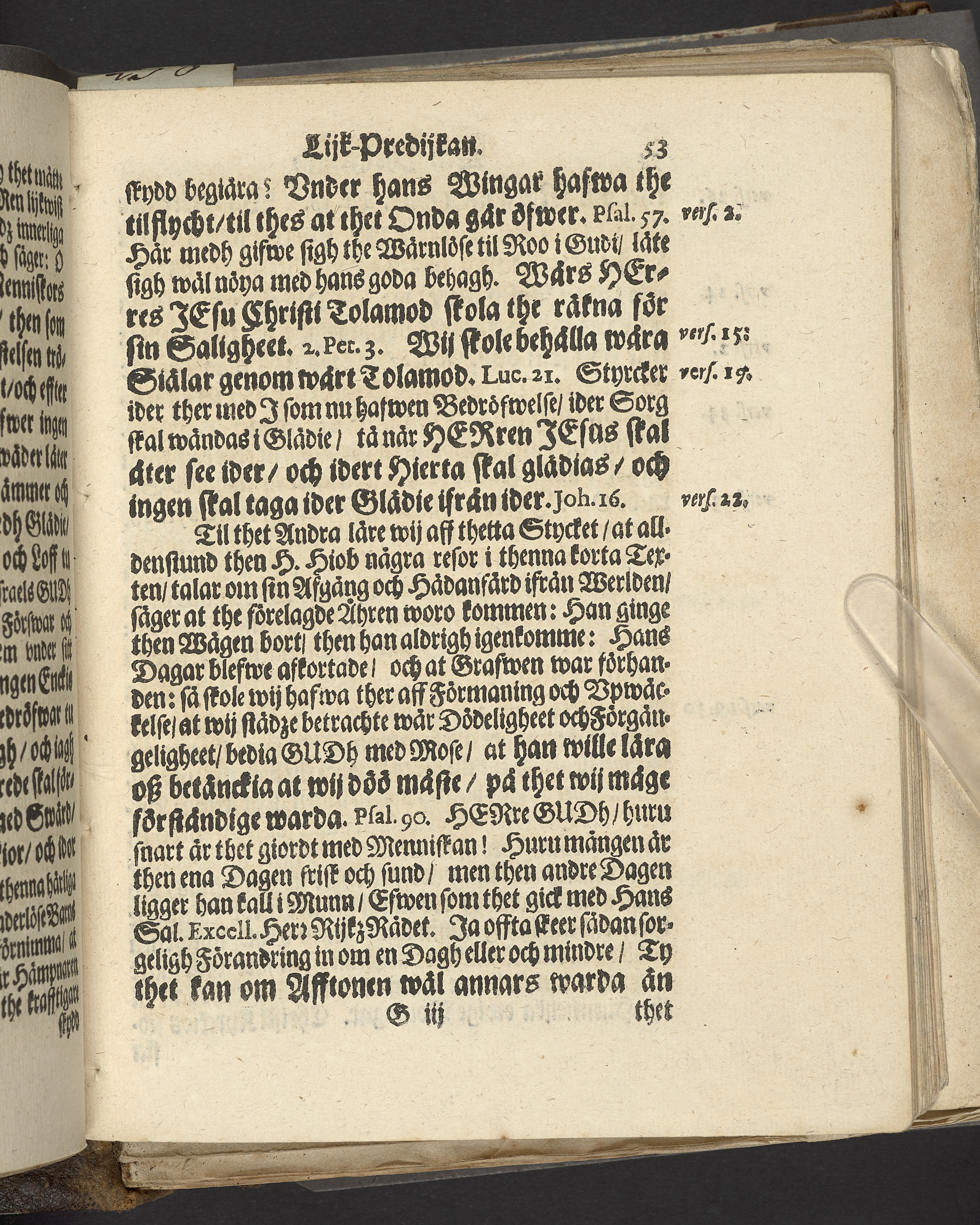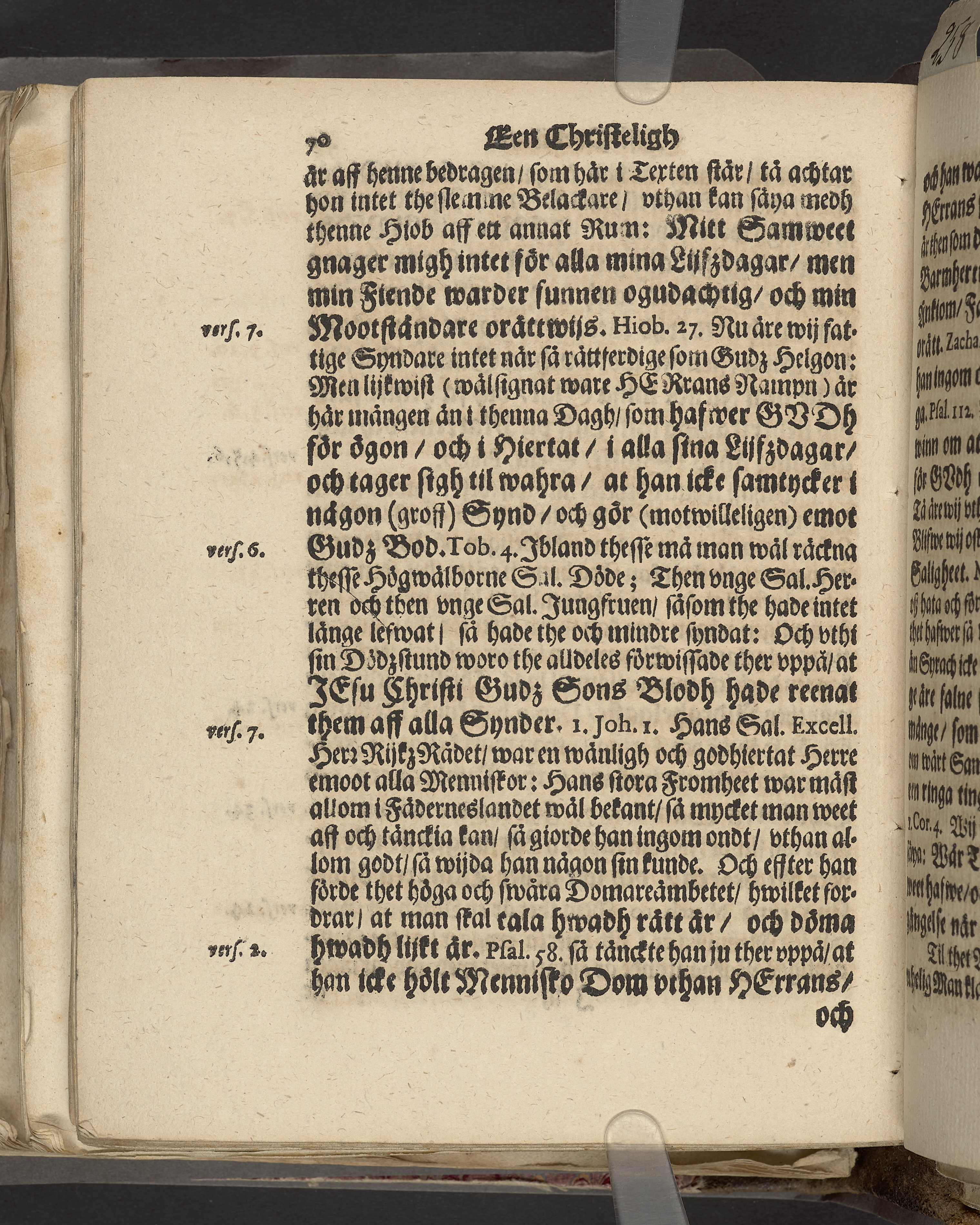 Een christeligh lijk-predikan öfwer then begiärte text, Job. 16. ult. cap.17. V. 1. 2. vthi Riddareholms kyrckian i Stockholm ... tå ... Herr Gvstaf Posse, frijherre til Arnääs, herre till Hellekis, Herborum, Hofstad, Sickelsiöhoff och Strömsberg, etc. etc. Tillijka med twänne sine högtälskel. k. barn och lijfzarfwingar, then höghwälborne herre, Herr Knuut Posse ... och then höghwälborne jungfru, Jungf. Ingeborg Gustaviana Posse, medh wederbörlig, högtansehnlig process beledsagades til sin hwijlokammar den 26. junii anno 1677. Enfaldeligen bleff hållen aff Johanne Baazio, jo. fil. ep. Scar. Tryckt i Stockholm hoos Niclas Wankijff, kongl. booktr.