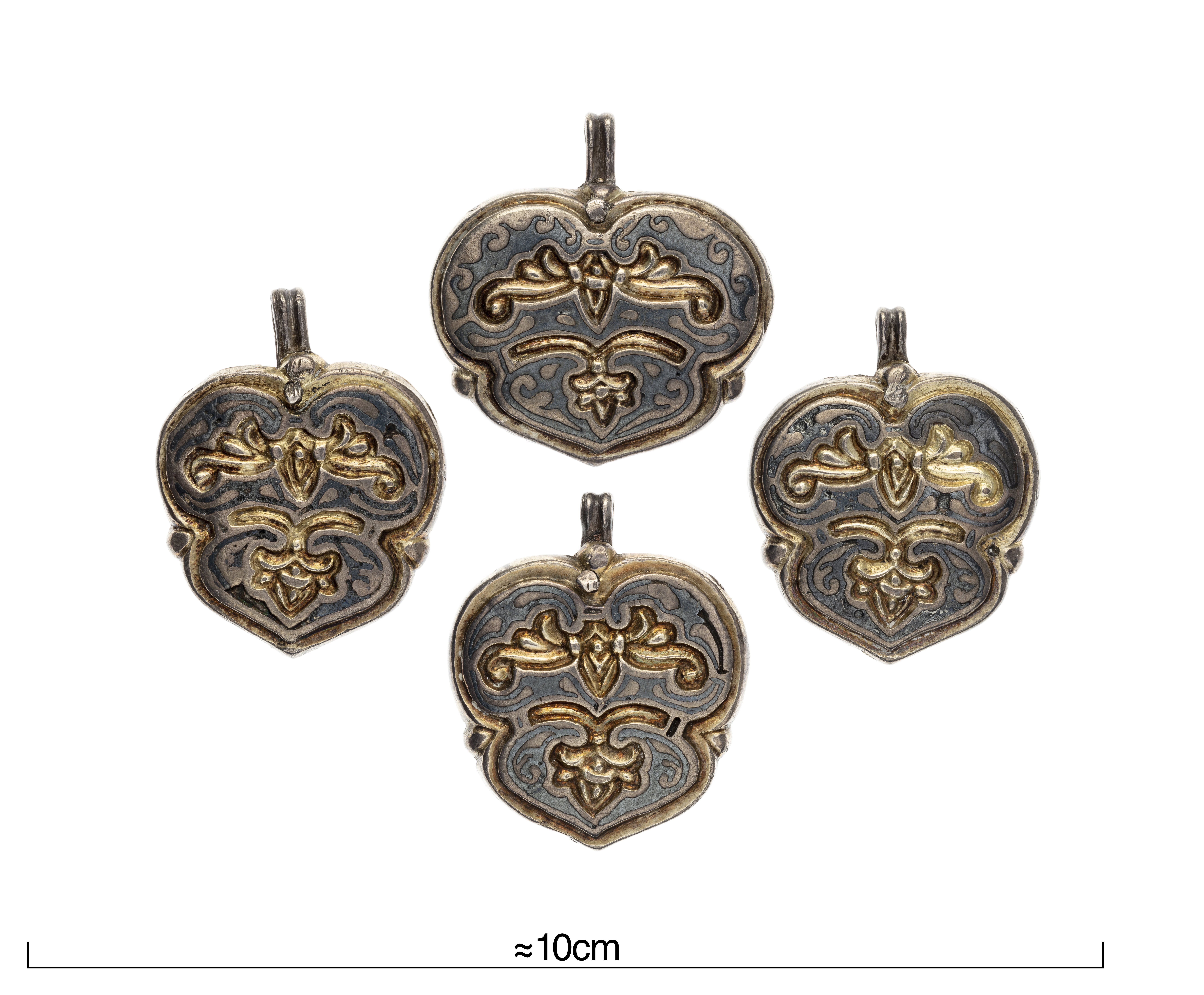 Hängsmycken, ej genombrutna, med niello.