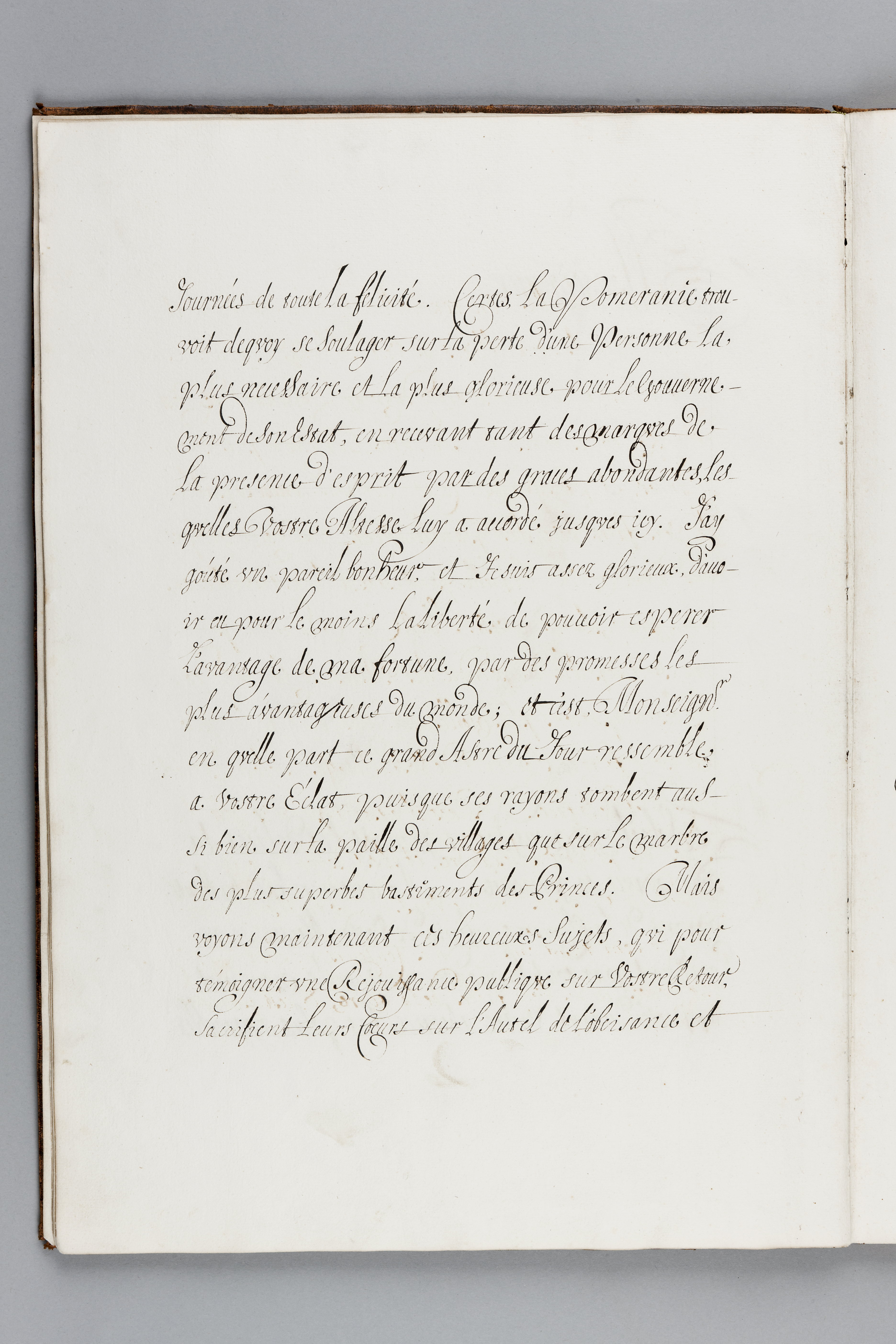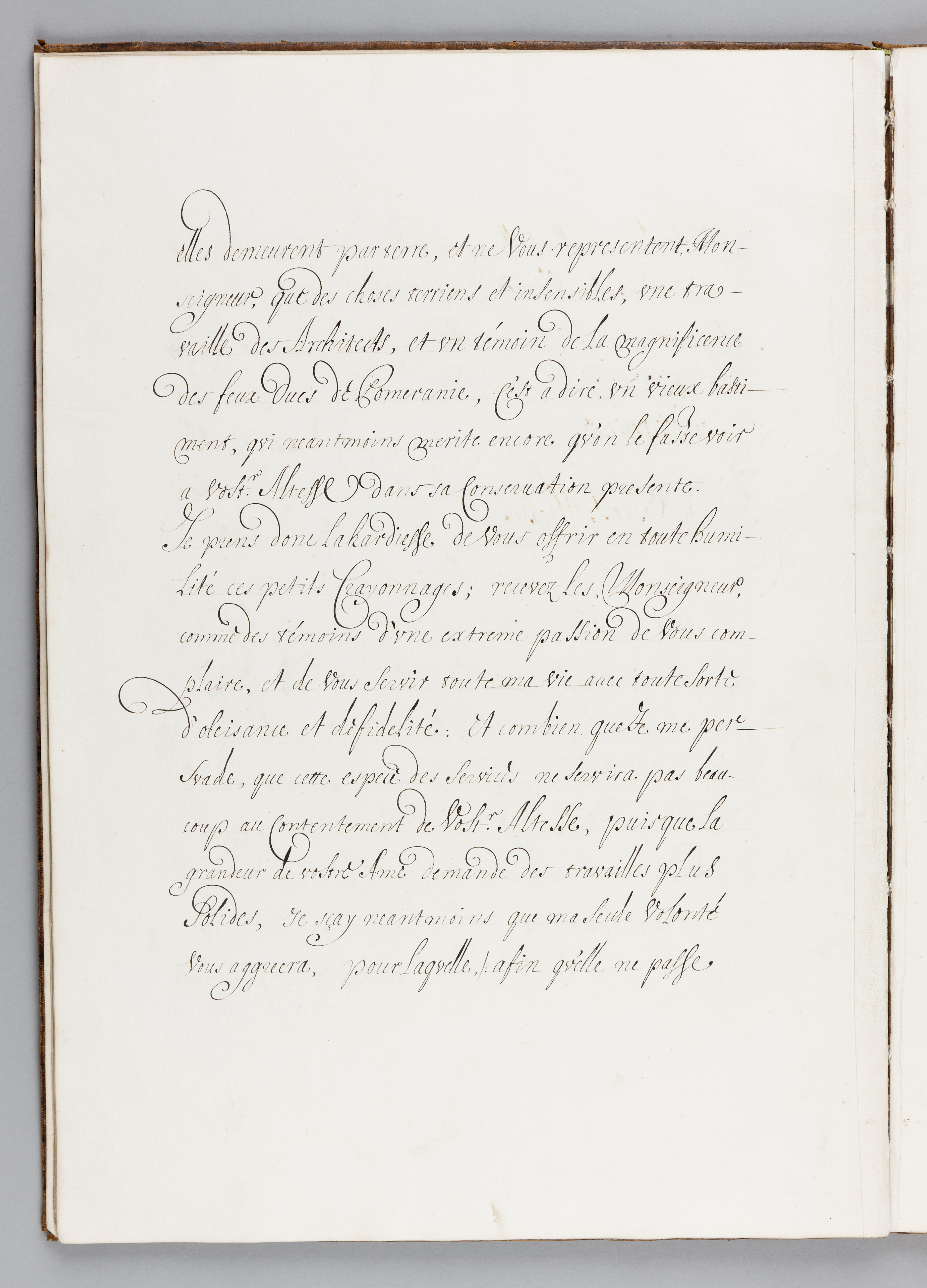 Band av sprängd kalv m. guldtr. dekor, rygg. Verktyg: rullar. Pärmfyllnad: papp.