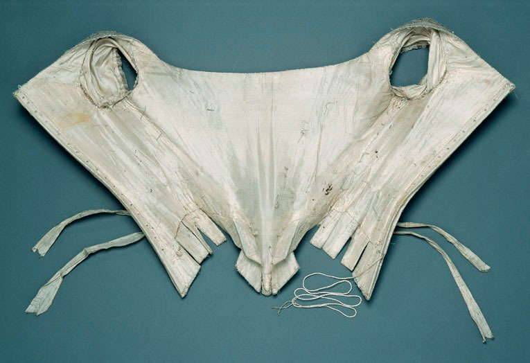 Korsett, liv till hertiginnan Hedvig Elisabeth Charlottas (1759-1818) brudklänning från bröllopet med hertig Karl (XIII) i Stockholm den 7 juli 1774.