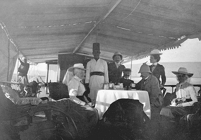 Fotografi. von Hallwyls, de Marés och von Geijers ombord på ångfartyget Columbia. Egypten.