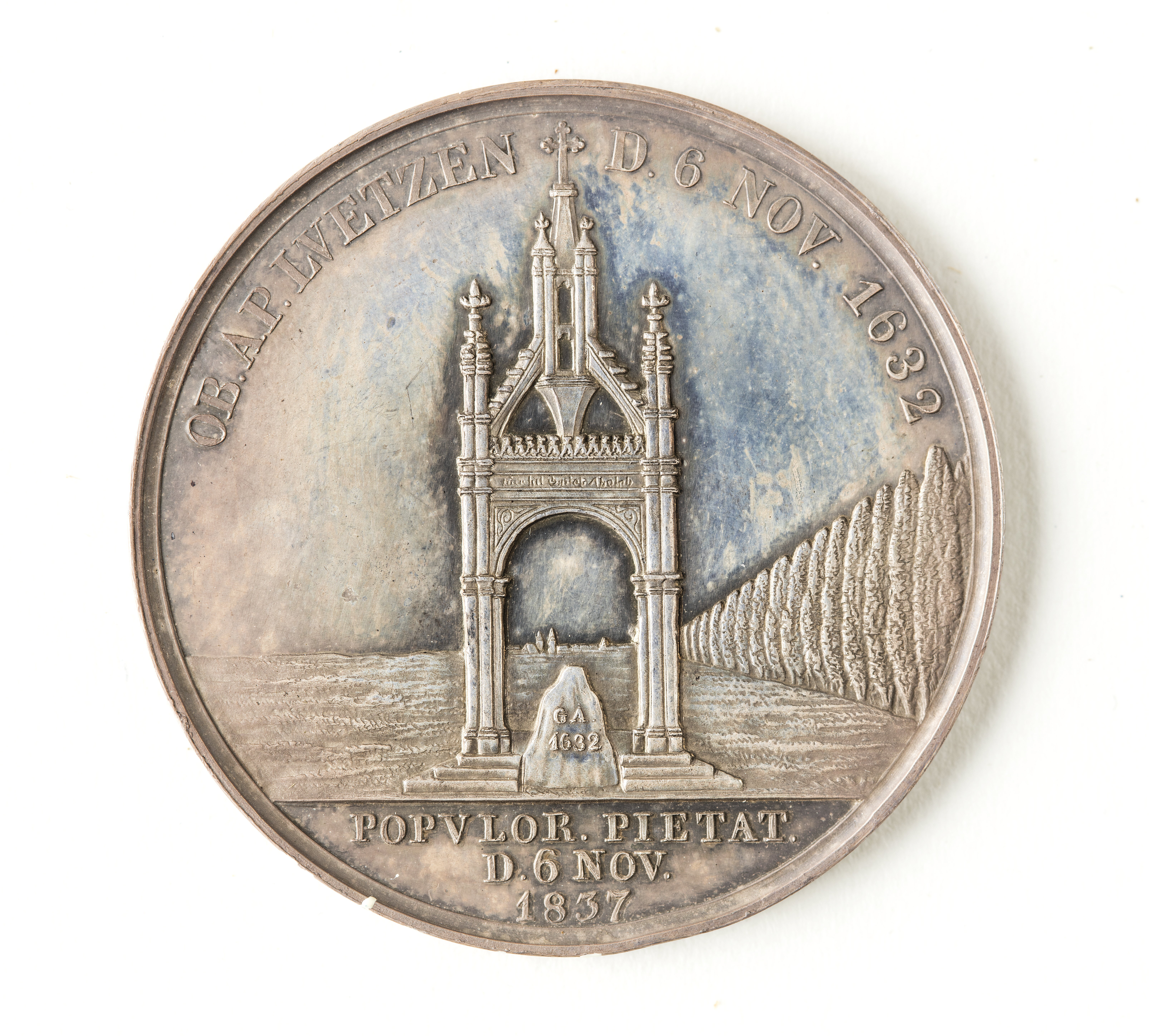 Signatur: ”LOOS D. KÖN. F.”. Silvermedalj, 8 storleken. Åtsida: Gustav Adolf, bröstbild, profil höger, text: ”GVST. ADOLPH. R. SVEC. EV. PROTECT. N.D.9 DEC. 1594.”. Frånsida: Lützenmonumentet, text: ”OB.AP.LVETZEN D. 6 NOV. 1632”, POPULOR PIETAT. D. 6 NOV. 1837”.