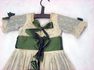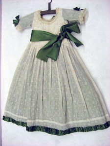 Barnklänning med gröna rosetter.