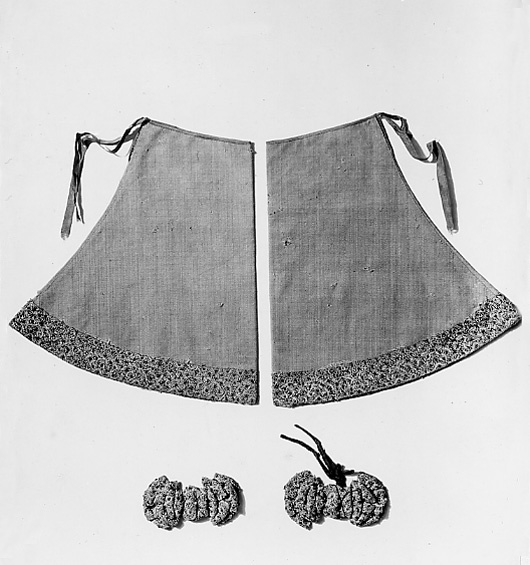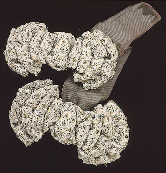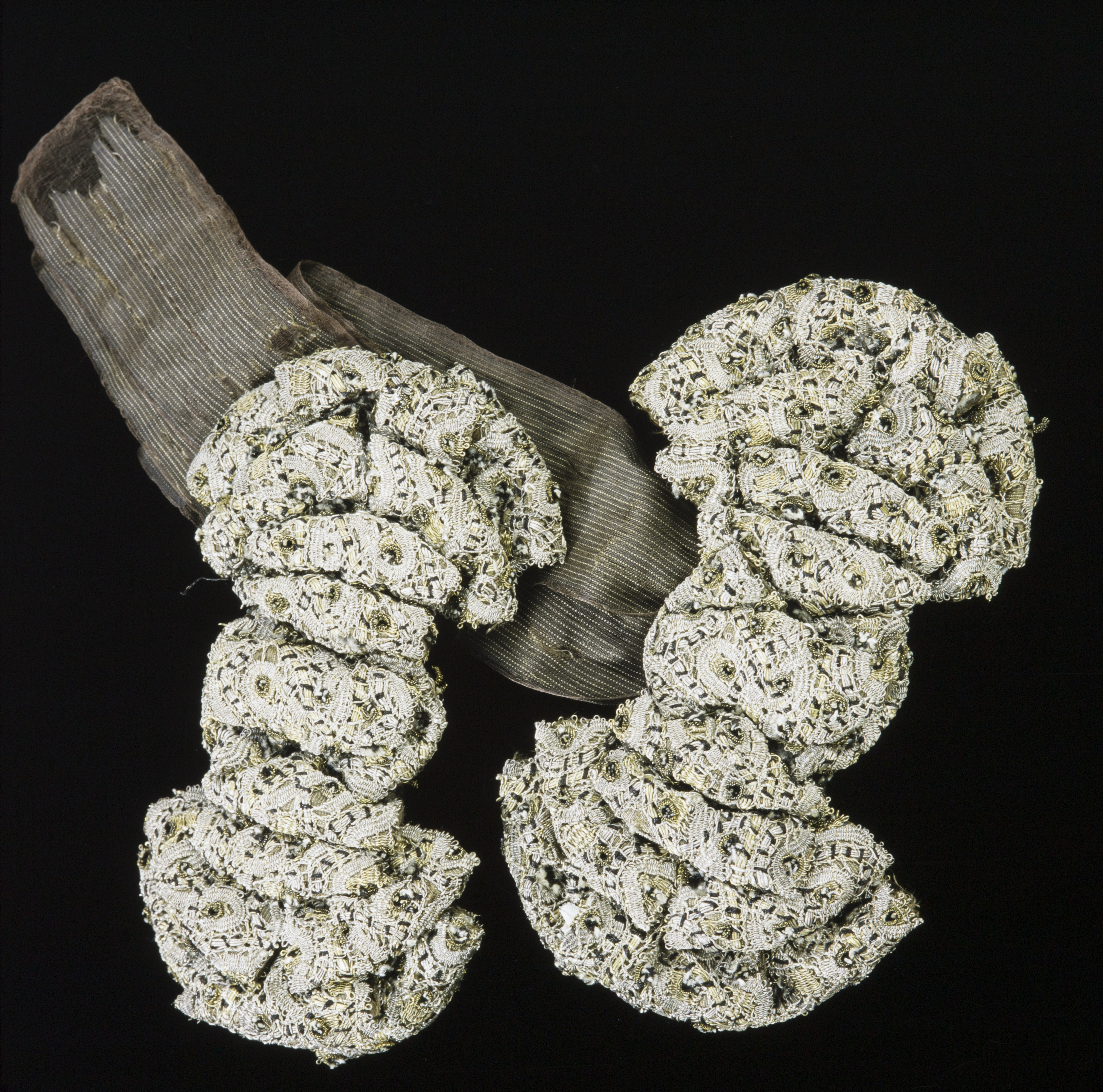 Skorosen består av en ca 13 cm lång bottenskiva, som är smalare på mitten än åt sidorna. I mitten är bottenskivan endast 3 cm bred, på sidorna ca 5,5 cm med inlagd styvnad och överklädd med mörkbrun yllerips (kamlott) på vilken guld- och silverspetsöglor är ordnade. De ligger ytterst på kanterna 3 i rad, sedan 2, därefter 1 och 1. I mitten ligger slutligen 3 öglor, som arrangerats på tvären. Skorosen har på baksidan delar av det 4 cm breda bruna knytbandet med smala vita ränder i behåll. Skorosen har märkts med felaktigt invnr 06/5707. Bilagor: SLA Klädkammarinv 1671 nr 29 - " - 1691 nr 29 - " - 1705 nr 29 Klädkammarräkn. 1743 s.60ff Klädkammarinv. 1773 s.44-45 - " - 1790 nr 60 - " - 1801 nr 24 - " - 1821 nr 50 LRK Klädkammarinv. 1850 nr 50 Klädkammarinv. & 1855 nr 50 Livrustkammarinv.Livrustkammarinv. 1867 nr 3415