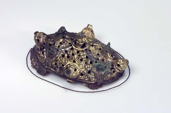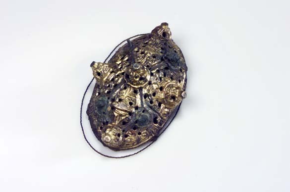 Oval spännbuckla av typ P 51 med järnnål.