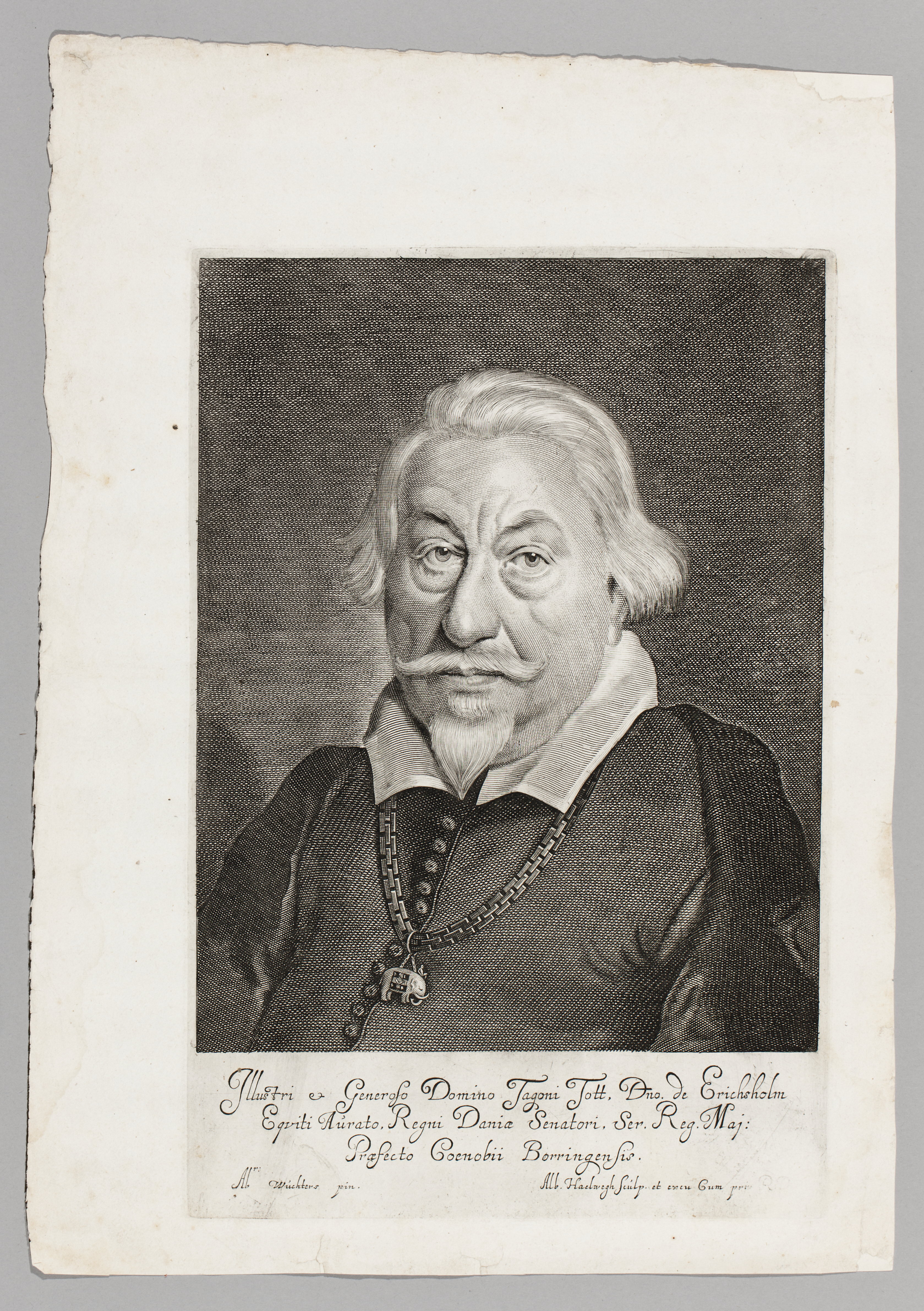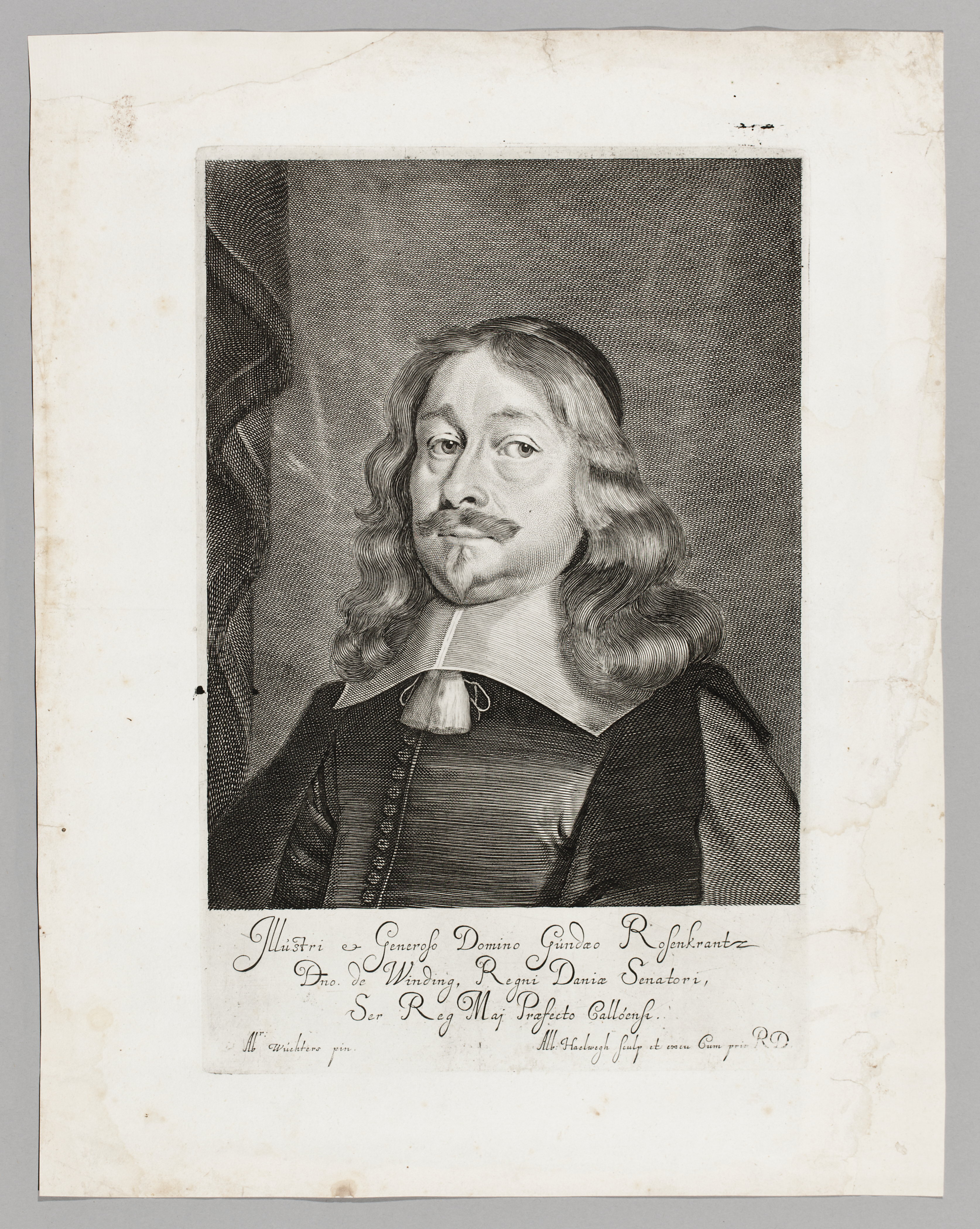 Sign. "Alb: Haelwegh sculp et excu cum priv. R.D.". Bröstbild. Klädd i riksrådsdräkt. Elefantorden (1648). Under porträttet text: "Illustri et Generoso Domino Axelio Urop, Dno de Belteberg…".