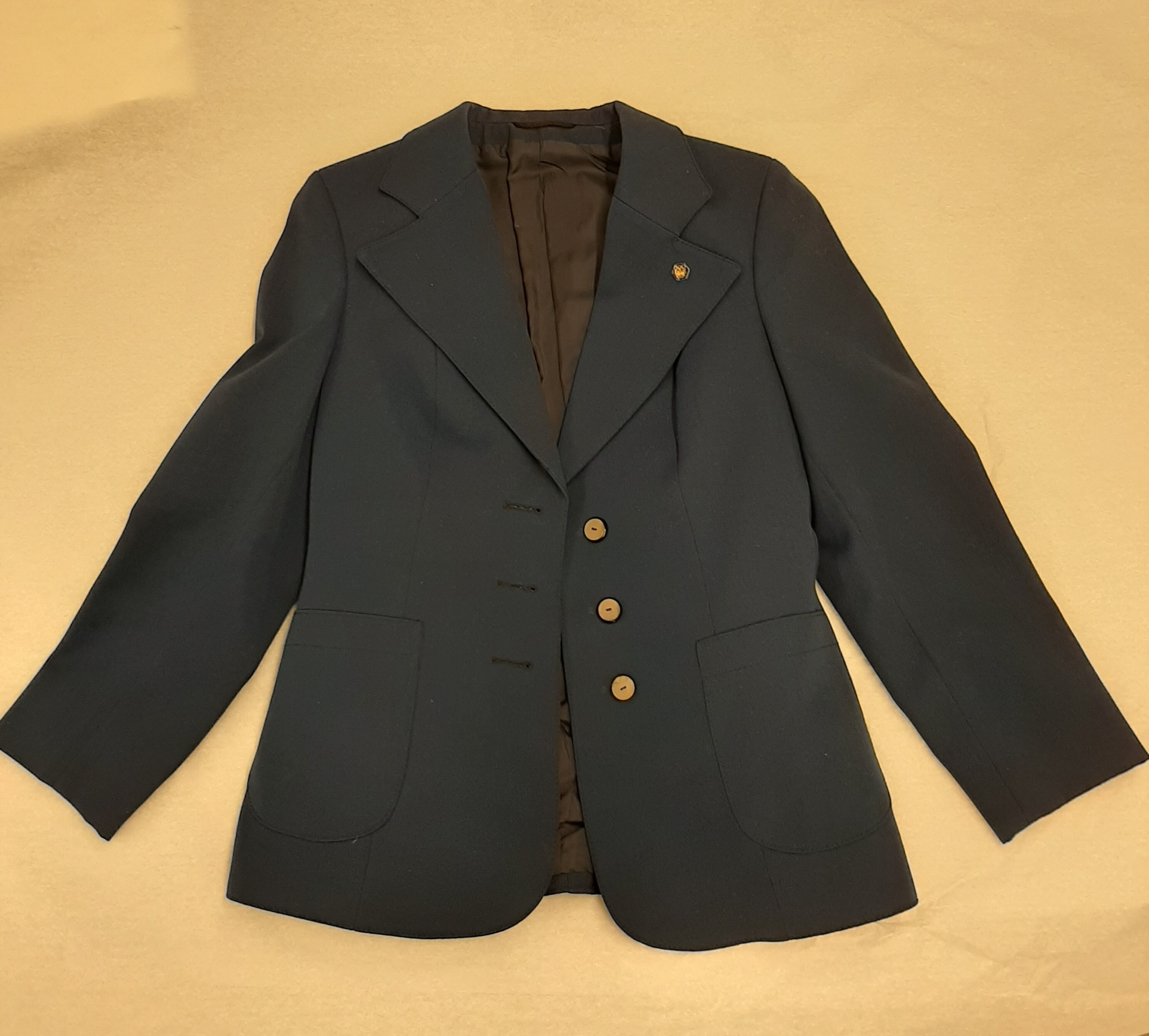Marinblå kavaj i ull och polyester, buren av Silvia Sommerlath vid vinterspelen i Innsbruck 1976, då hon tjänstgjorde som biträdande protokollchef i organisationskommittén. Kavajen är i stl 38. Enkelknäppning fram med tre knapphål och tre ljusbruna och svarta knappar av plast. Två fickor nedtill med rundad nedre kant och utan lock. På baksidan fastsydd ryggslejf. På kavajslaget nålmärke för OS Innsbruck 1976, samt invändigt, tygmärke med texten: ”Perma Modelle Innsbruck 1976 OFFIZIELLER OLYMPIA AUSSTATTER”. Invid denna, lapp med tvättråd, märkt "SOMMERLATH OK". Foder i lila syntetmaterial vävt i tuskaft.