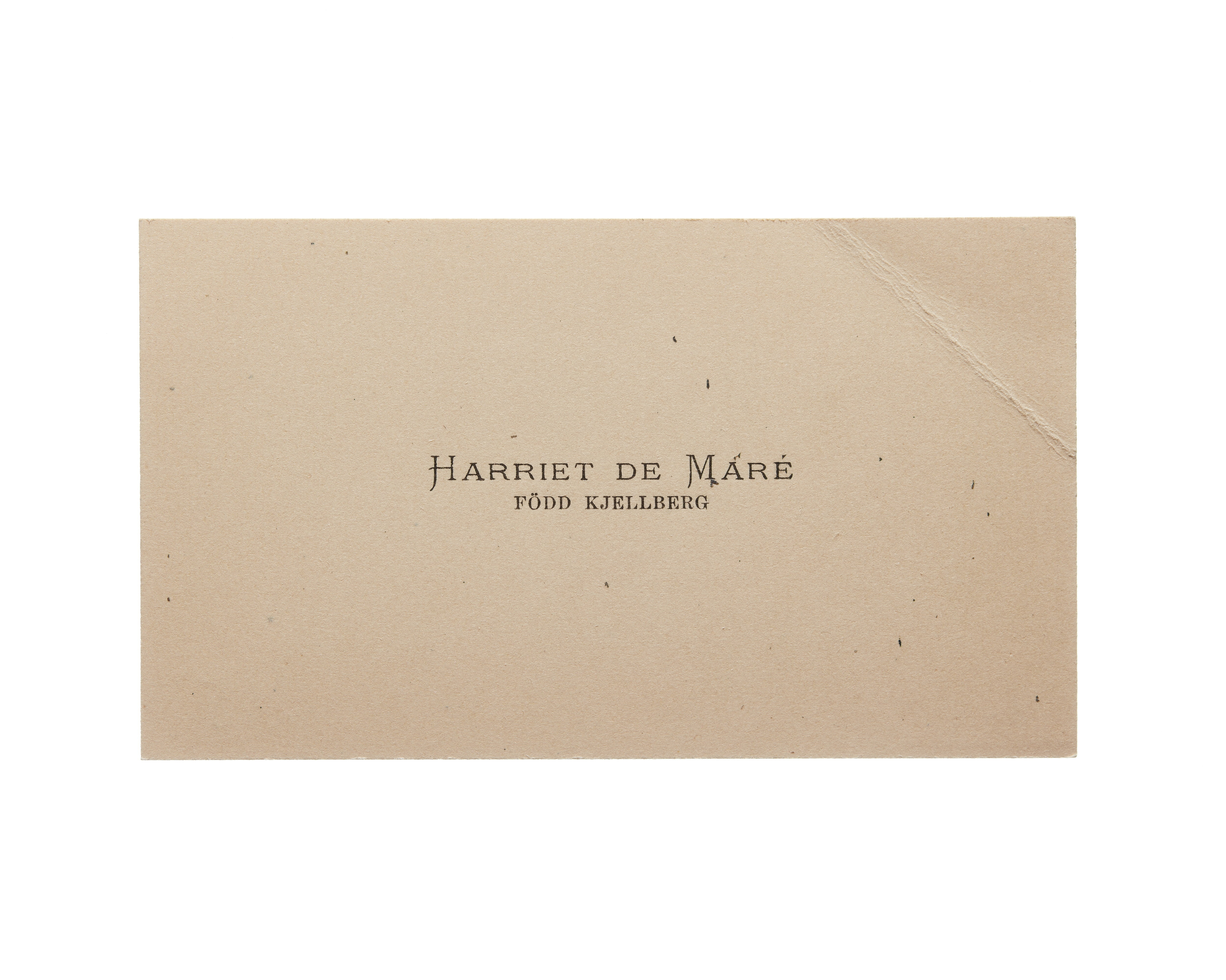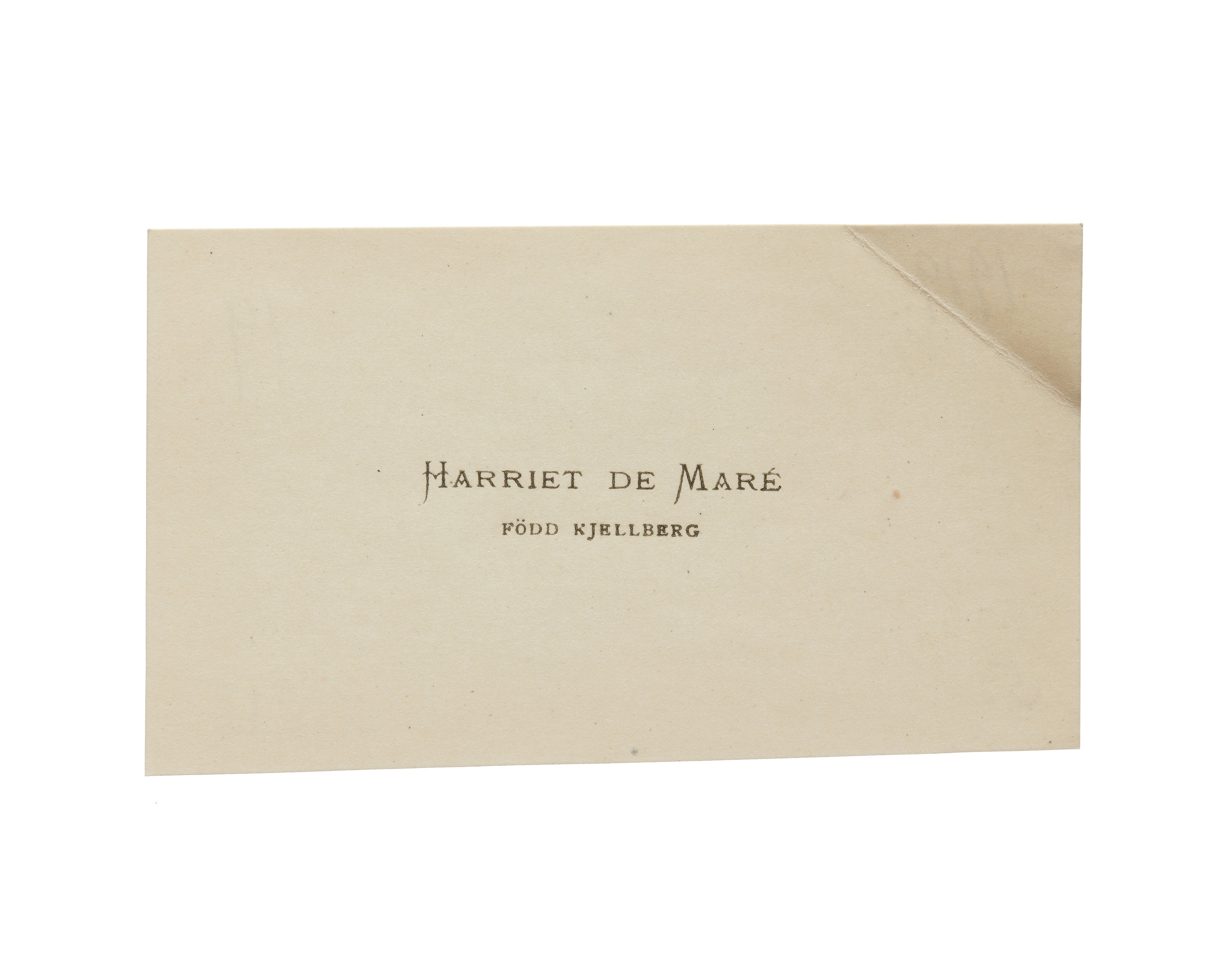 Visitkort från Harriet de Mare f. Kjellberg.