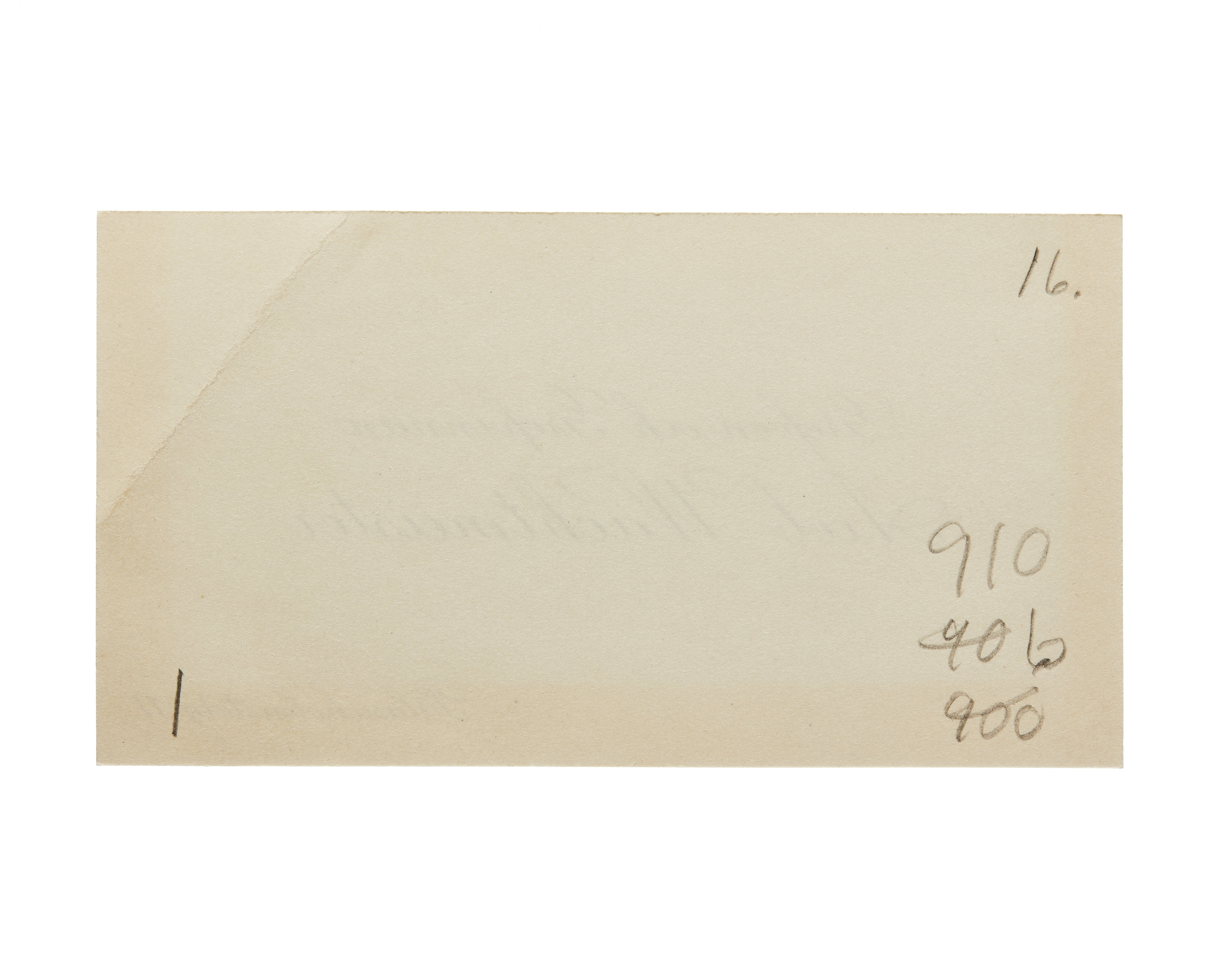 Tio visitkort från Landshövdingen greve Axel H:son Wachtmeister och Grevinnan Wachtmeister. Första kortet daterat 1916, vikt i övre högra hörnet. Adress (nedre högra hörnet) Blasieholmstorg 11. Andra kortet är utan datum samt sorgkant, vikt i övre högra hörnet. Handskrift "Med dotter". Tredje kortet daterat 1916 samt sorgkant. Handskrift "Tillönska hjertligt Godt nytt år!". Fjärde kortet daterat 1917, vikt i övre högra hörnet. Femte kortet daterat 1918, vikt i övre högra hörnet. Sjätte kortet daterat 1919. Handskrift "Tillönska hjertligt Godt nytt år!". Sjunde kortet daterat 1919, vikt i övre högra hörnet. Åttonde kortet daterat 1921. Handskrift "Tillönska hjertligt Godt nytt år!". Nionde kortet daterat 1922, vikt i övre högra hörnet. Tionde kortet daterat 1922, vikt i övre högra hörnet.