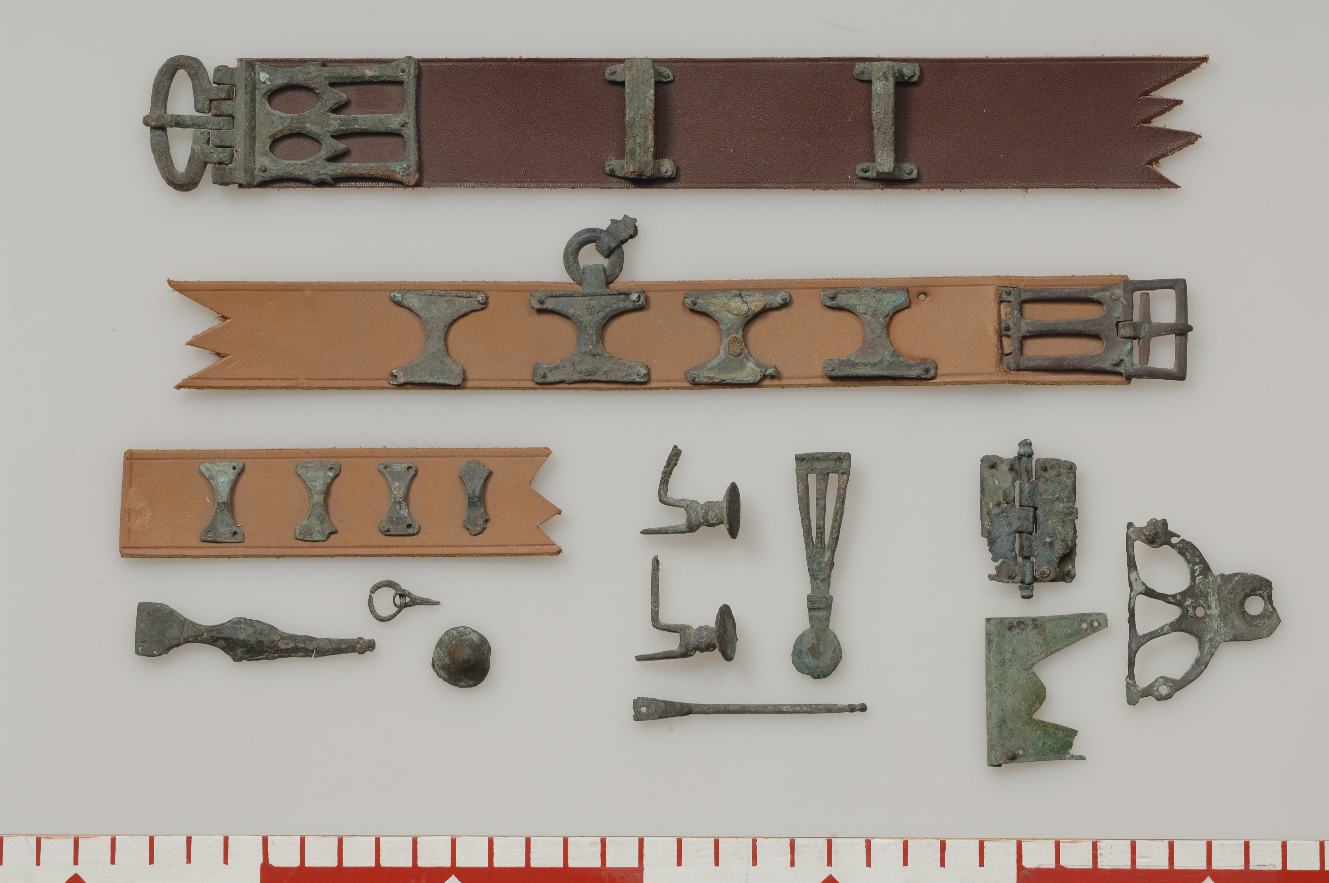 Olikformade beslag, troligen från ett eller flera bälten.